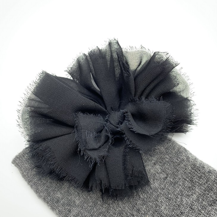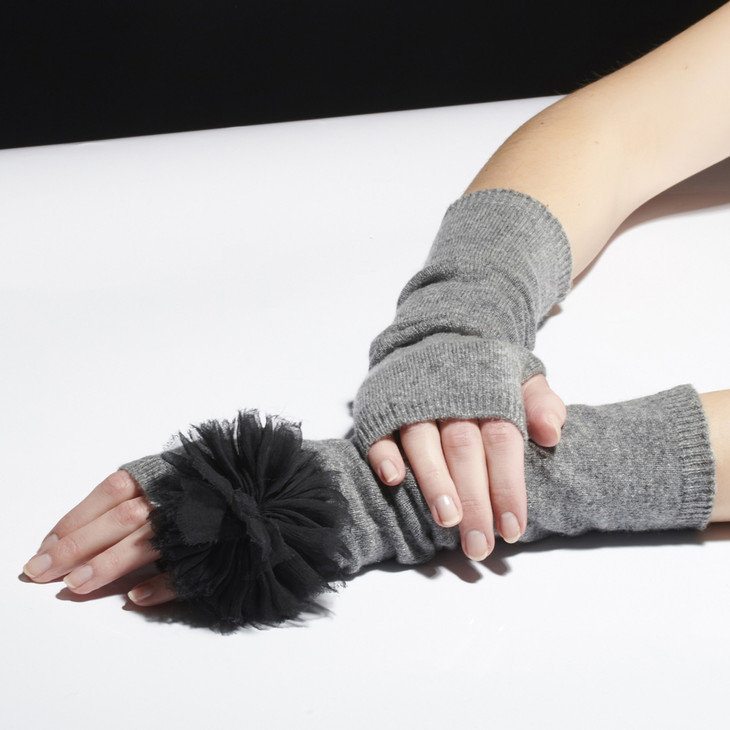 订购7周到|Catherine Osti-Mittens-灰色 露指手套 黑花款[法国设计师]