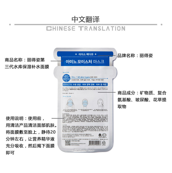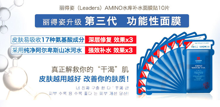 〖保税仓〗韩国丽得姿Leaders三代氨基酸补水保湿面膜10片/盒