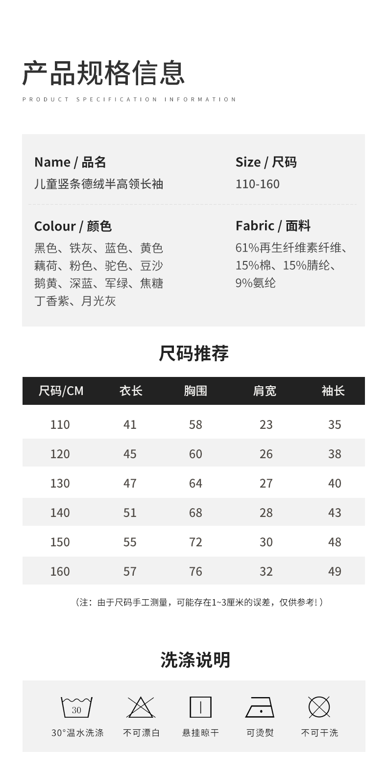 weyo秋冬新款儿童竖条德绒半高领长袖保暖打底衫T0932