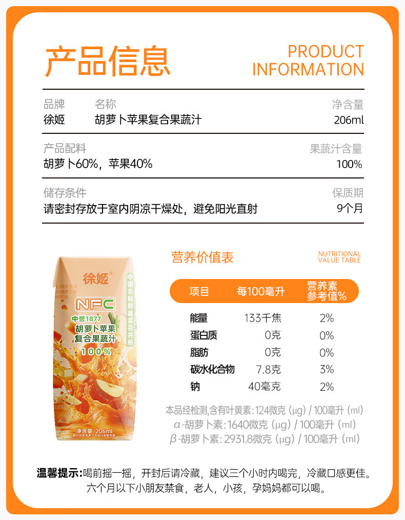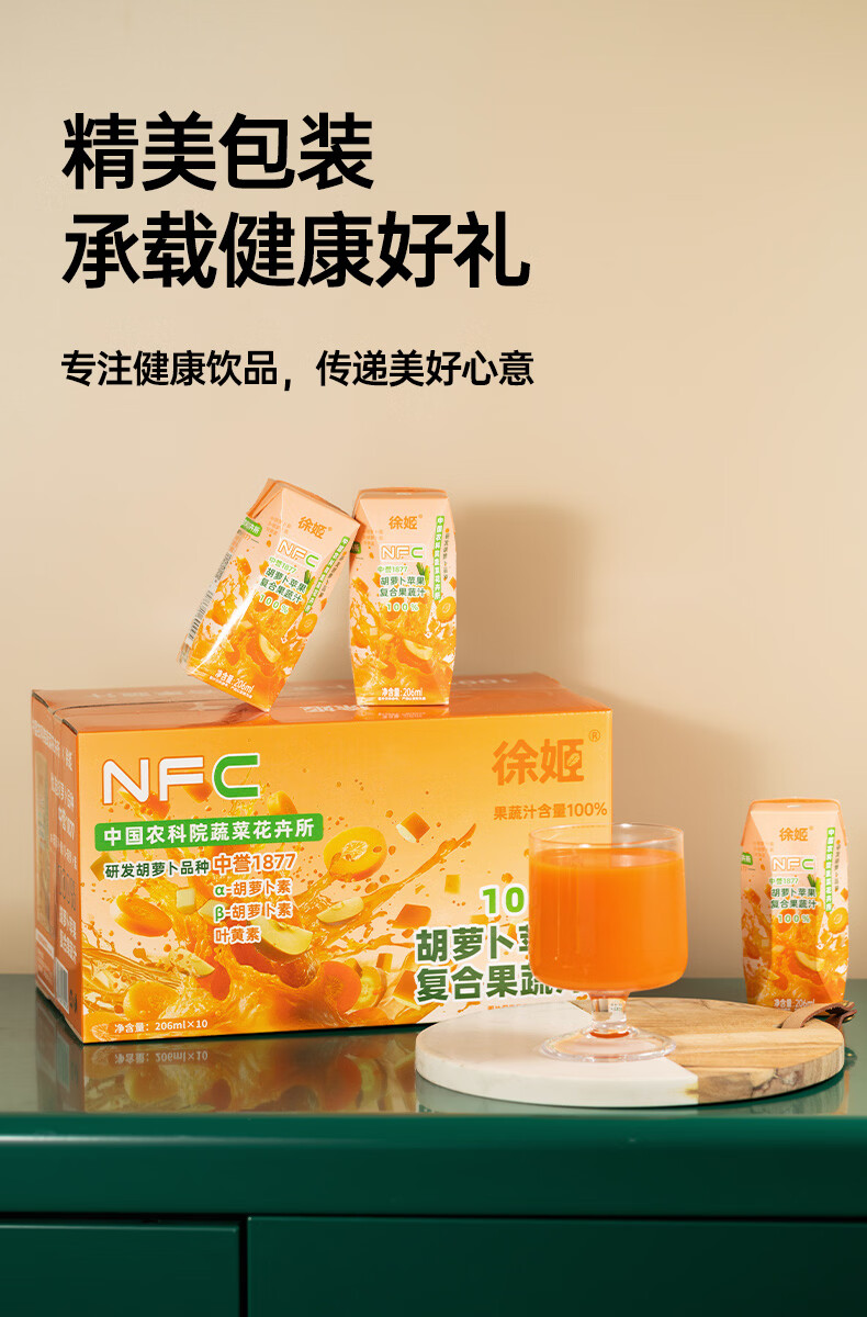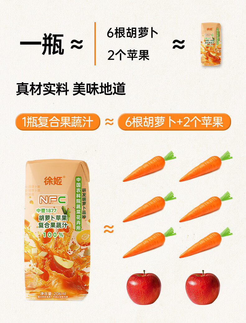 中国农科院胡萝卜苹果复合果蔬汁-206ml/瓶*10瓶/箱