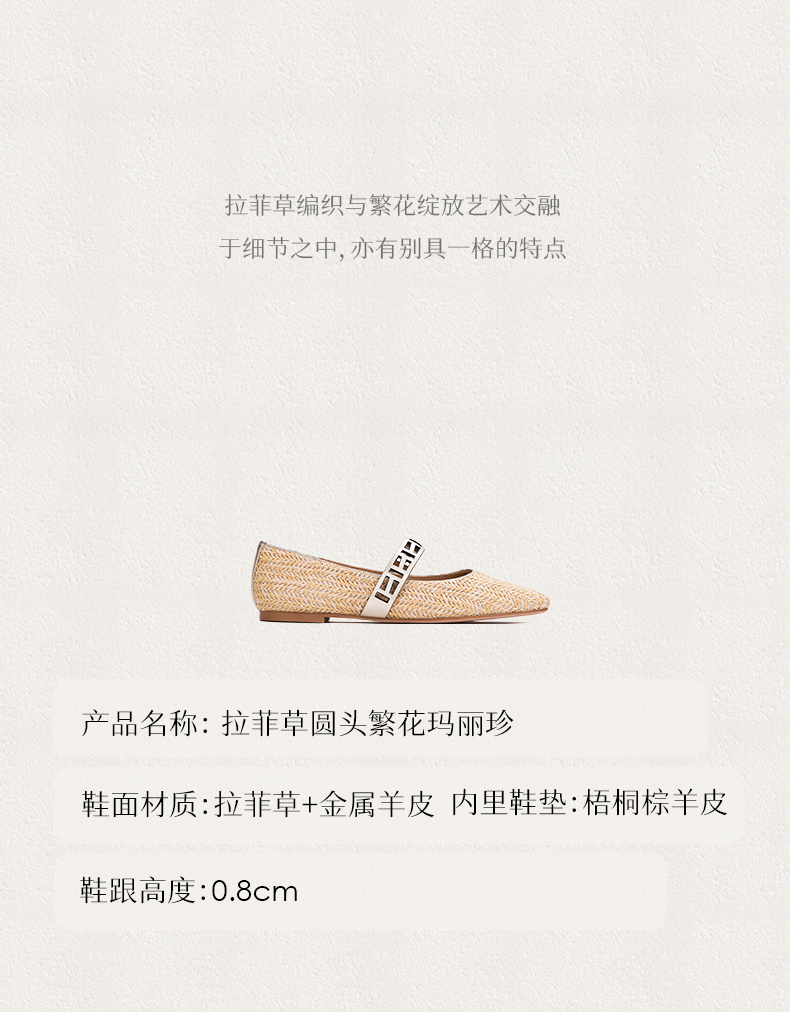 heelz设计师鞋履 | 拉菲草圆头繁花玛丽珍 0.8公分