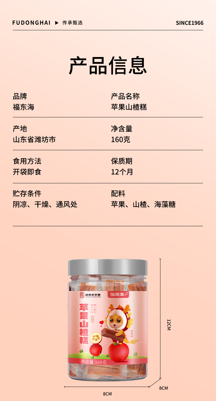 福东海苹果山楂条160克 无添加儿童开胃零食搭六物山楂条 独立袋装