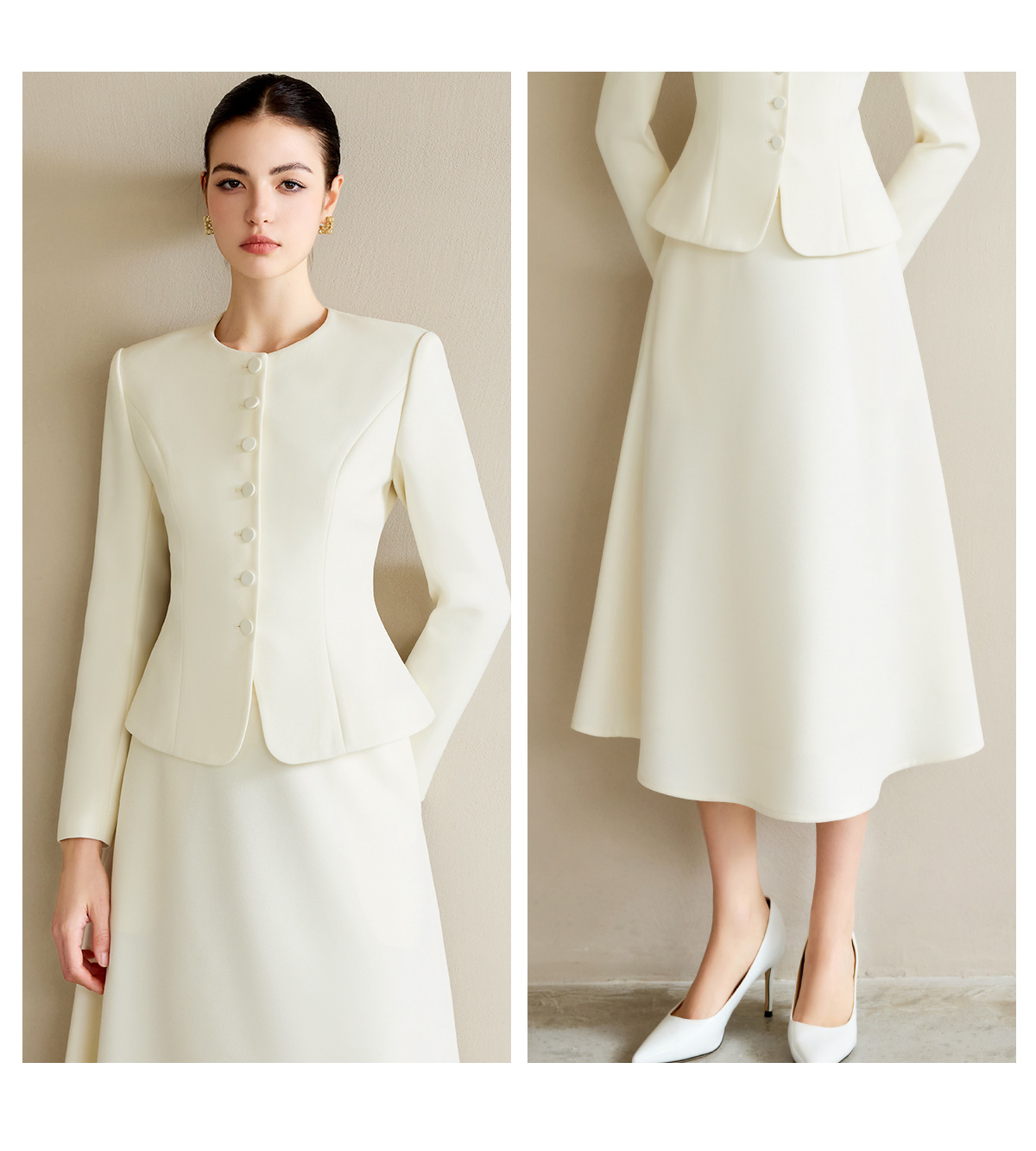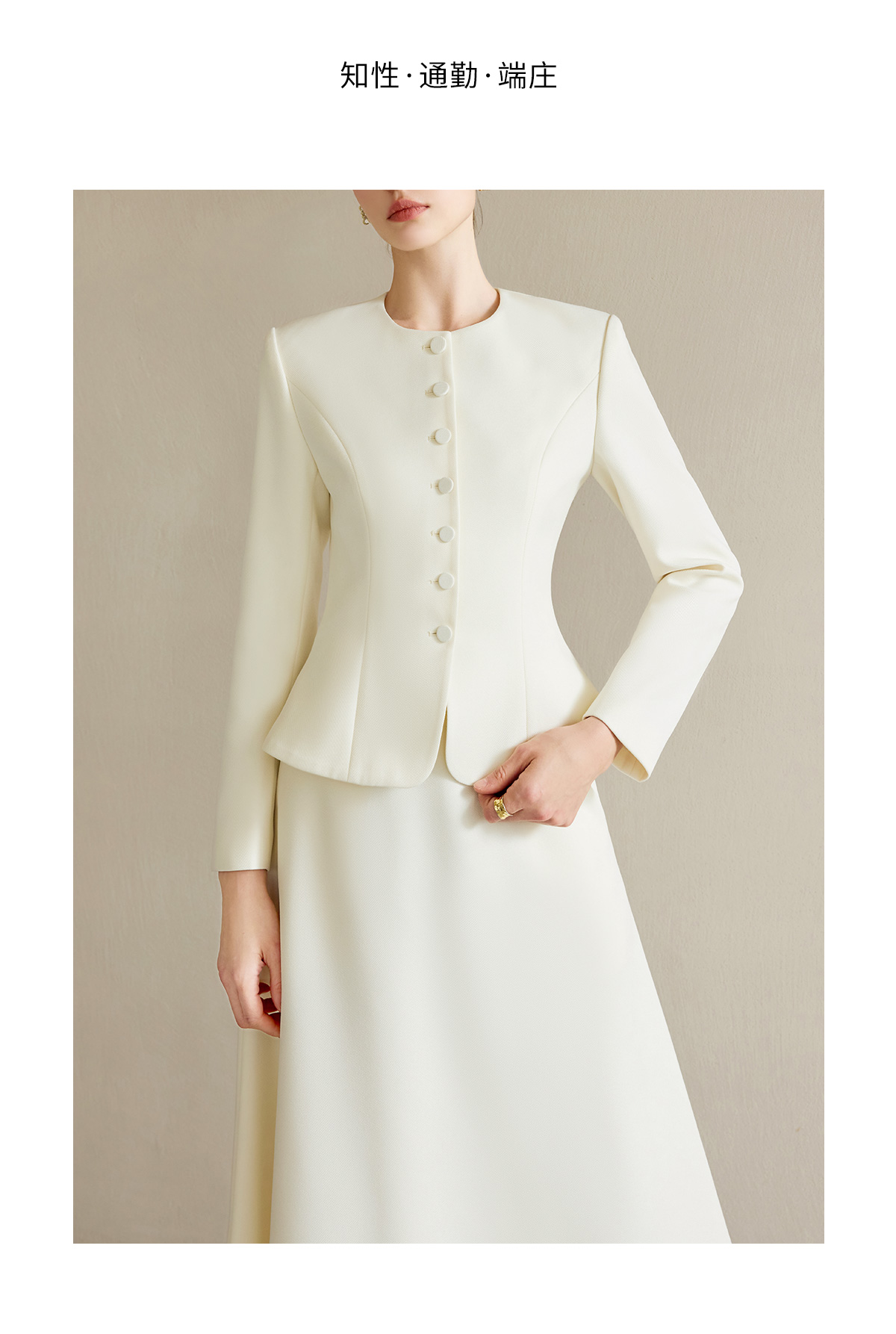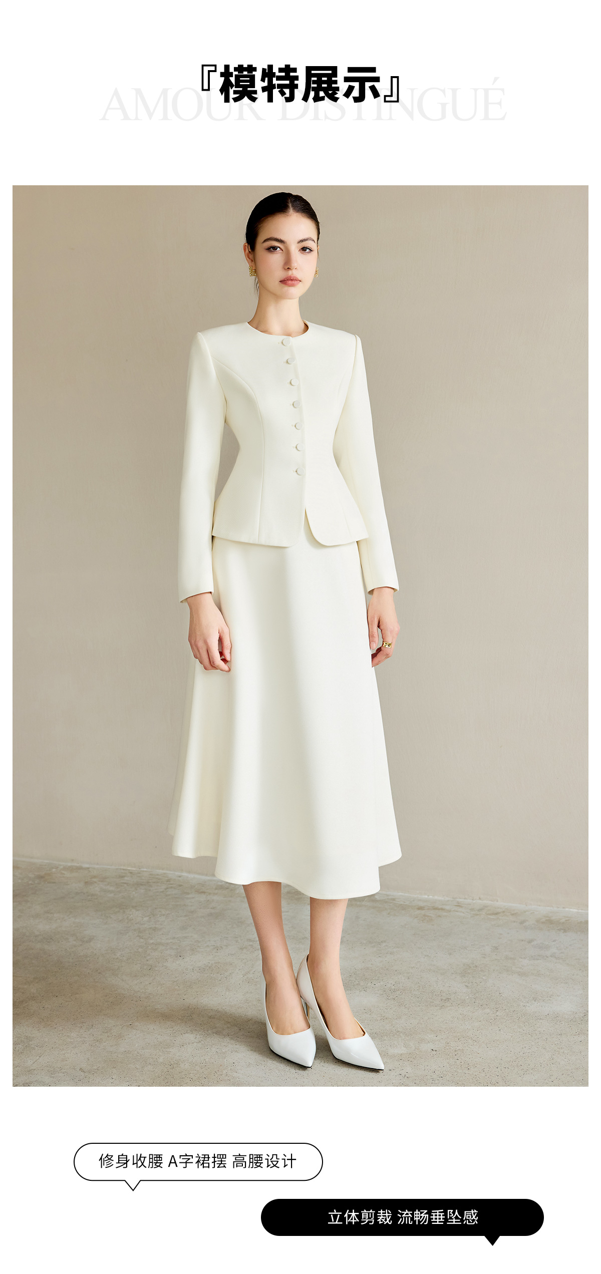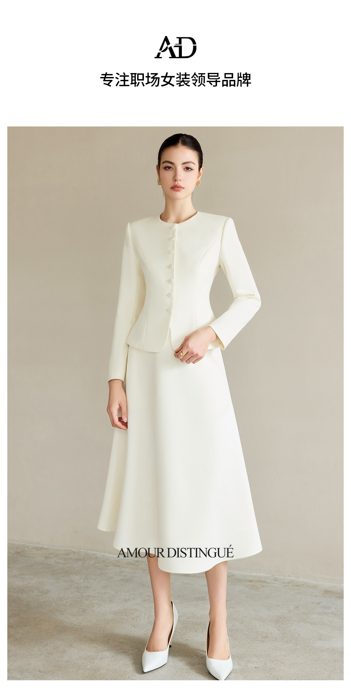 AD职业装气质女神范套装女高端细闪银丝圆领西装正装伞裙两件套