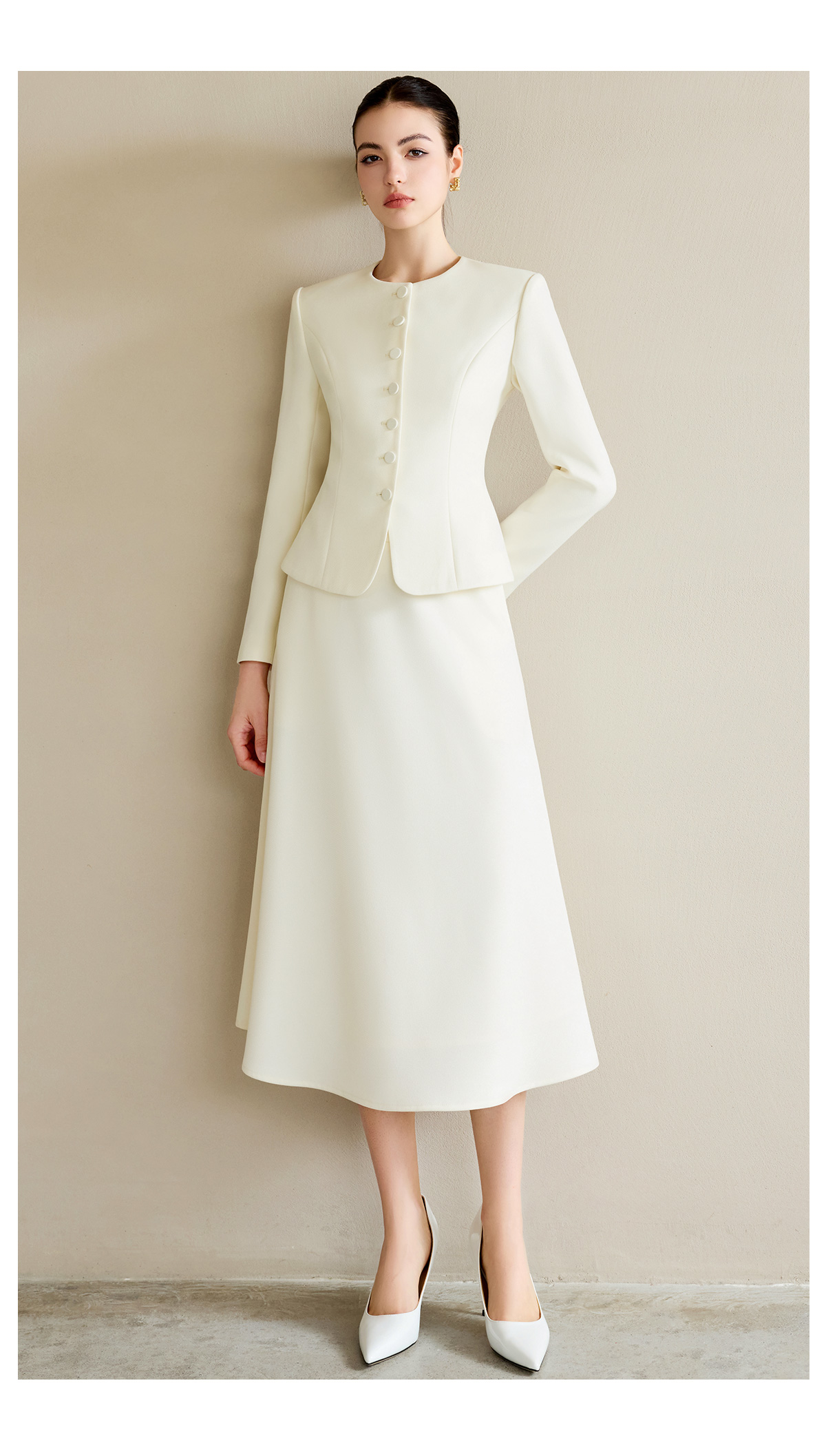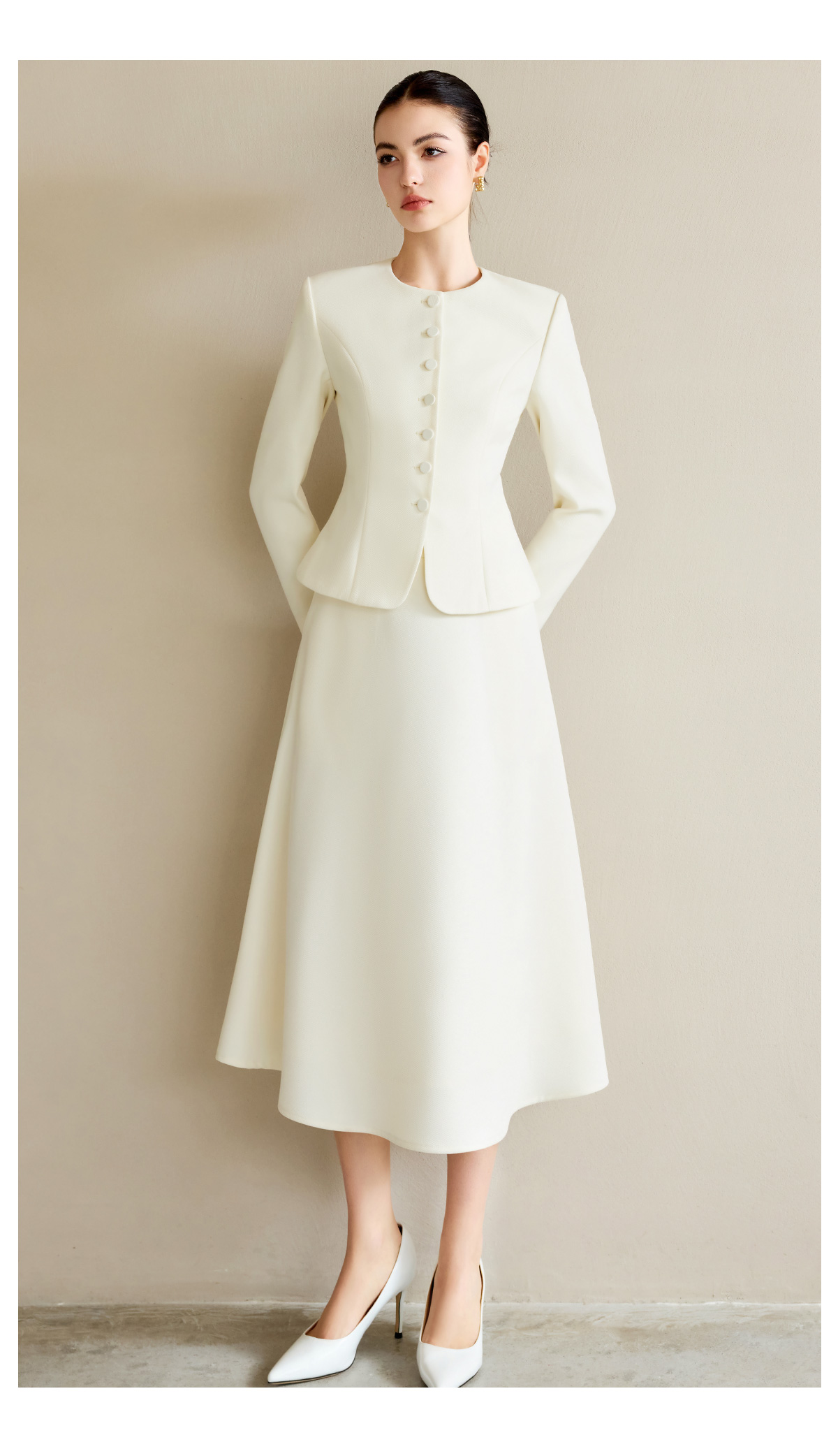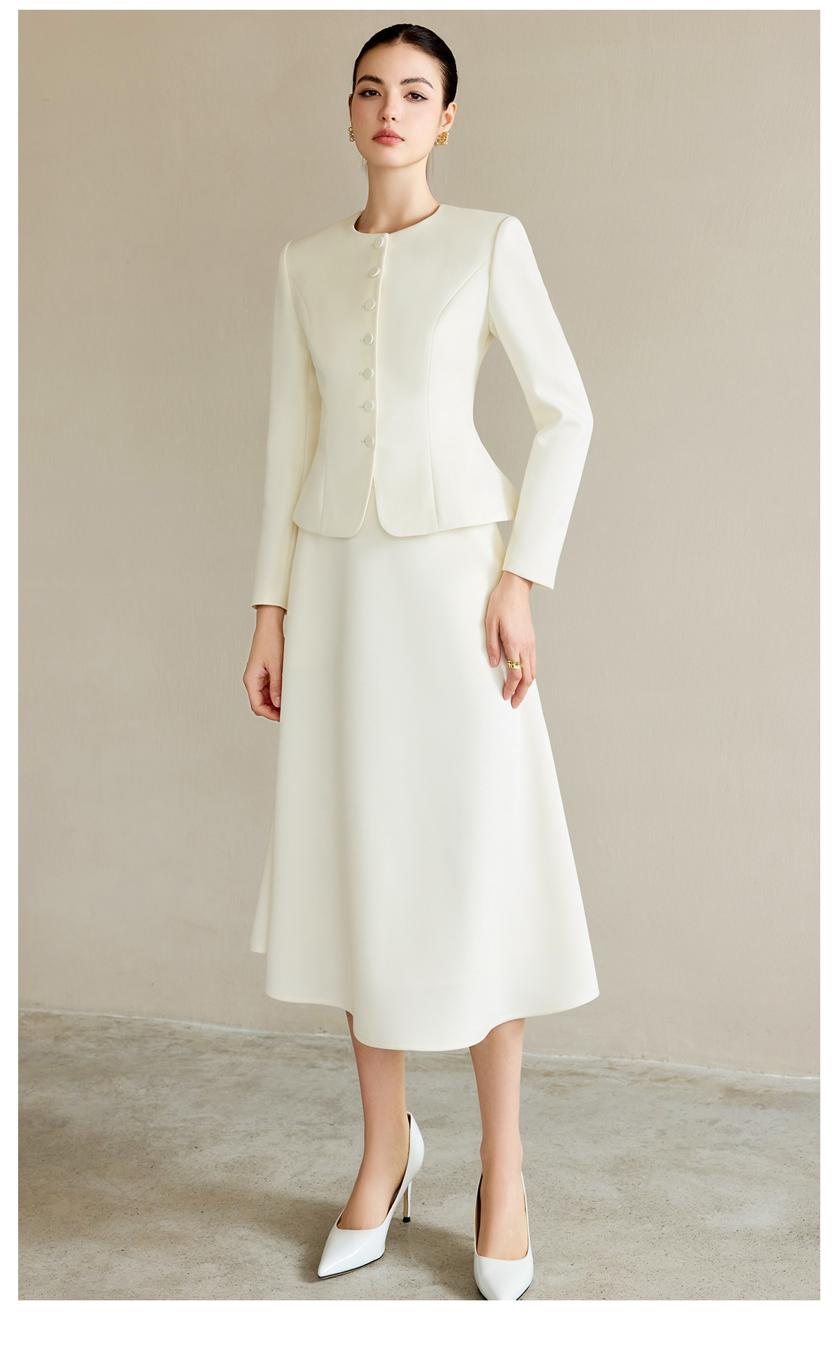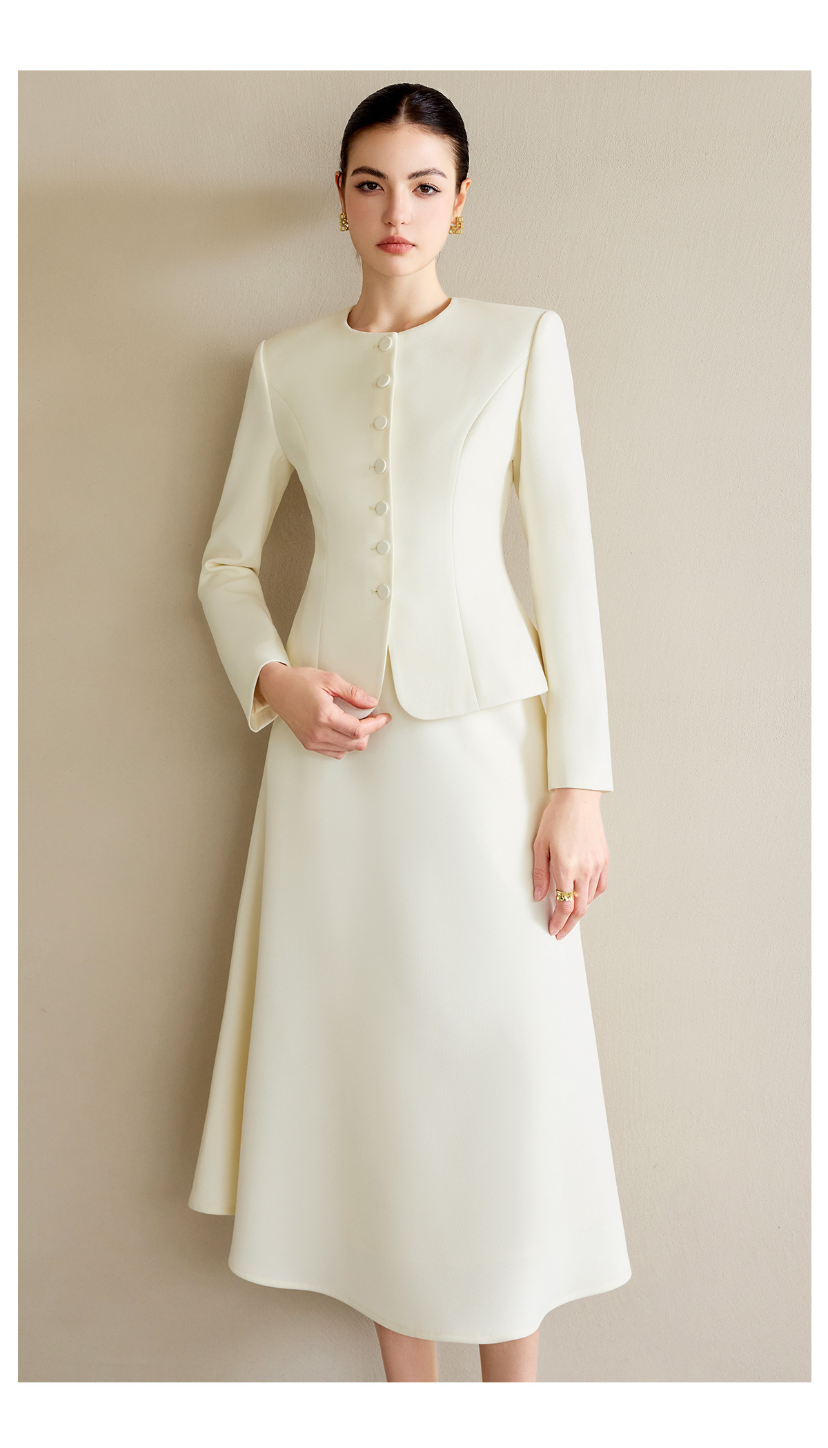 AD职业装气质女神范套装女高端细闪银丝圆领西装正装伞裙两件套