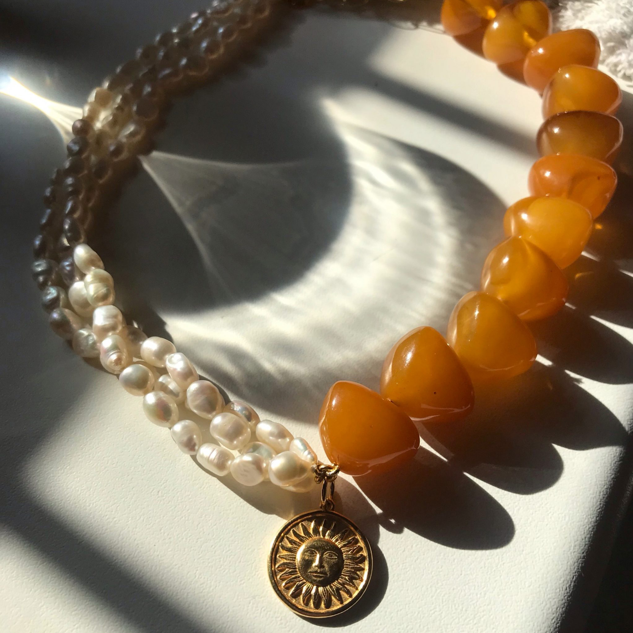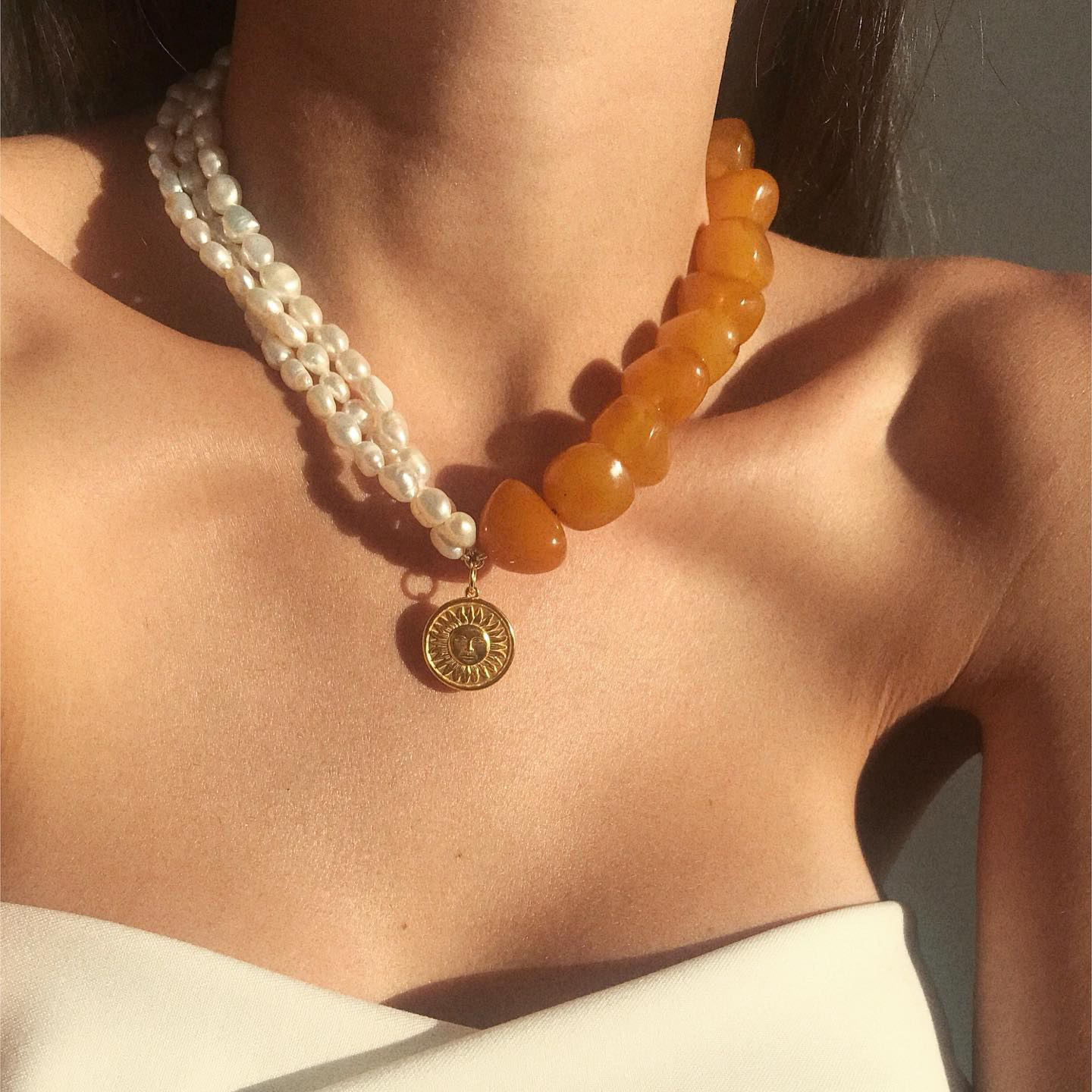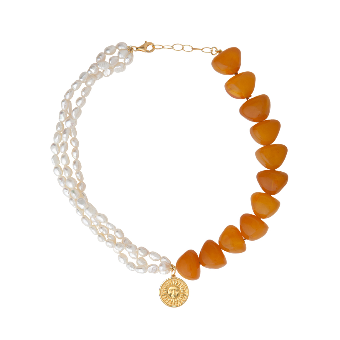 订购7周到|Barbóra-Reflections-太阳金币 琥珀石 珍珠 项链[希腊设计师]