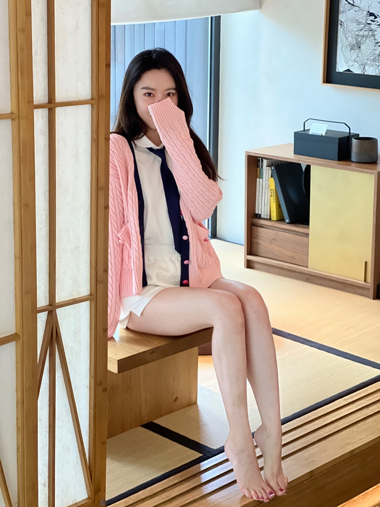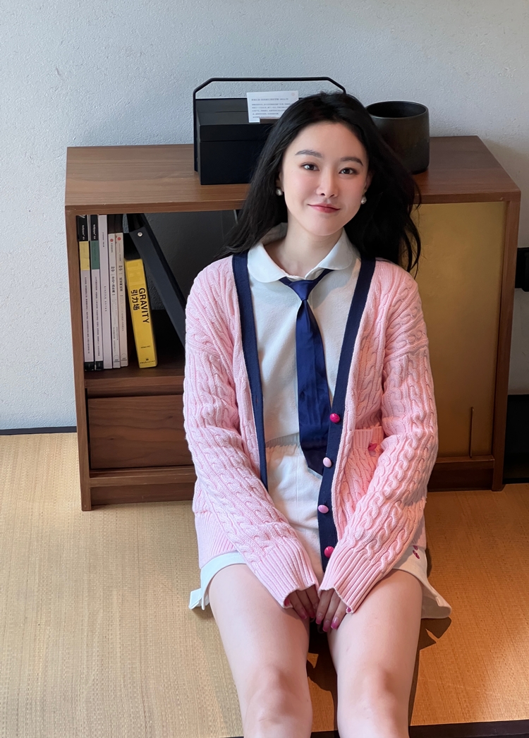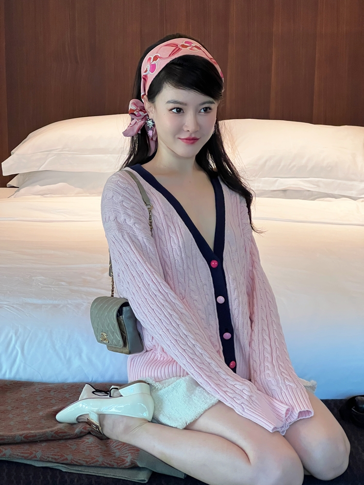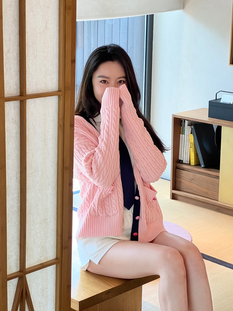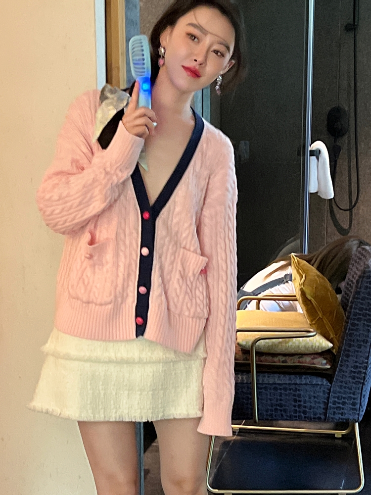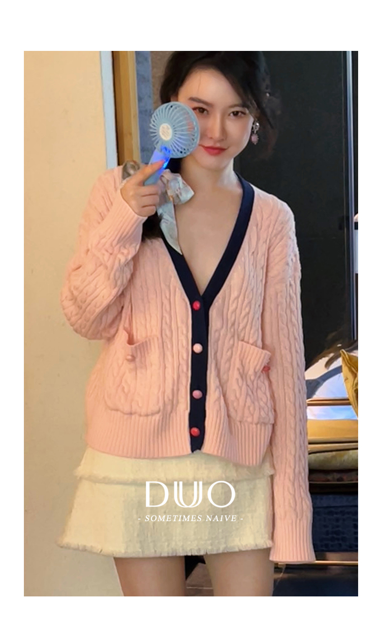 秋游系列玫瑰少女紫粉学院麻花毛衣开衫