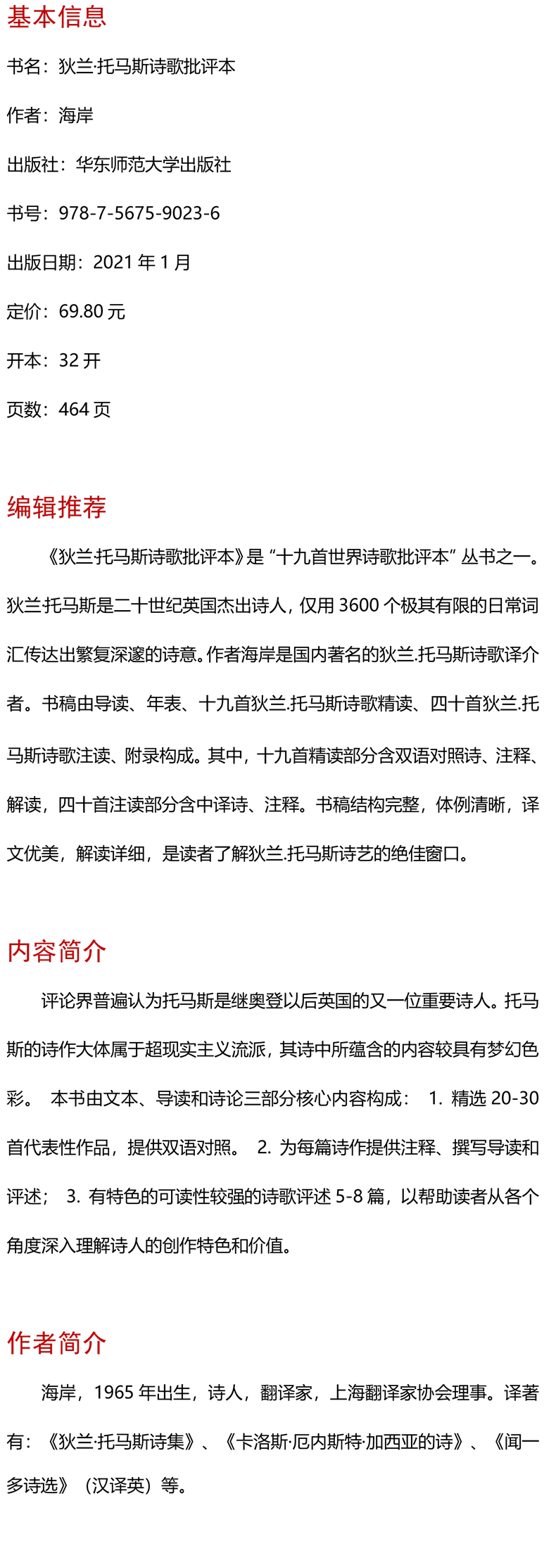 狄兰·托马斯诗歌批评本 诗歌评论 十九首世界诗歌批评本丛书