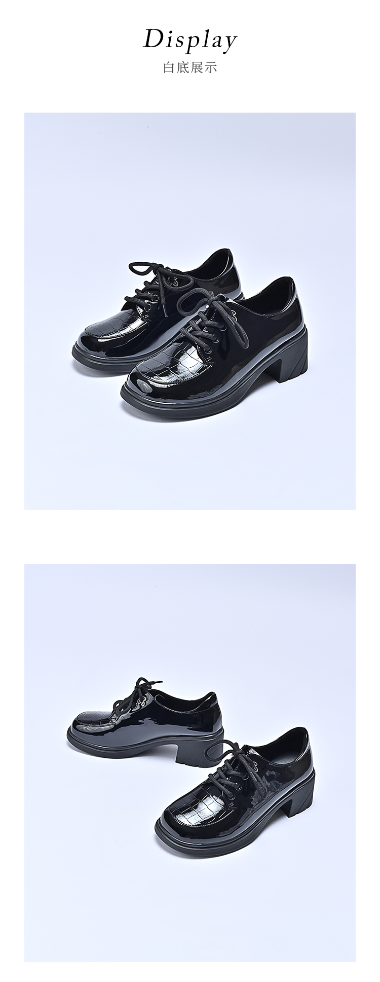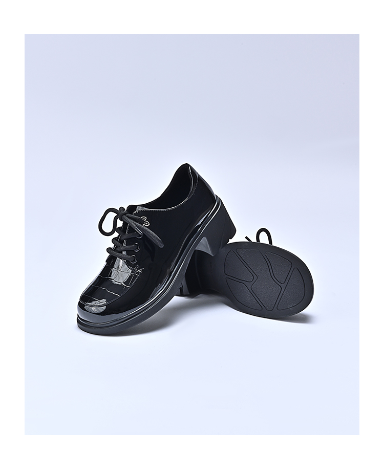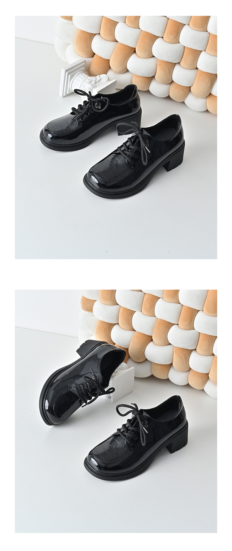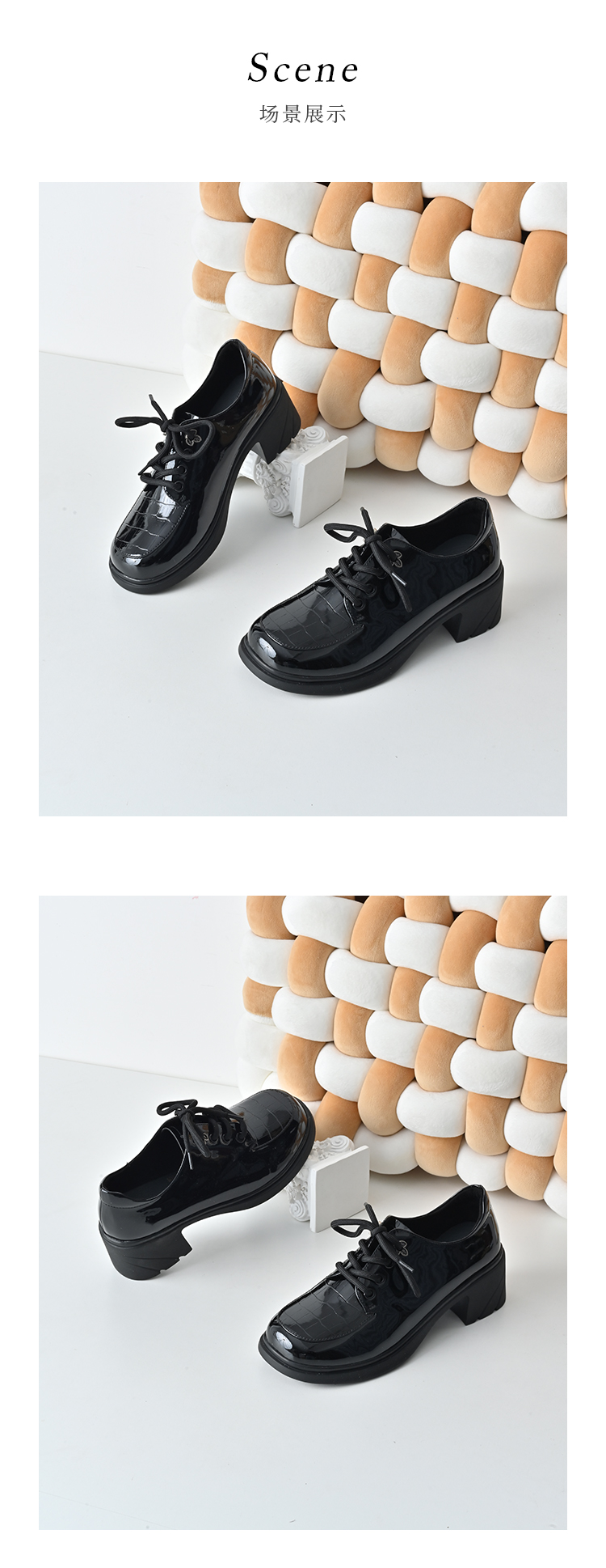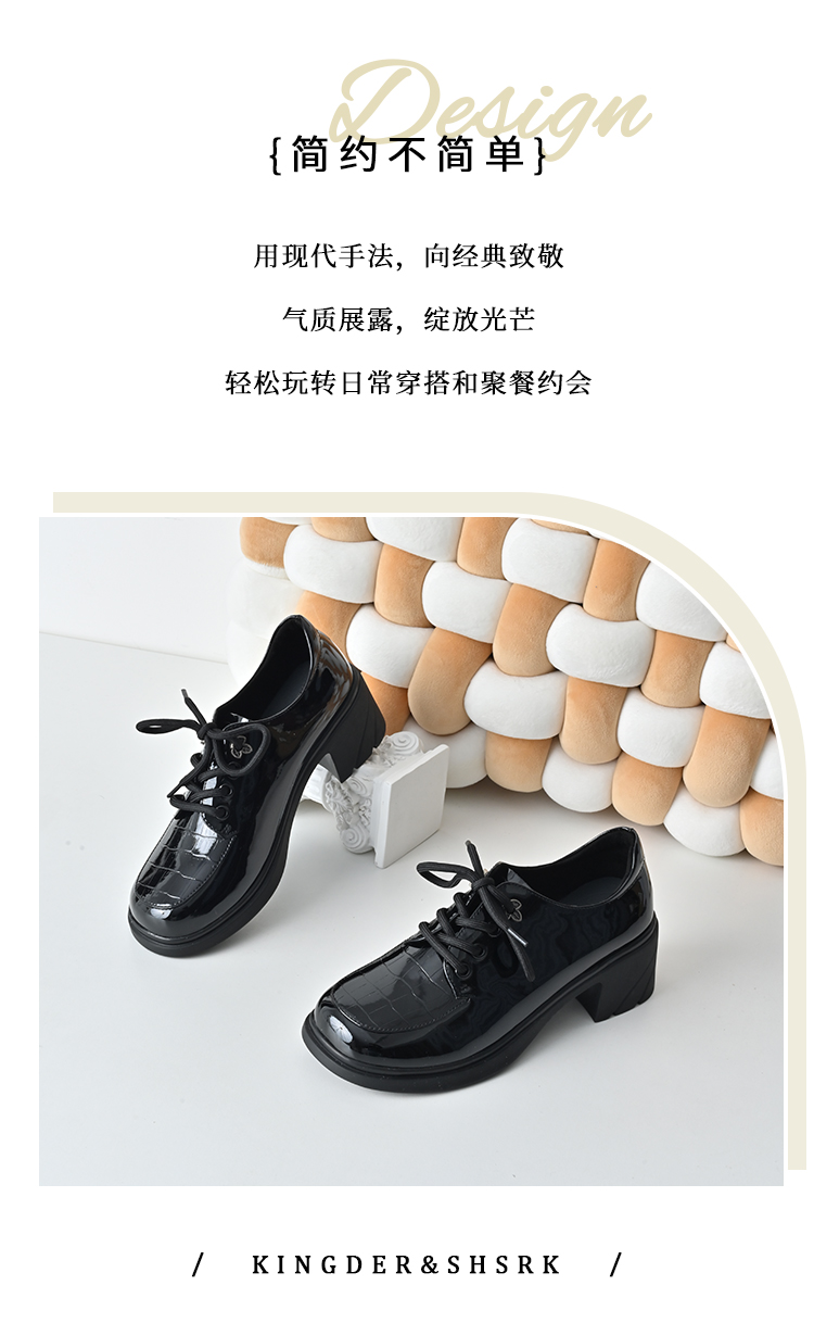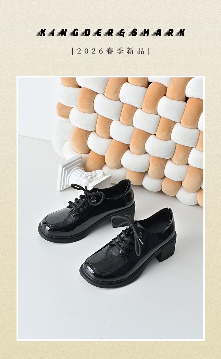 经典鲨2026年春专柜新品软皮圆头中粗跟鳄鱼纹柔软小皮鞋女KC19-617011