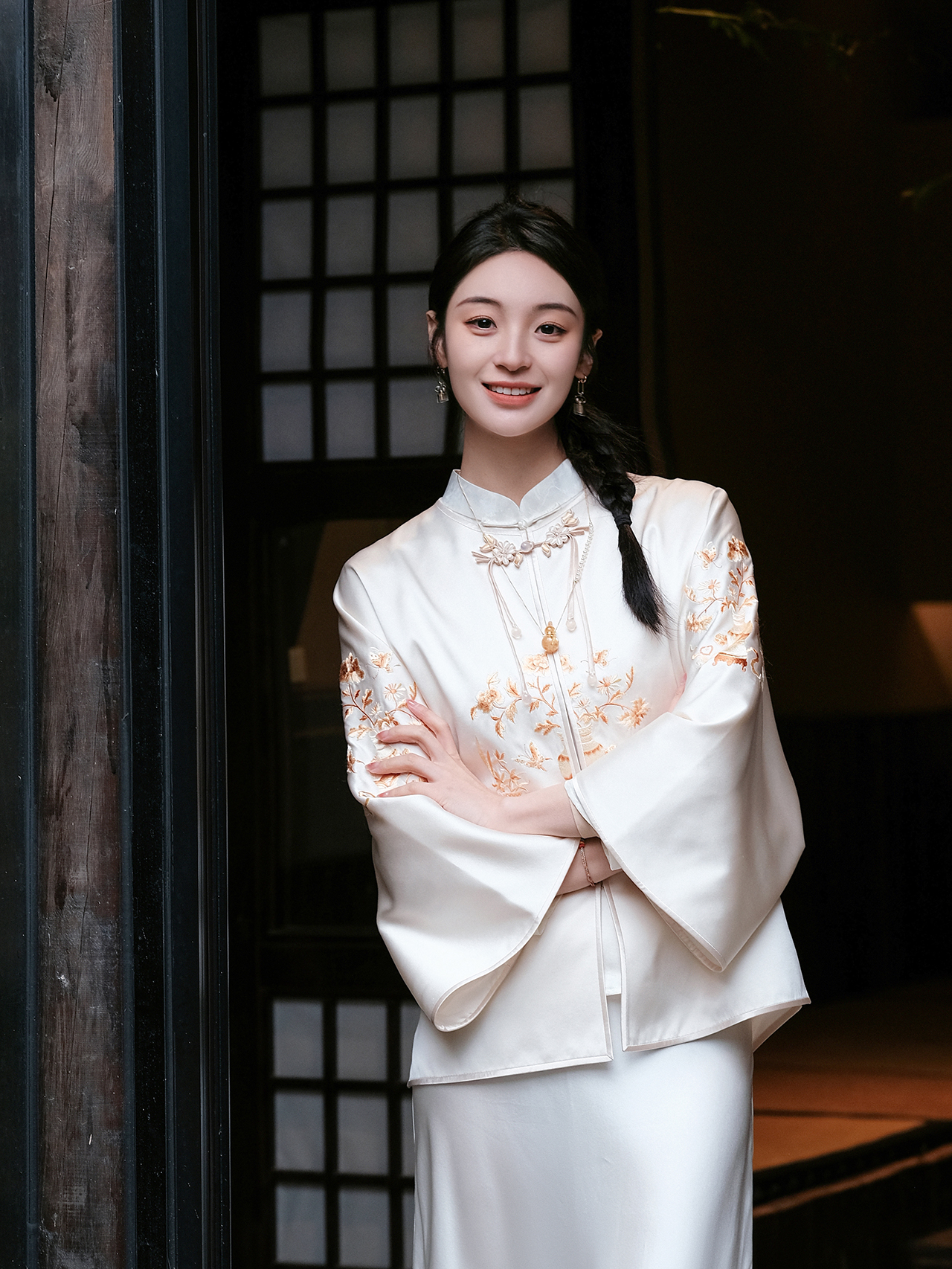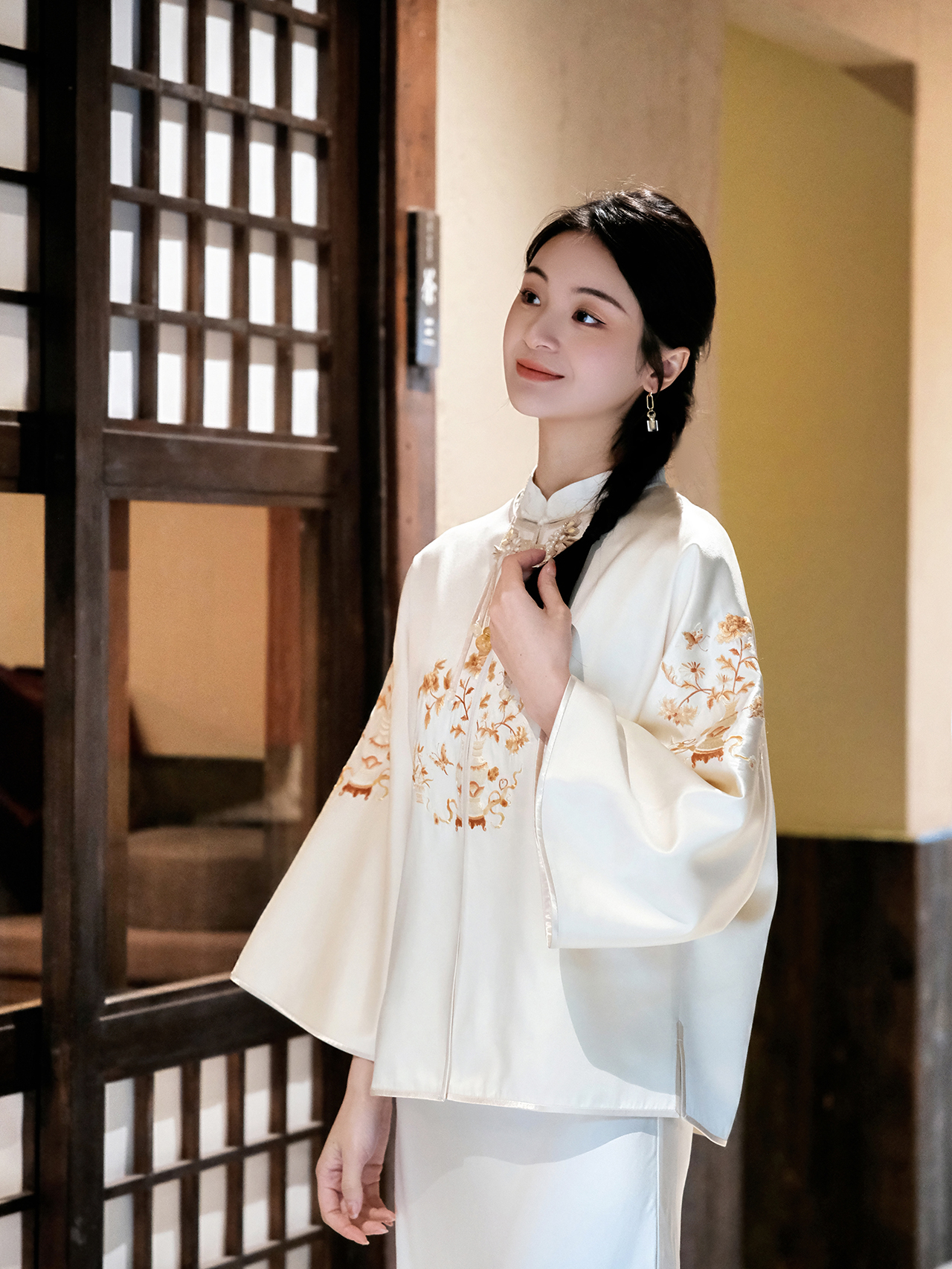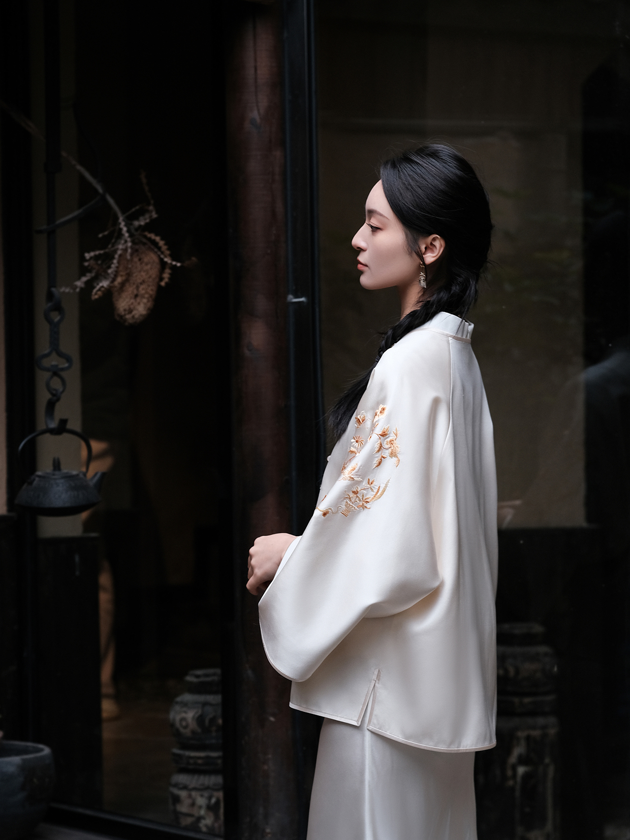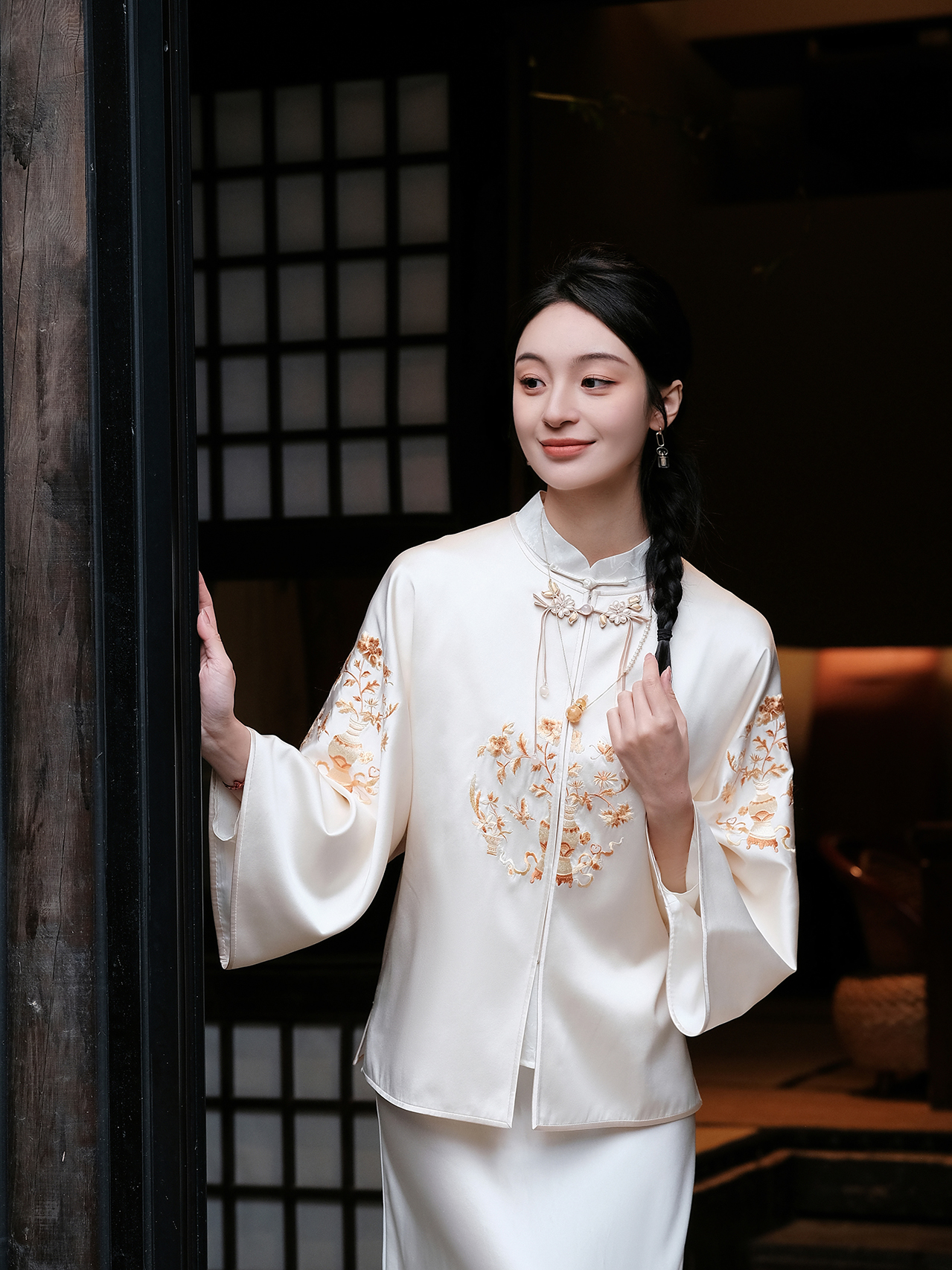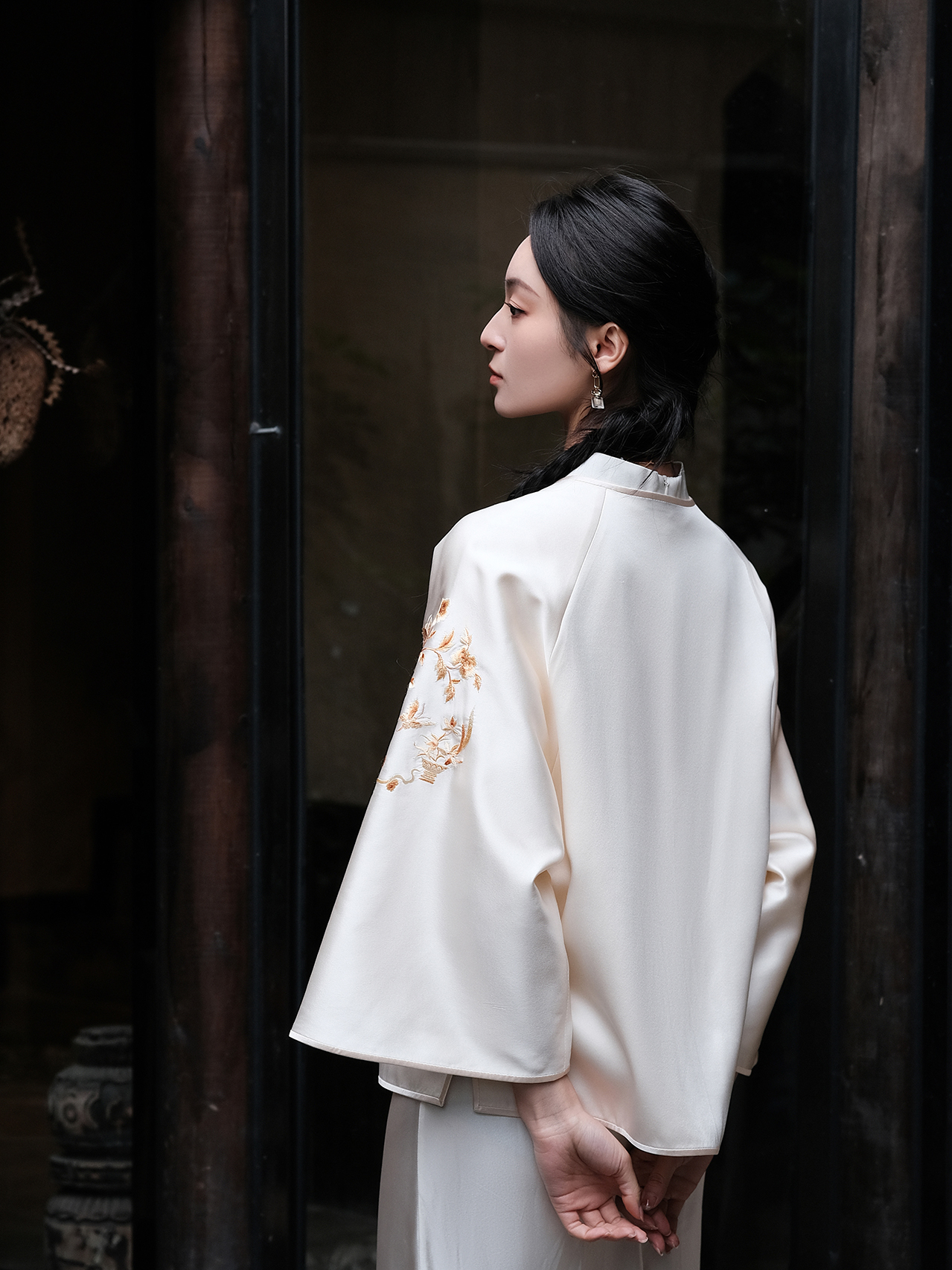 盛唐牡丹 |真丝提花梅兰竹菊外套/可正反两穿