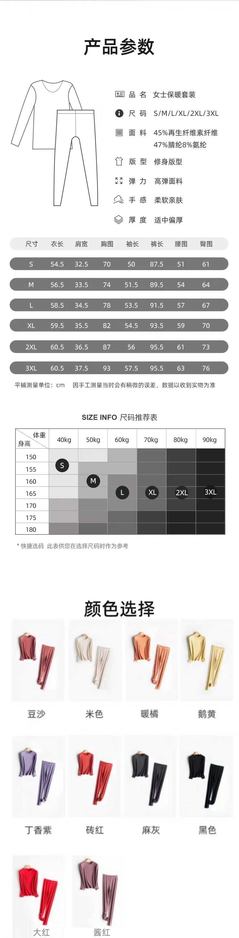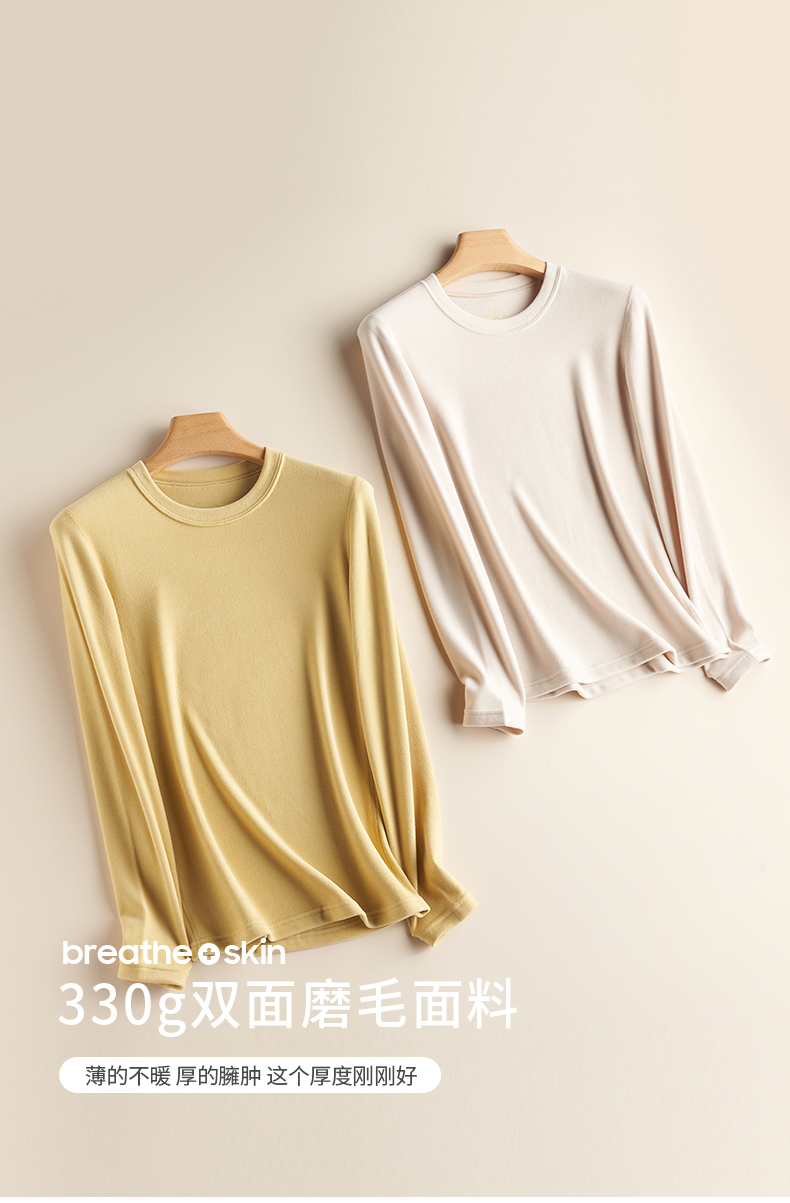 weyo秋冬新款女士双面磨毛保暖圆领内衣打底套装A10302、A10402