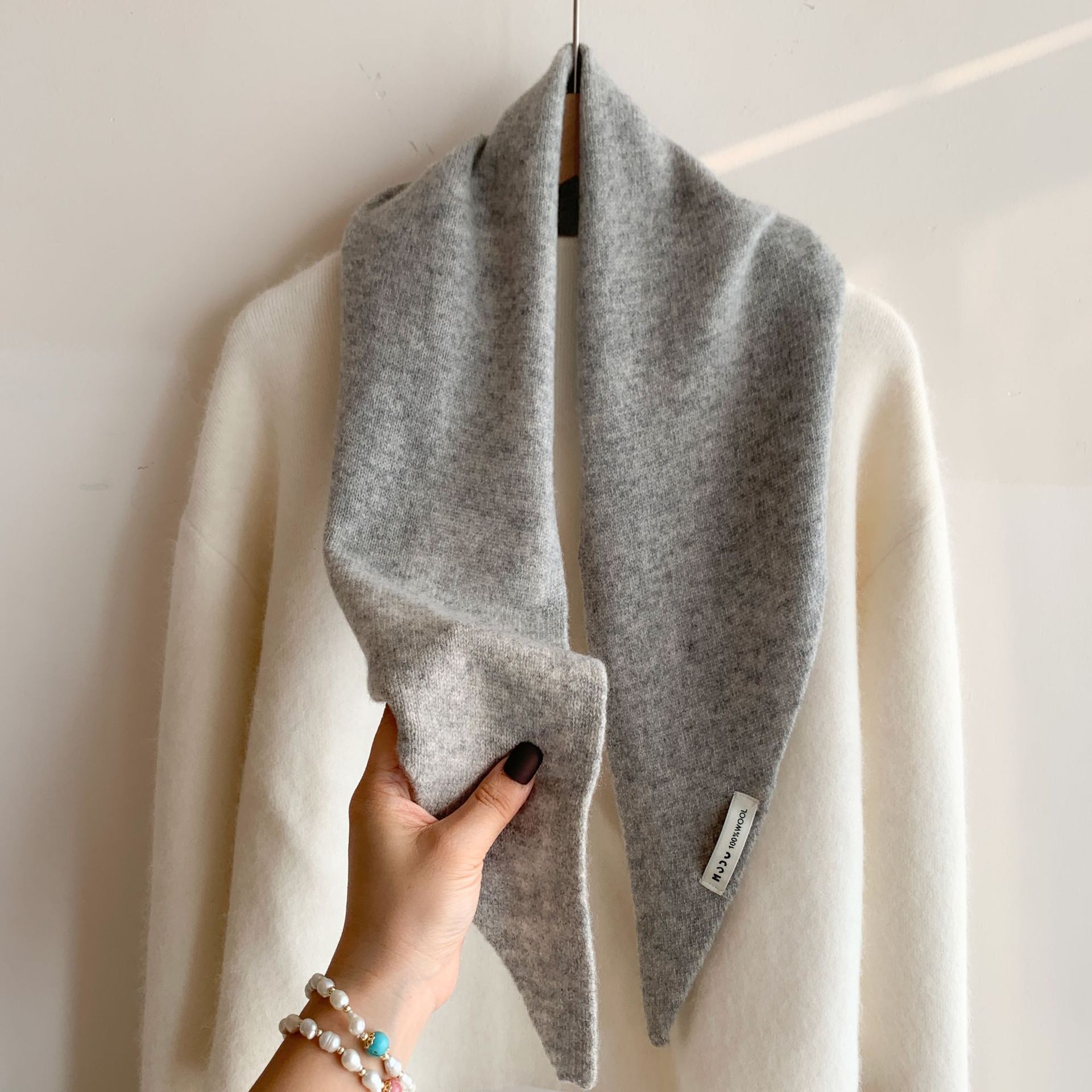 【秋冬韩系氛围感❗️澳洲羊毛三角巾】慵懒感十足简约针织围脖,质感软糯舒适围巾,暖和护脖围巾日韩甜美百搭毛线围脖L