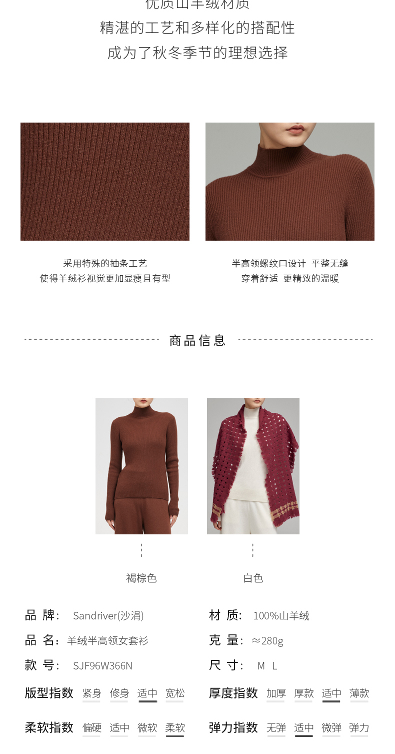 疗愈羊绒|羊绒半高领女套衫SJF96W366N