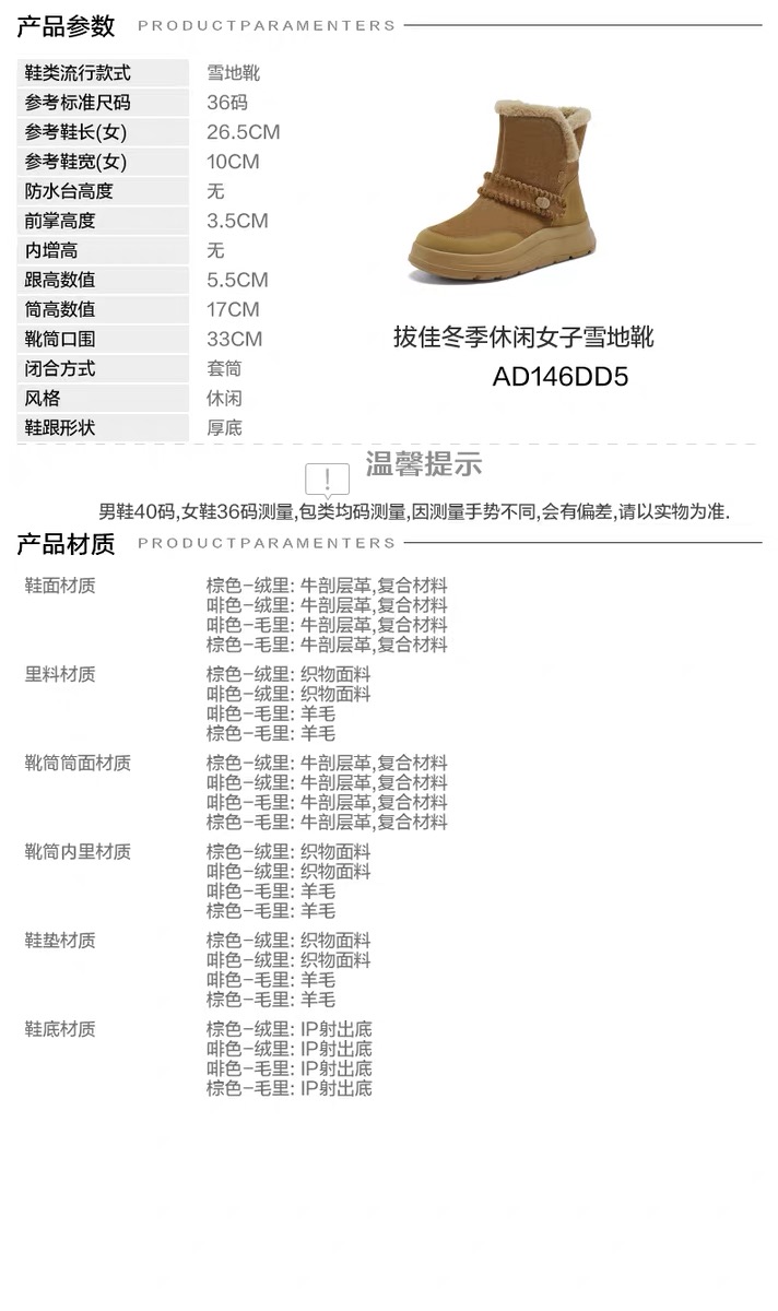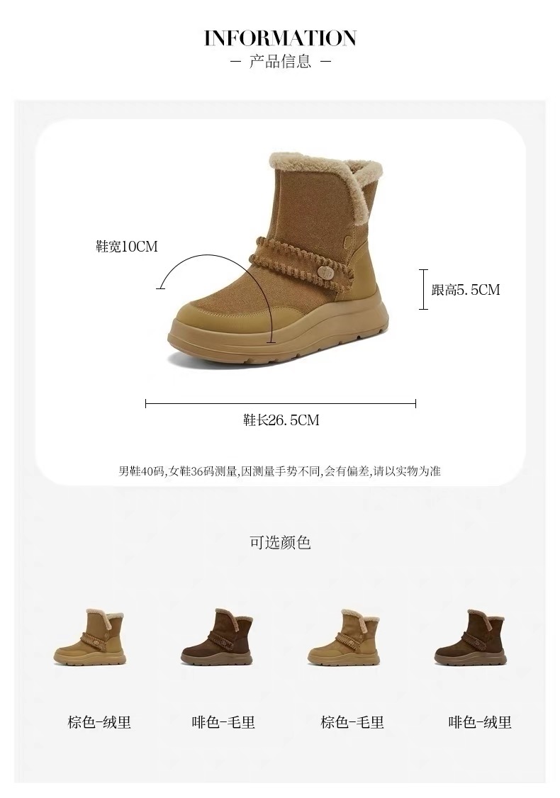 【云粉节】 【拔佳】BF楼Bata雪地靴女2025冬款牛剖皮保暖厚底时尚短靴AD146DD5 吊牌价1159 活动价799