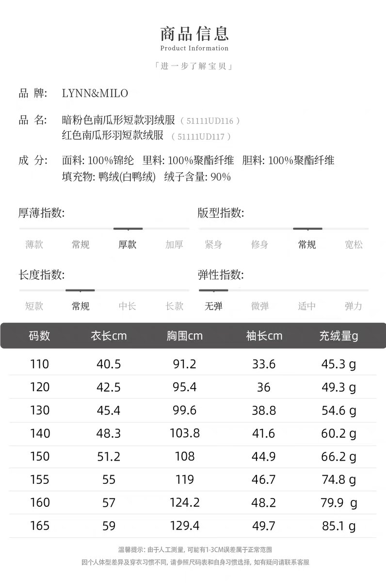 【春上新】8楼LYNN&MILO琳麦罗 亲子女童2025秋冬新款短款面包羽绒服冬装外套