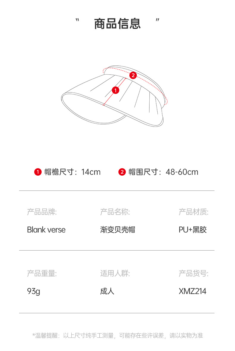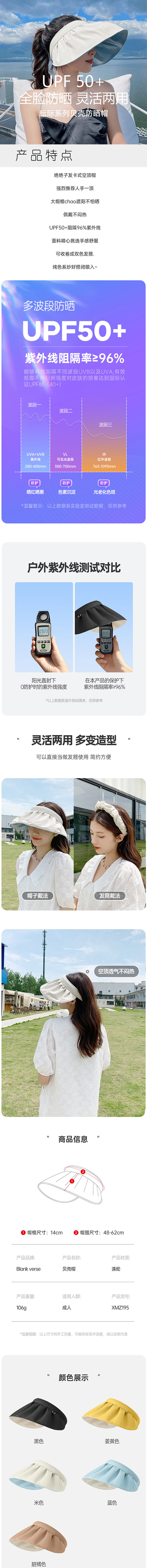 UPF50+夏季贝壳防晒帽 有效阻挡95%阳光