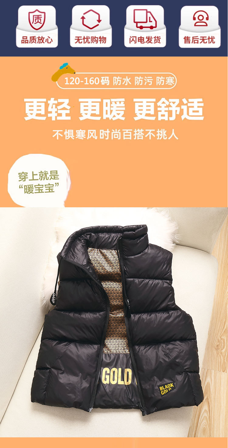 【黑金儿童羽绒棉马甲】 秋冬男女童加厚保暖立领马甲棉服 石墨烯+三防面料