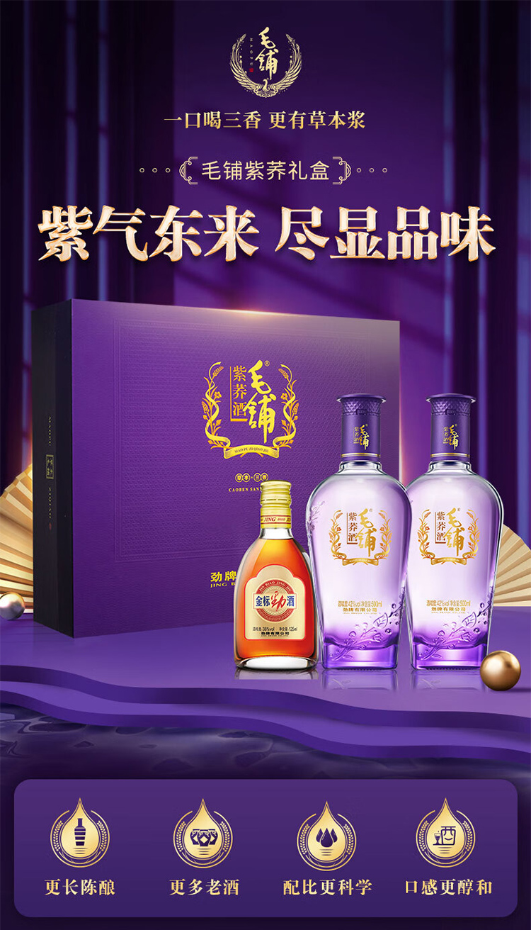 毛铺 紫荞 42度 500ml*2瓶(礼盒装) 荞香 苦荞酒 盒装 一口三香 送亲友长辈 宴请 送礼 自饮