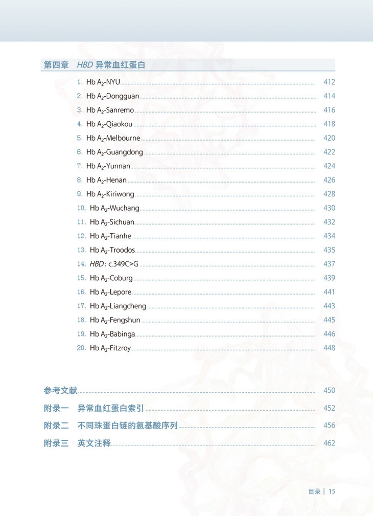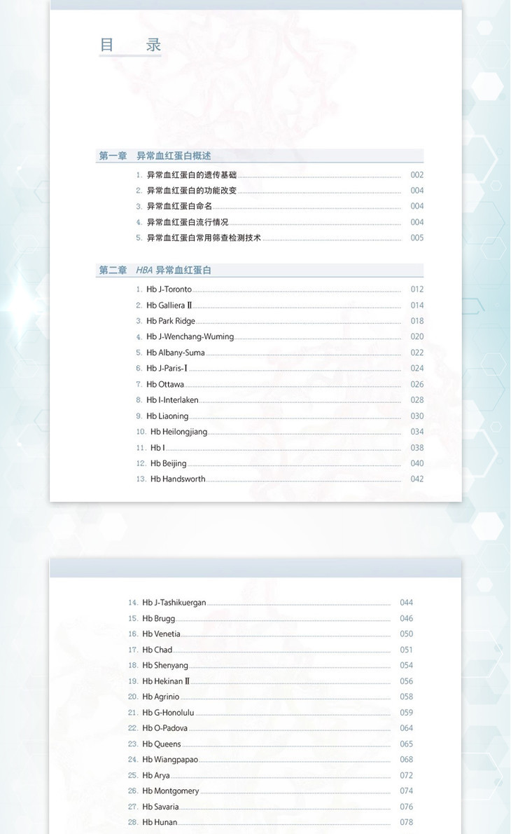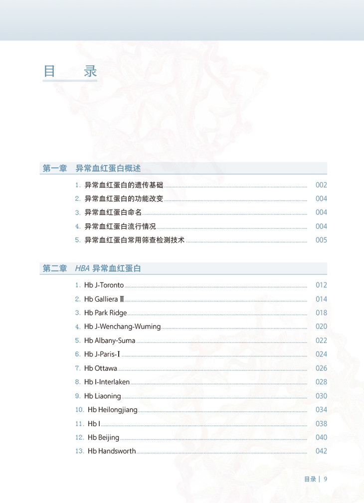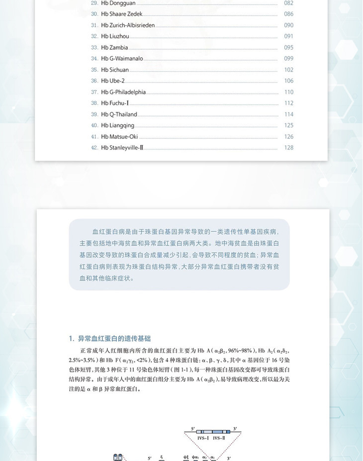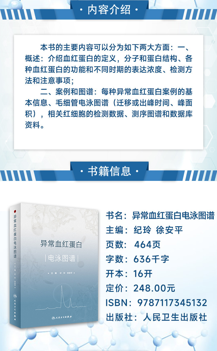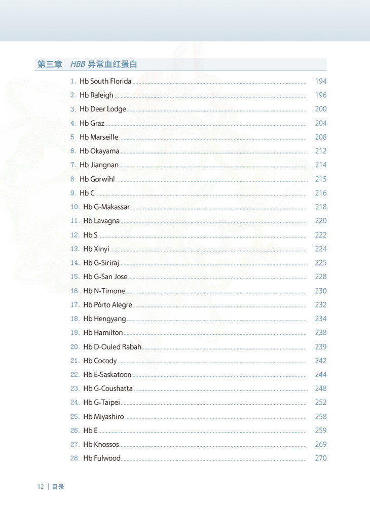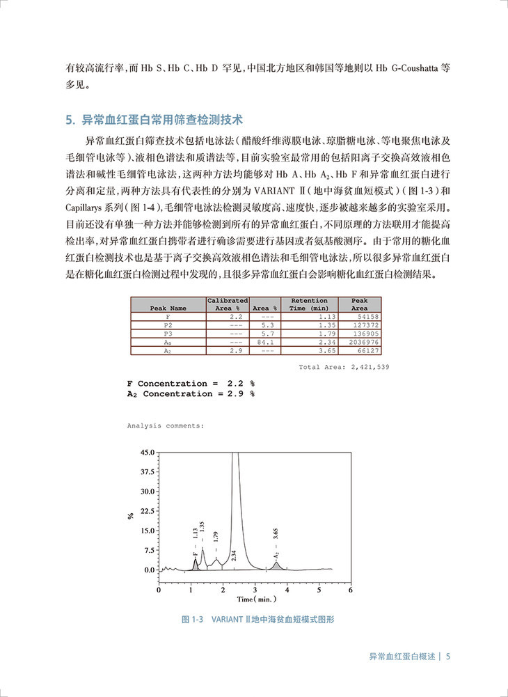 当调控珠蛋白链的基因发生突变、缺失、插入时,就会产生异常珠蛋白链,由异常珠蛋白链所合成的血红蛋白就被称为异常血红蛋白。这些异常血红蛋白在结构、功能、寿命上与正常的血红蛋白存在一定的差异,异常血红蛋白也可以合并地中海贫血,引起了明显的临床症状。目前国内已广泛采用毛细管电泳法筛查血红蛋白病,并通过基因测序方法确认异常血红蛋白。本书的主要内容可以分为如下两大方面: 一、概述:介绍血红蛋白的定义,分子和蛋白结构、各种血红蛋白的功能和不同时期的表达浓度、检测方法和注意事项; 二、案例和图谱:每种异常血红蛋白案例的基本信息、毛细管电泳图谱(迁移或出峰时间、峰面积),相关红细胞的检测数据、测序图谱和数据库资料。