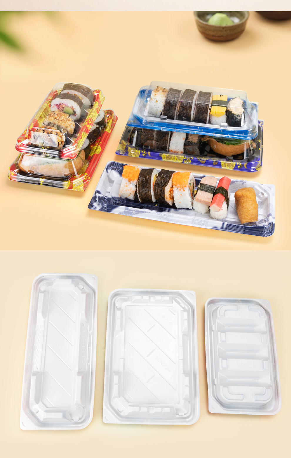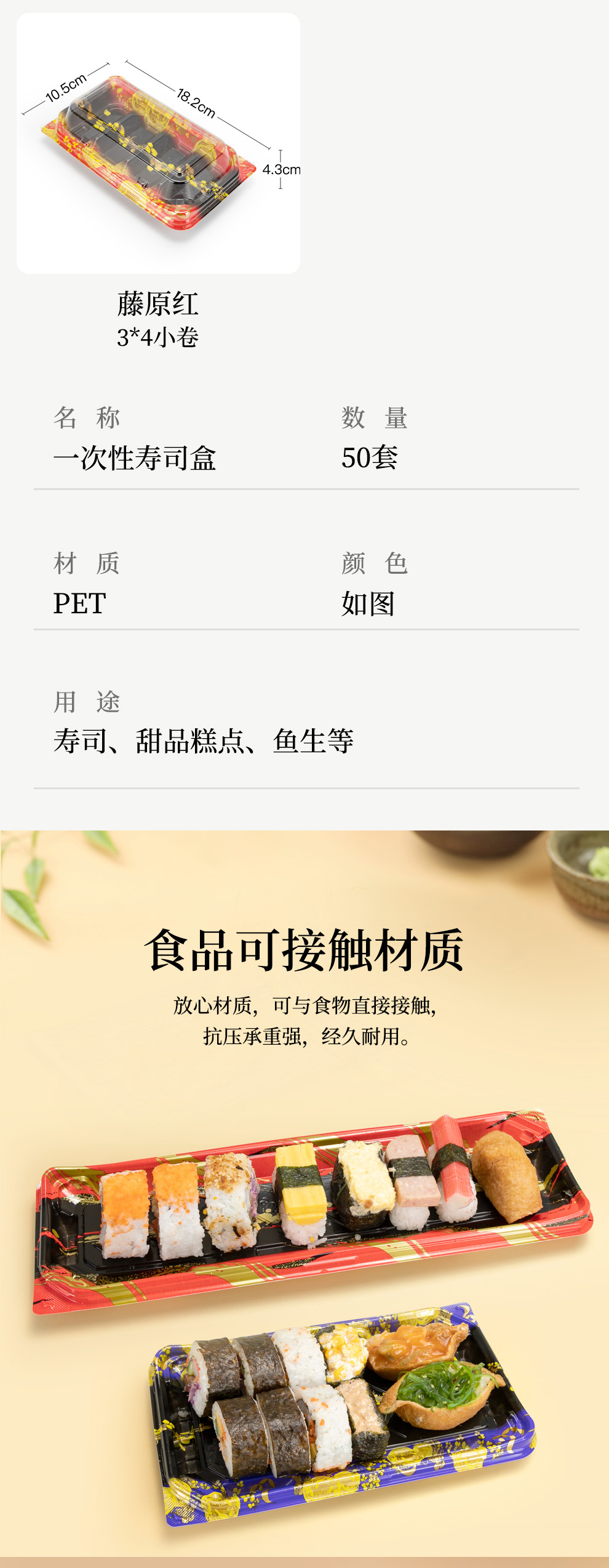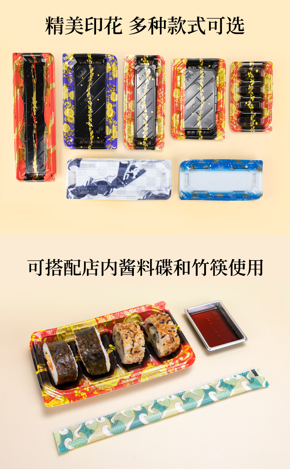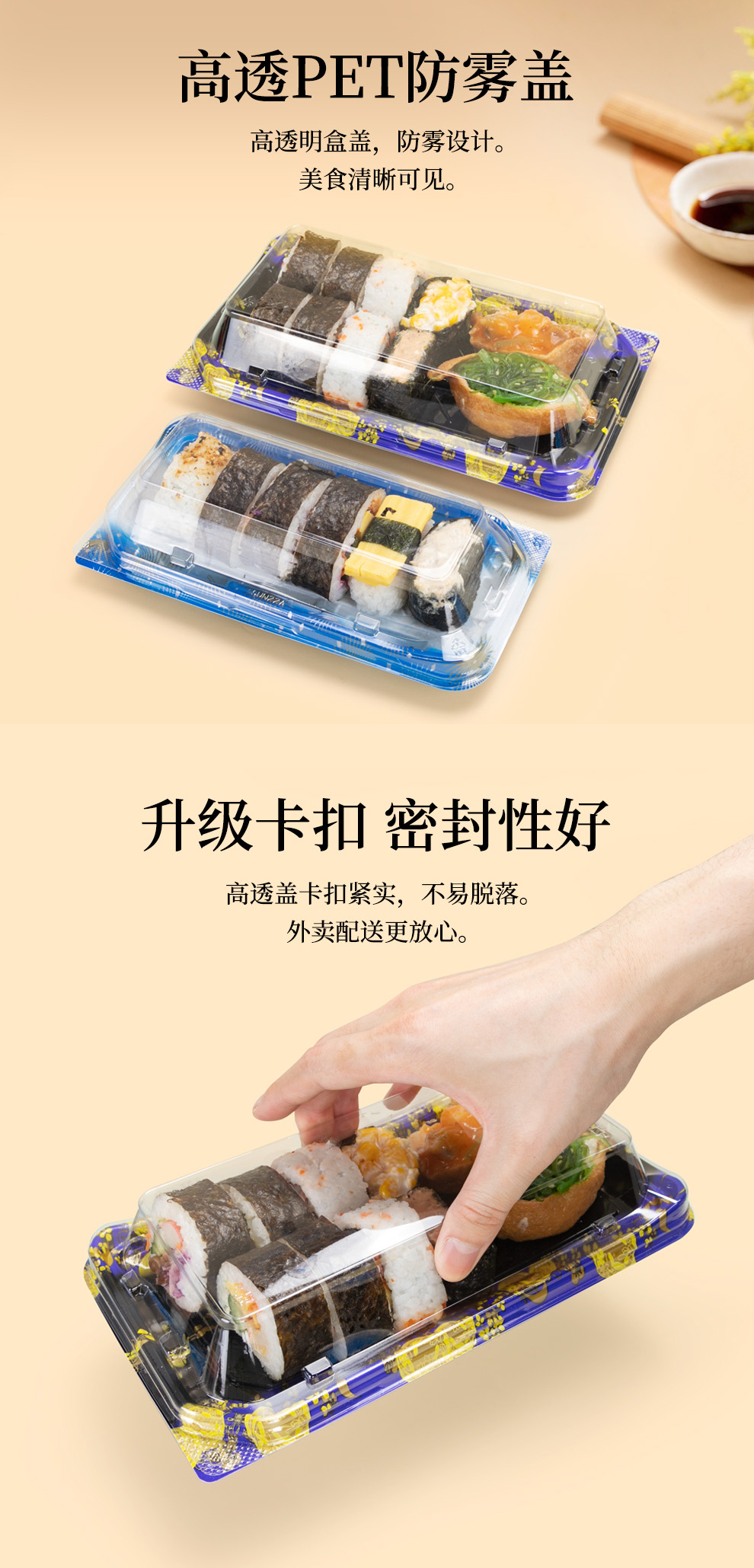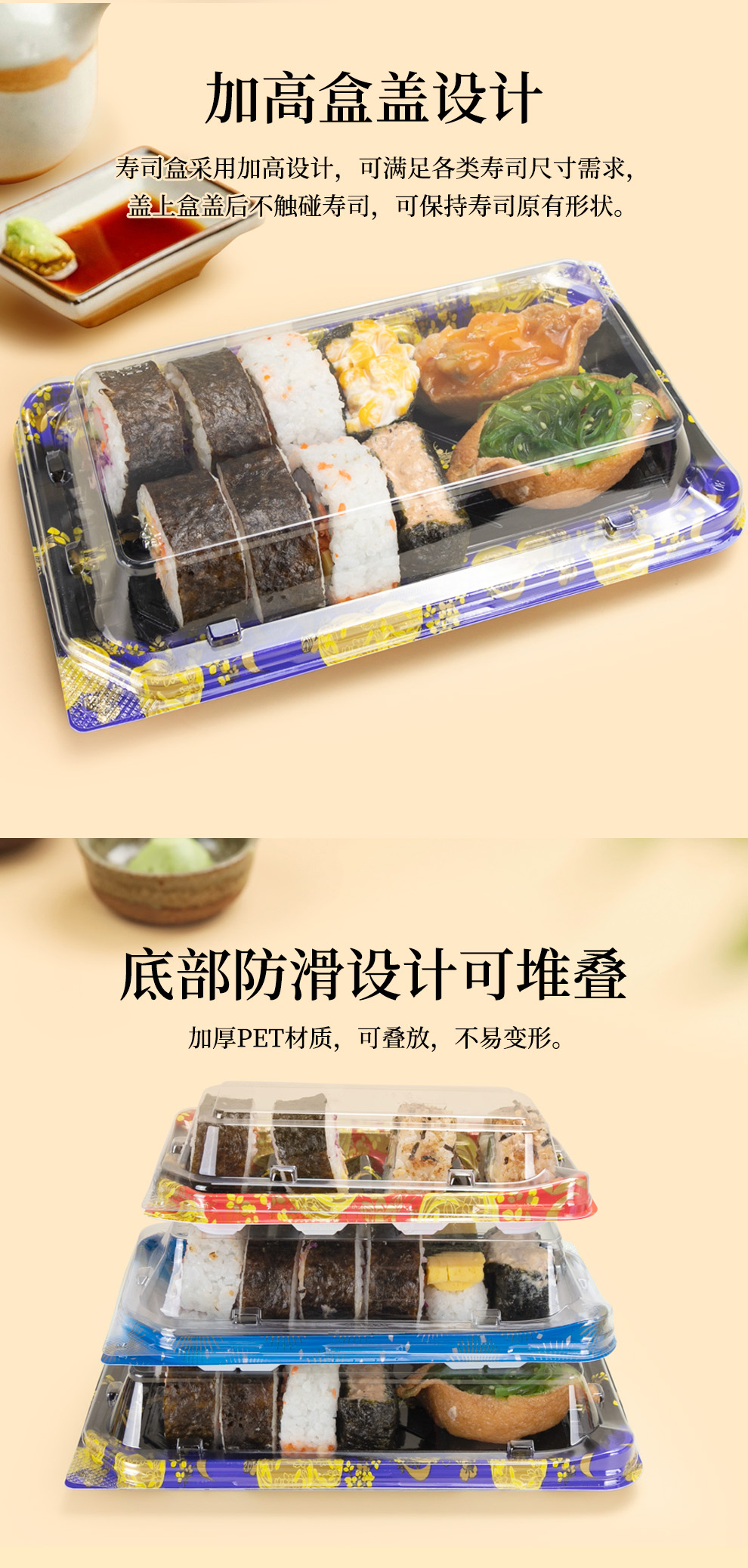 喇叭花一次性寿司打包盒日式印花便当包装长方形带盖外卖春游便当