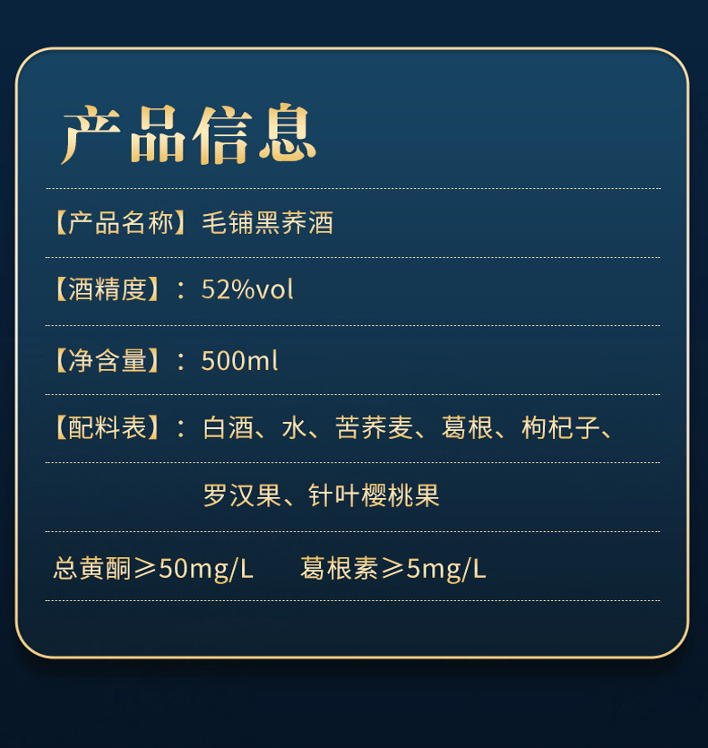 500ml52度毛铺黑荞酒单支/双支