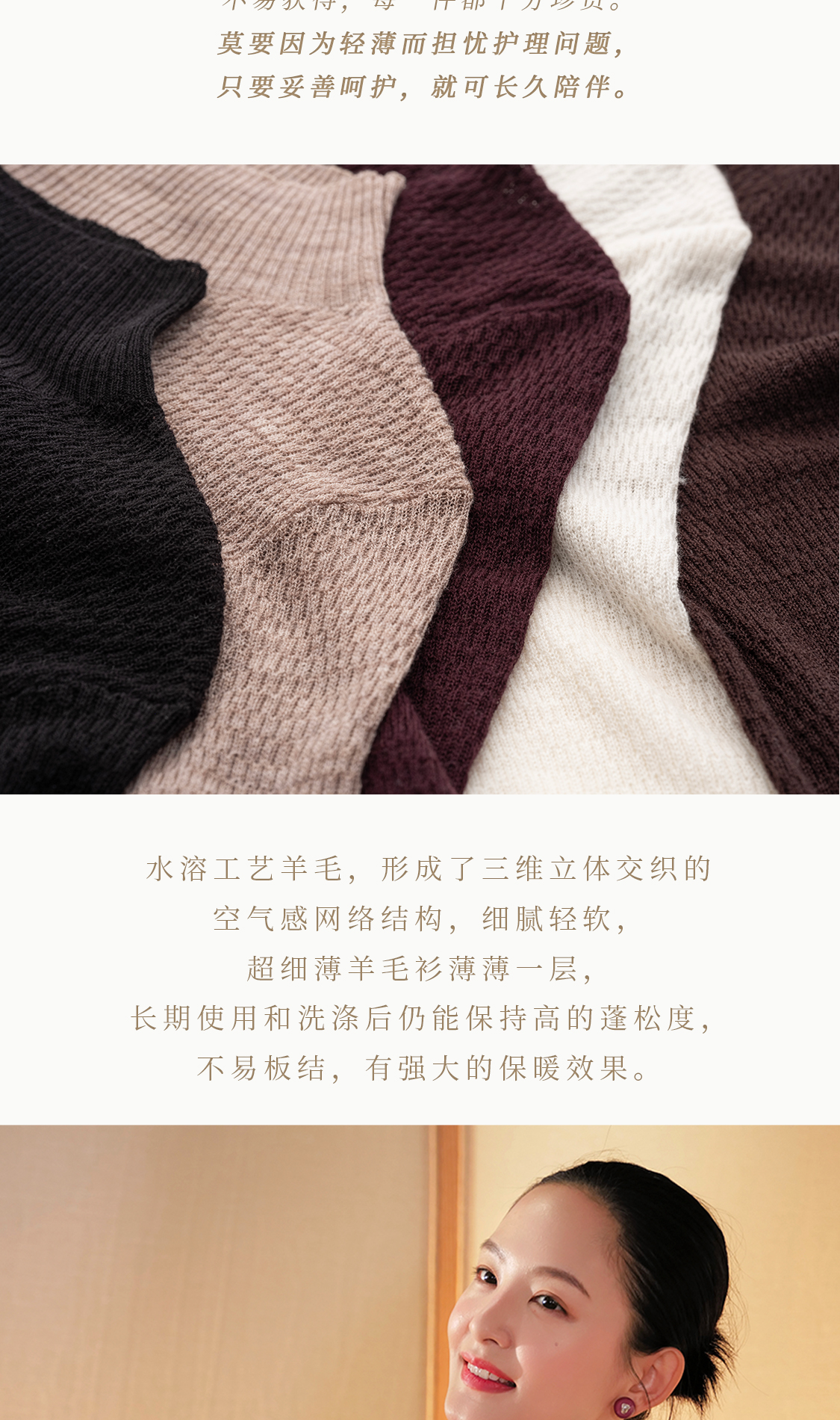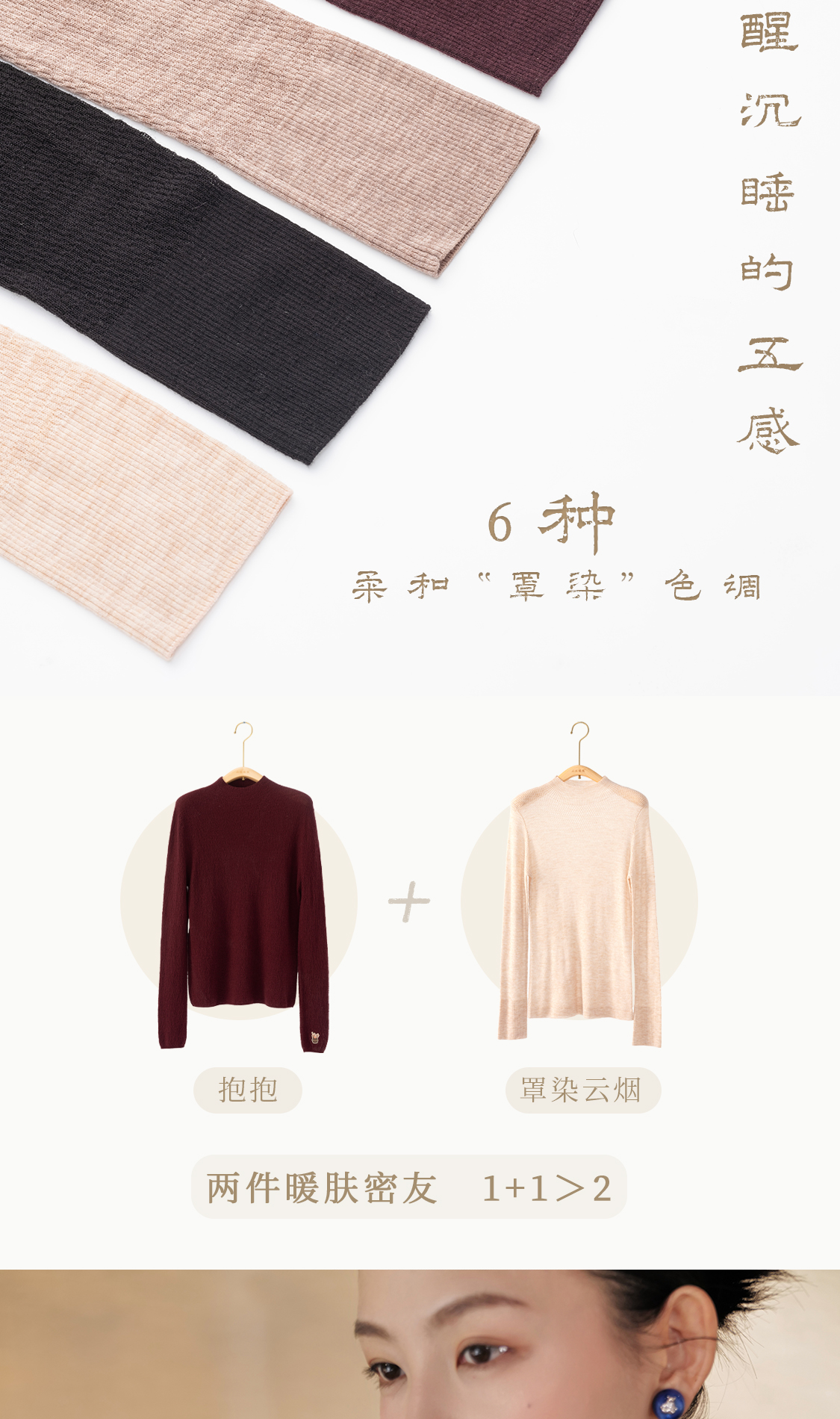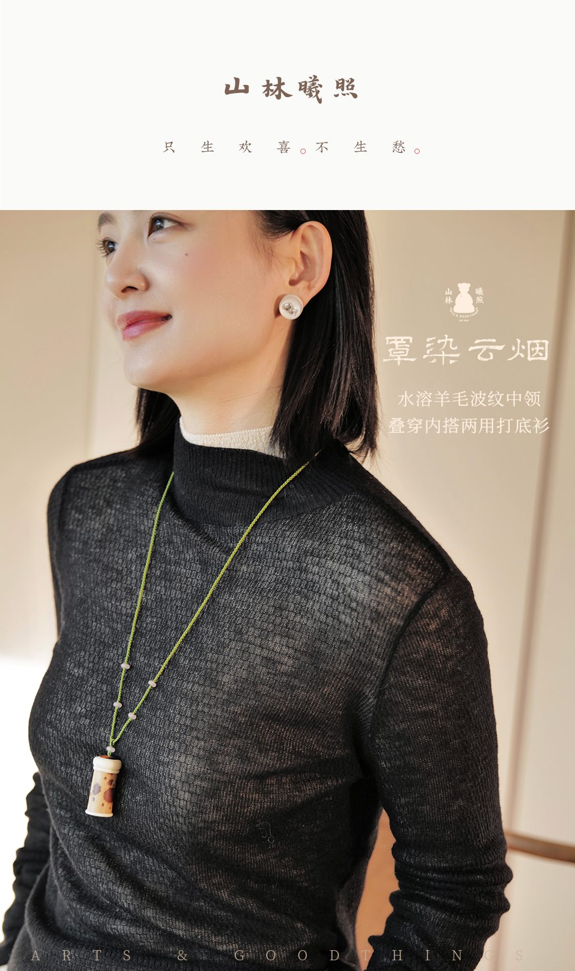 罩染云烟 水溶羊毛波纹中领叠穿内搭两用打底衫 山林曦照