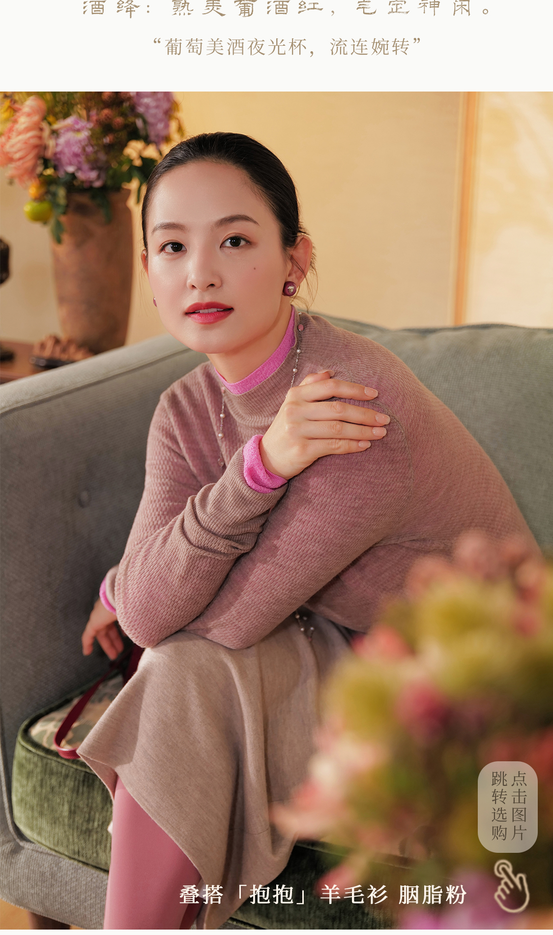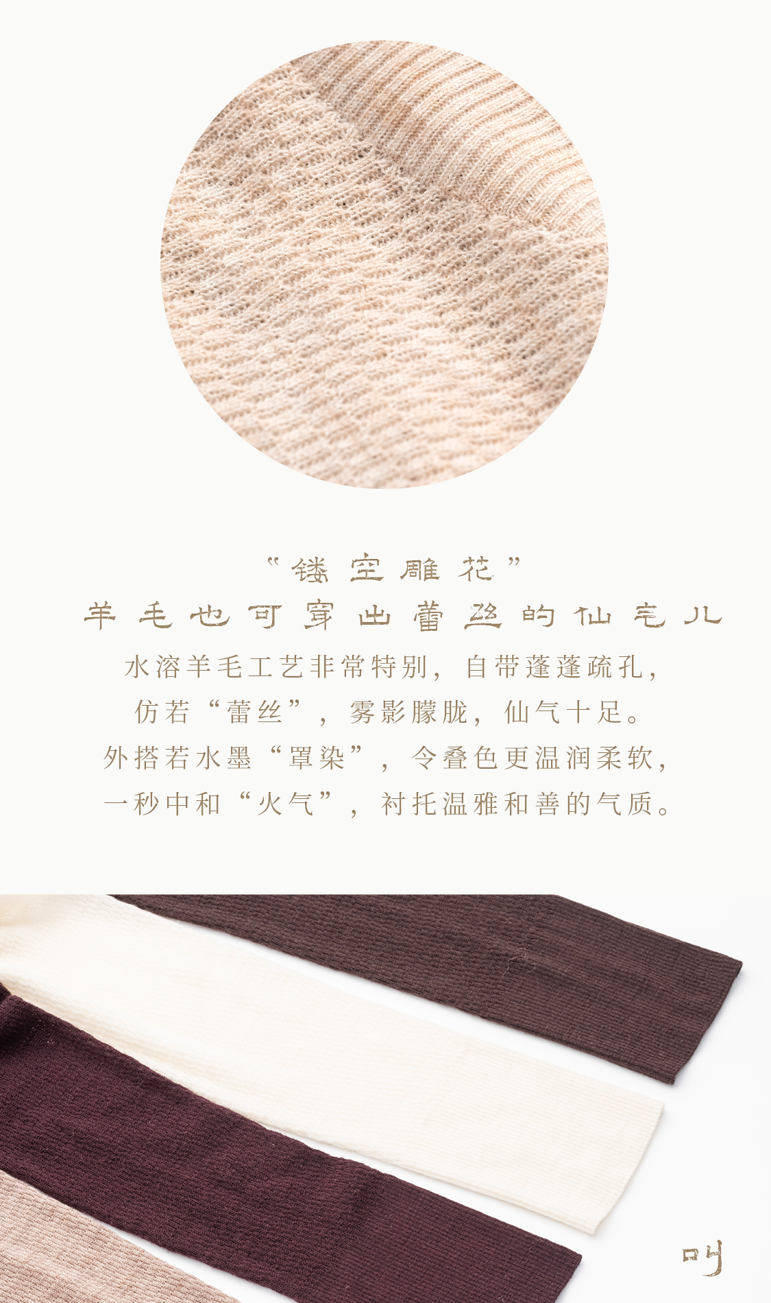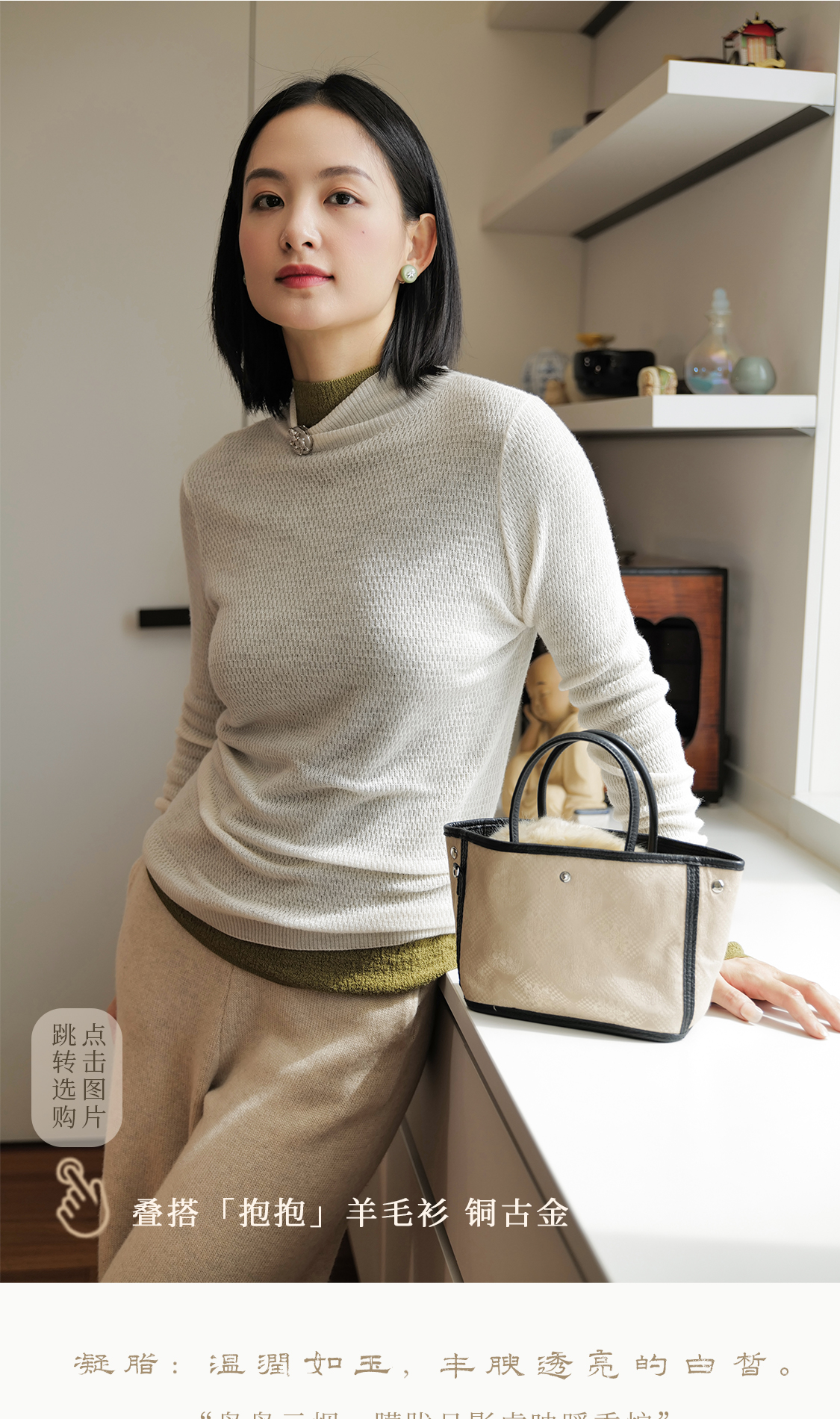 罩染云烟 水溶羊毛波纹中领叠穿内搭两用打底衫 山林曦照