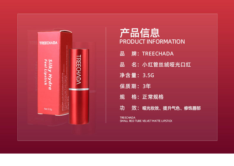【新年专享】泰国TREECHADA红管丝绒哑光口红8色提升气色滋润