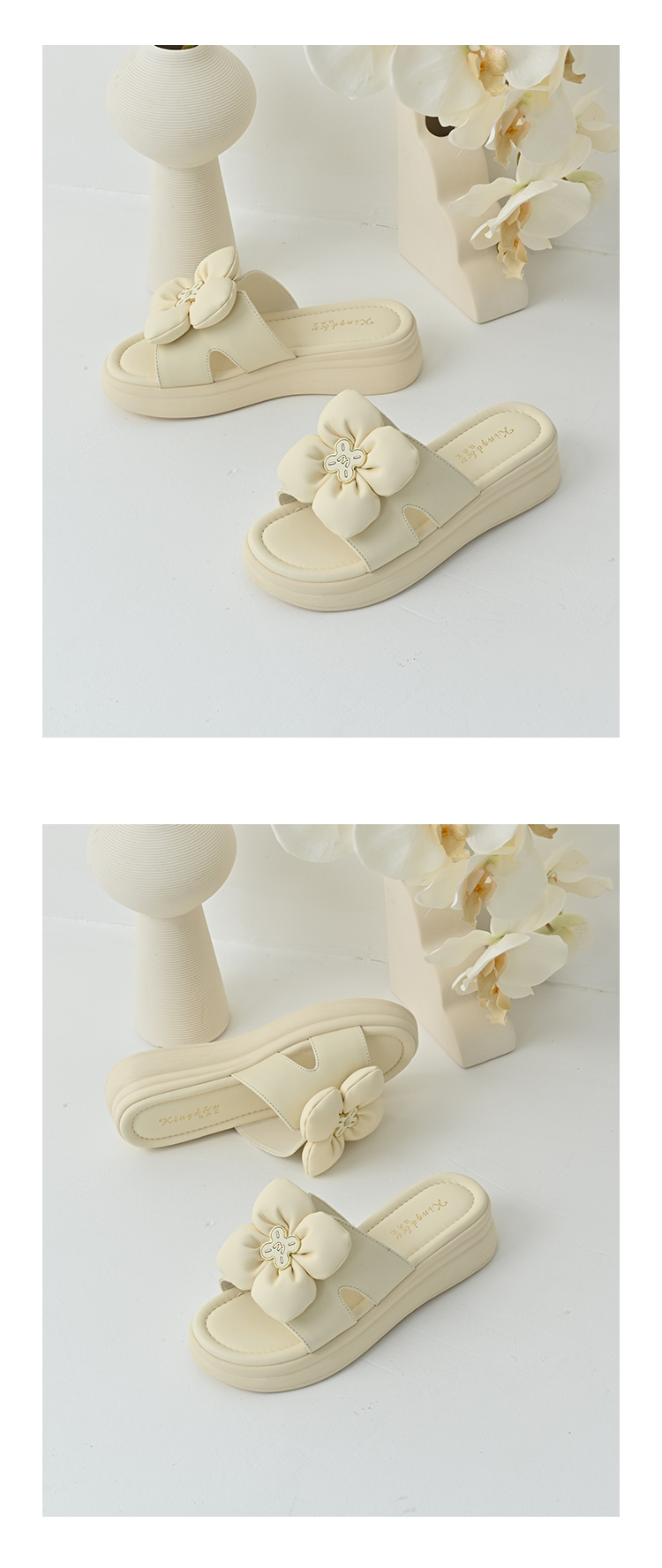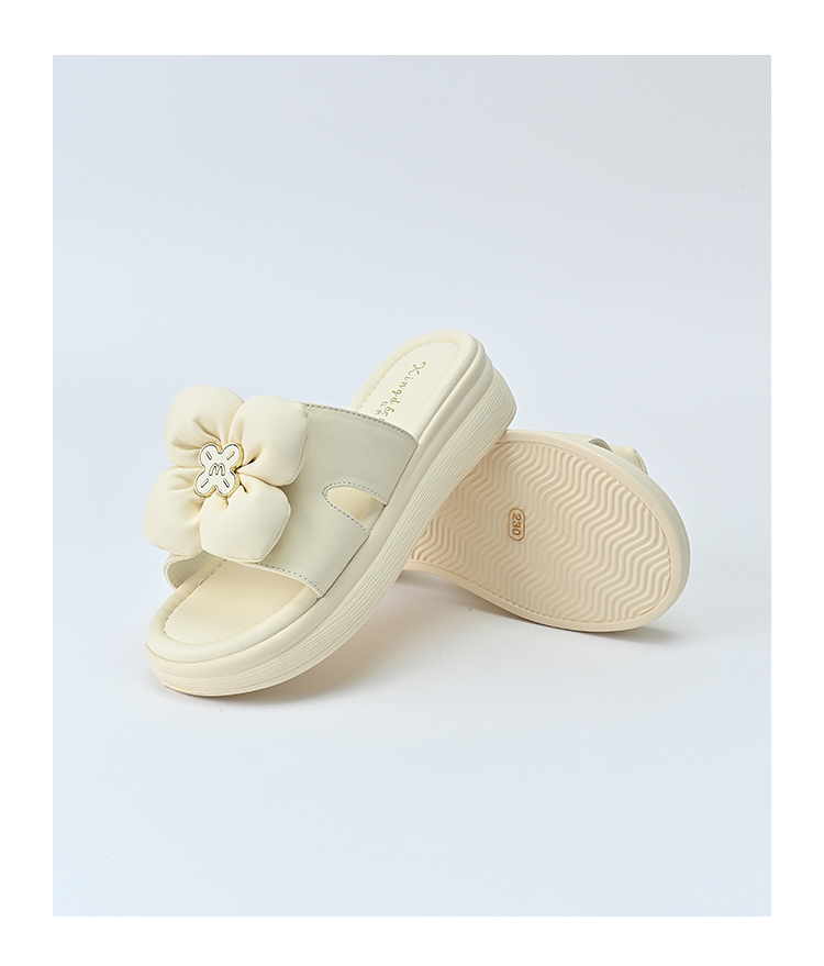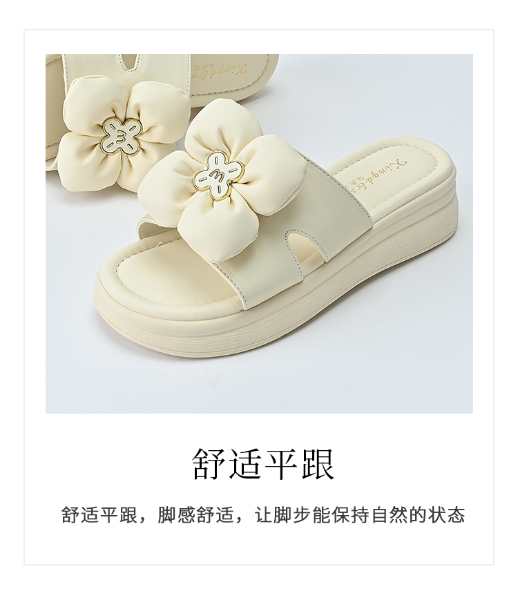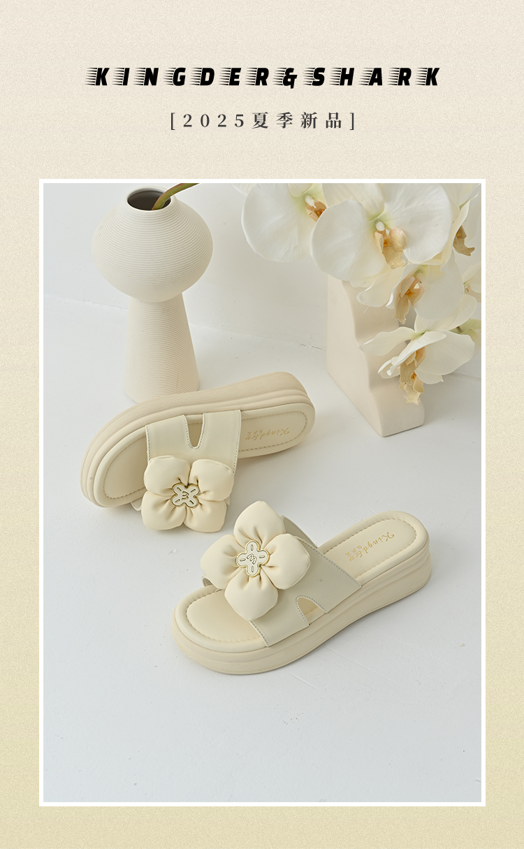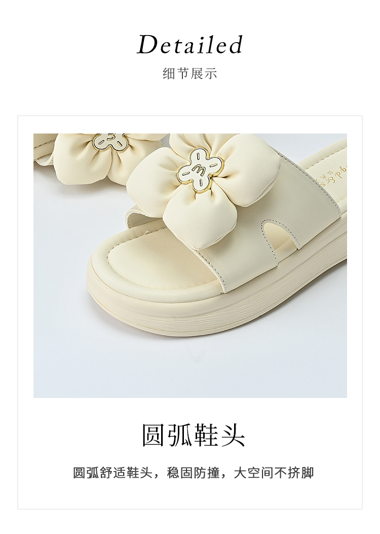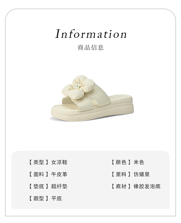 经典鲨2025年夏季牛皮革甜美减龄蝴蝶结平底室内外凉拖鞋女KW296-529021