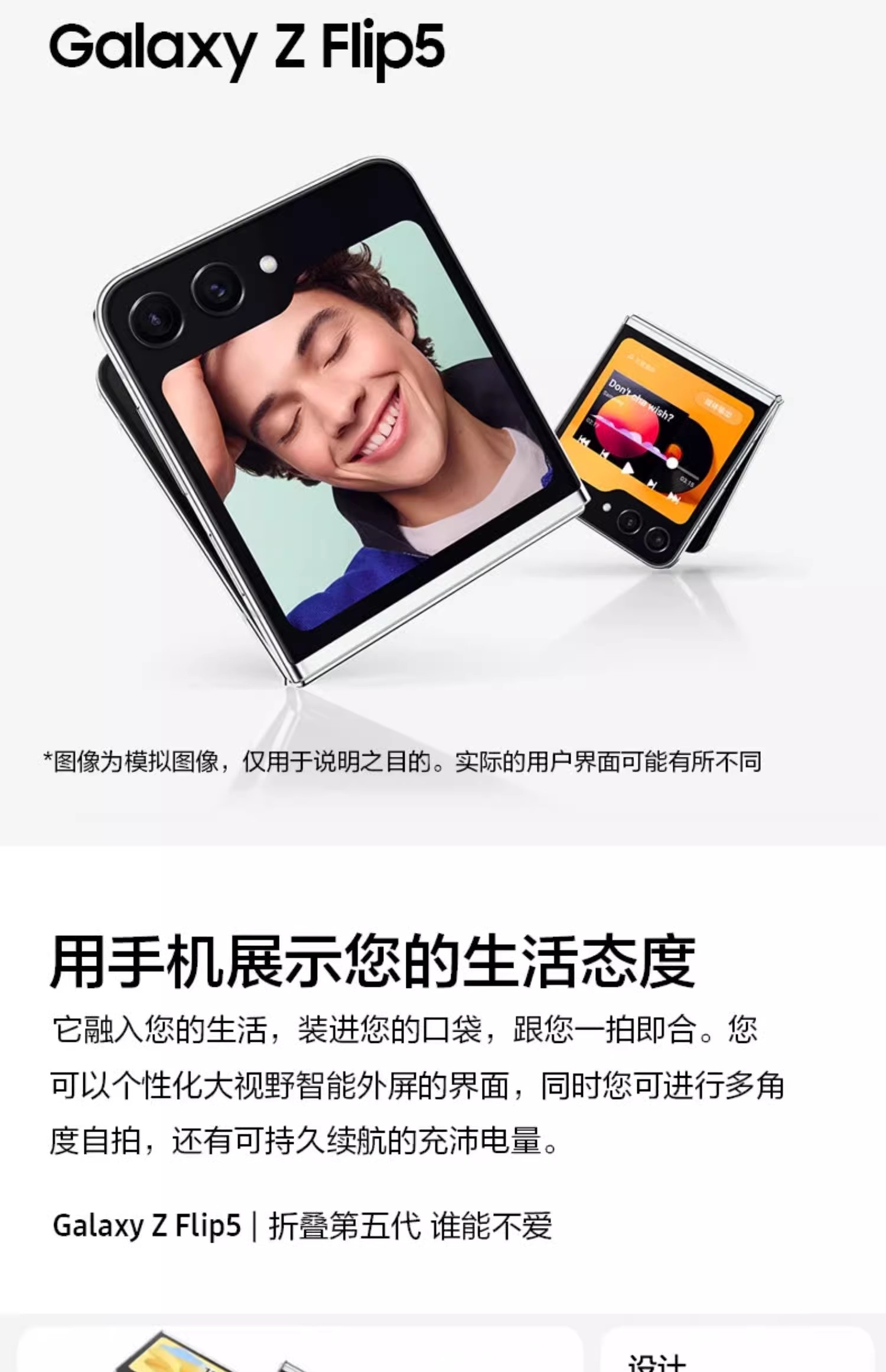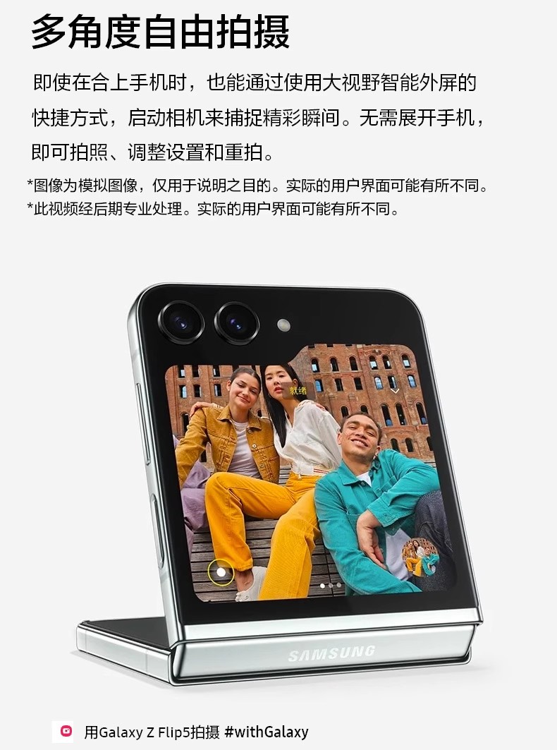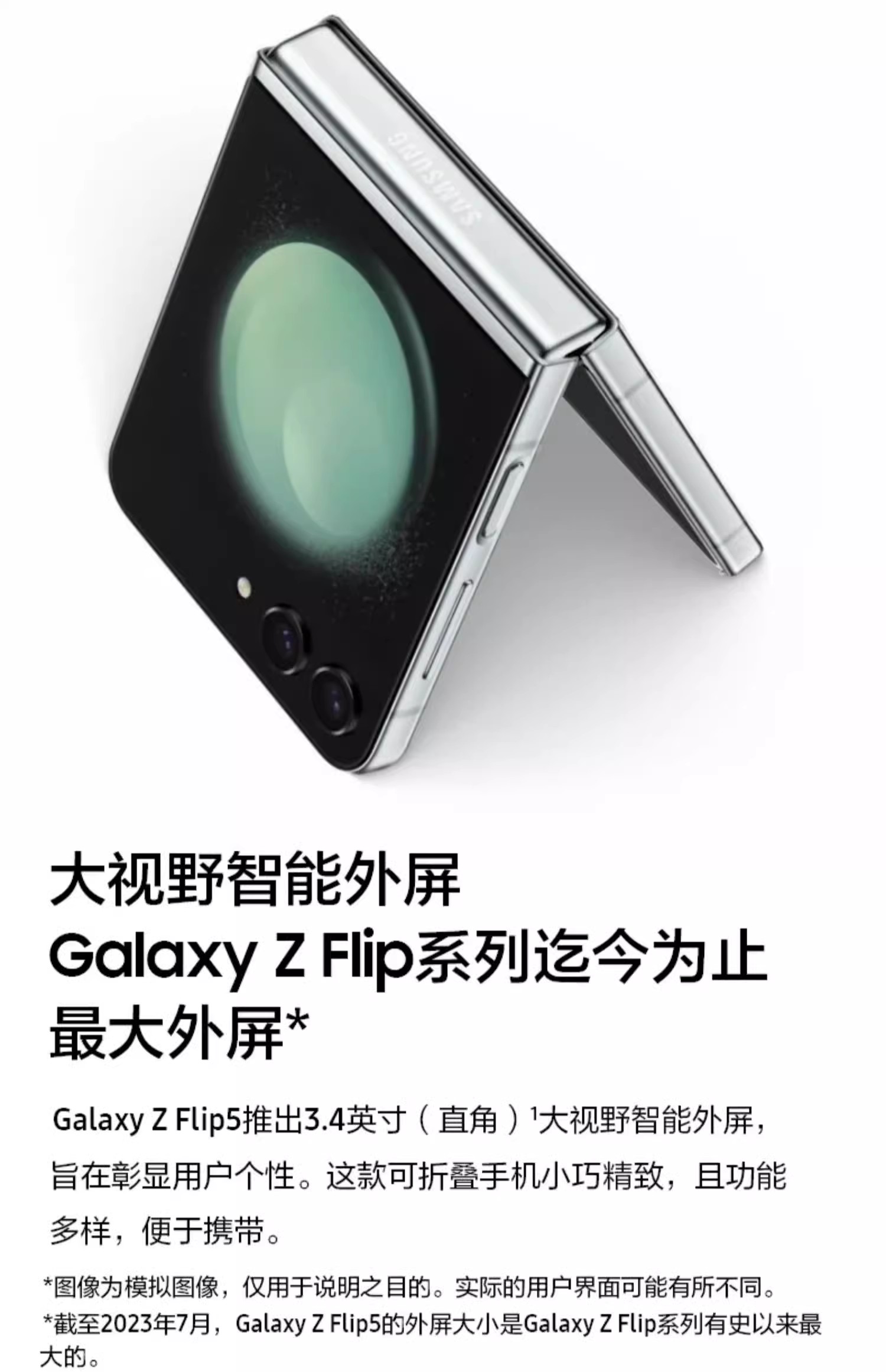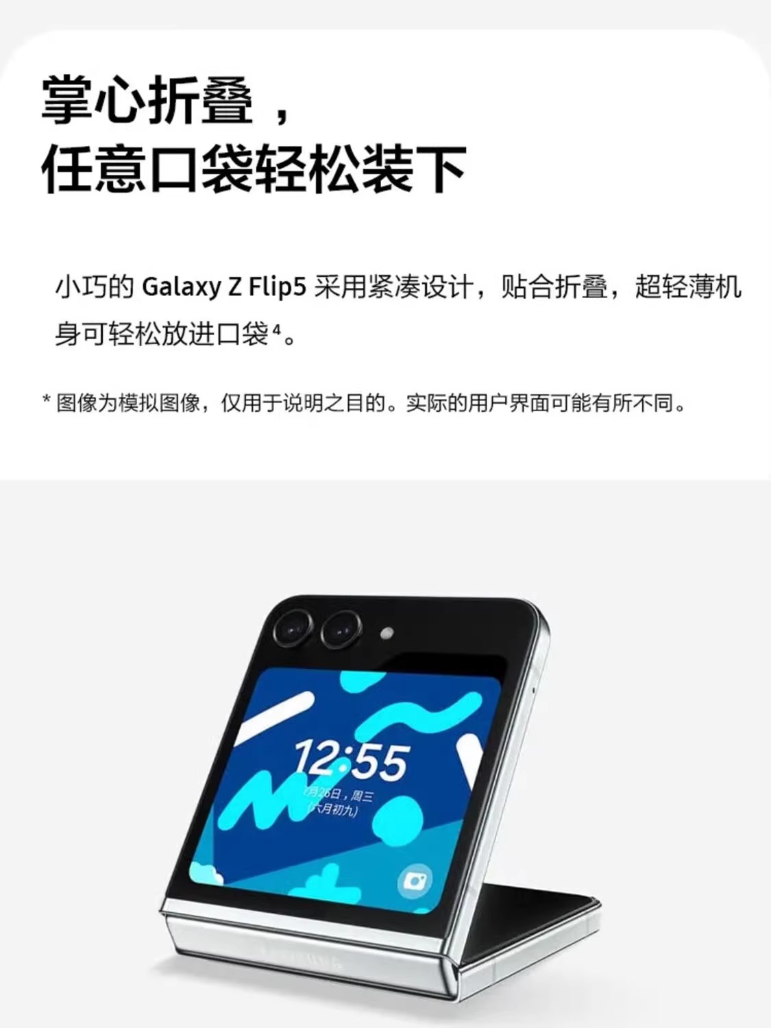 三星 SAMSUNG Galaxy Z Flip5 大视野外屏 掌心折叠 5G折叠手机 8GB+256GB