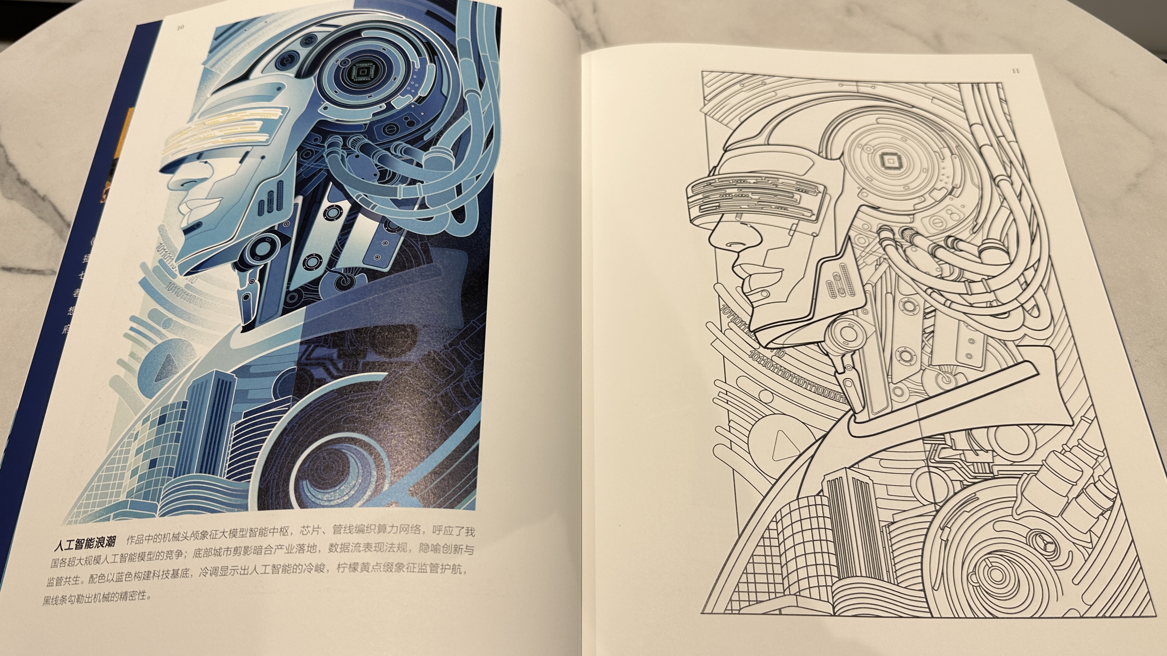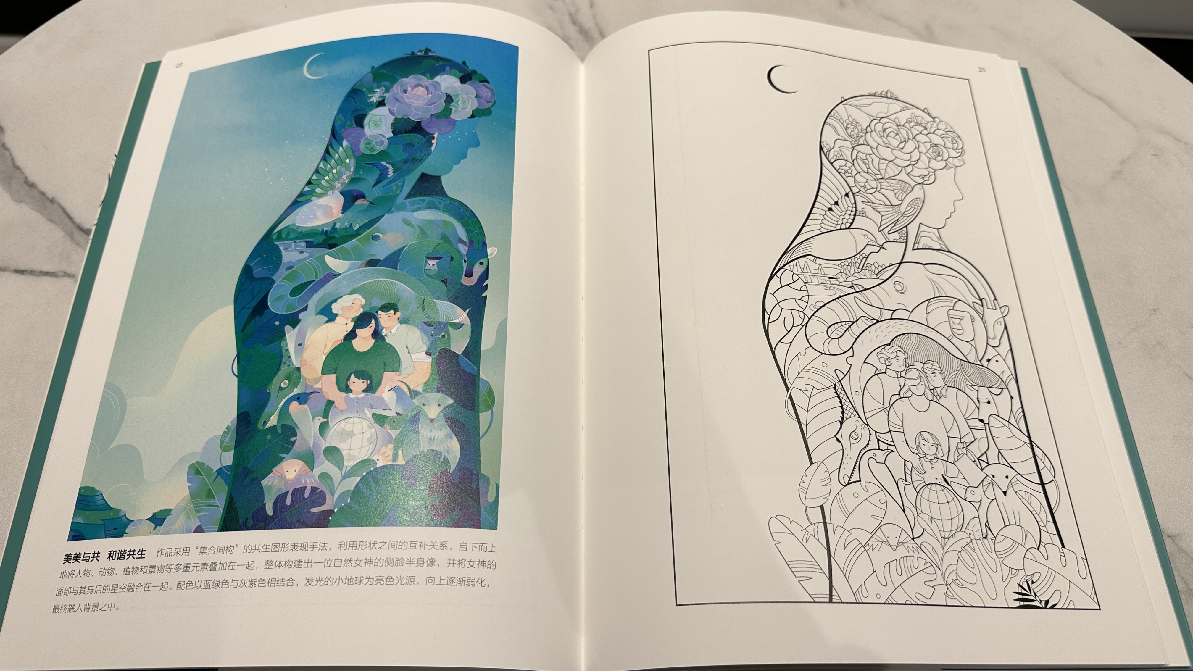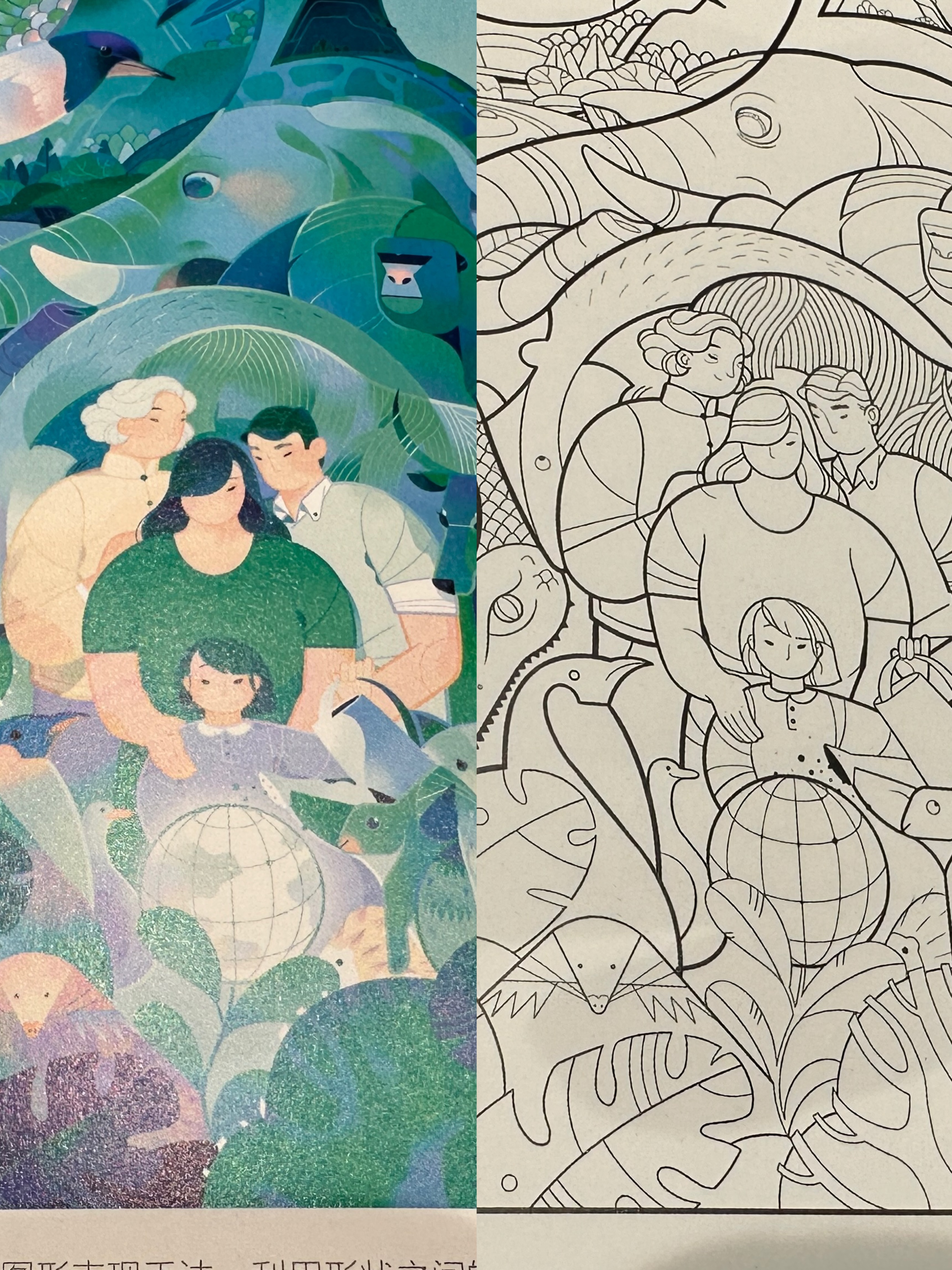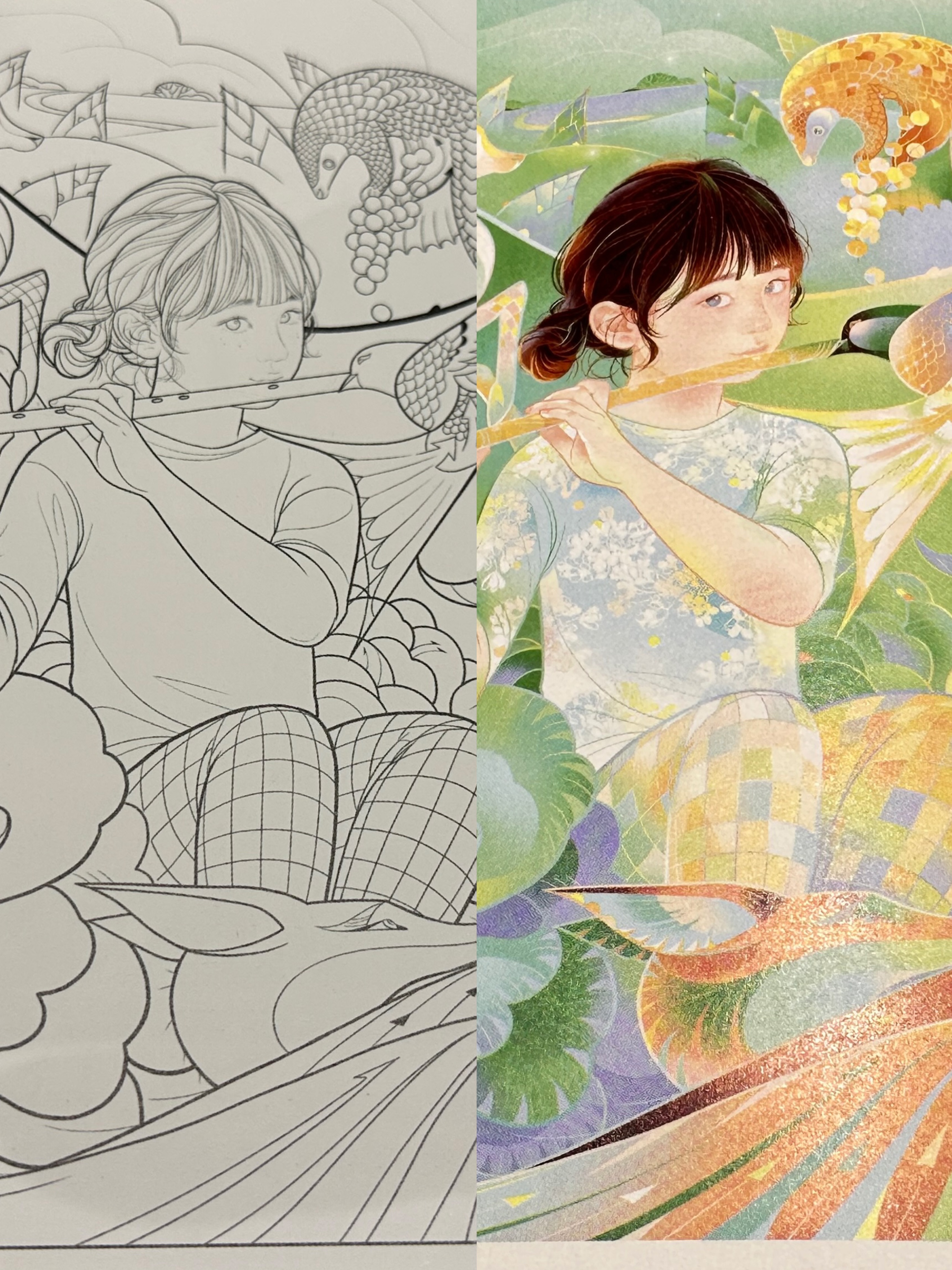 图书采用“左彩稿一右线稿”的对页呈现,为读者临摹上色提供自由创作空间。