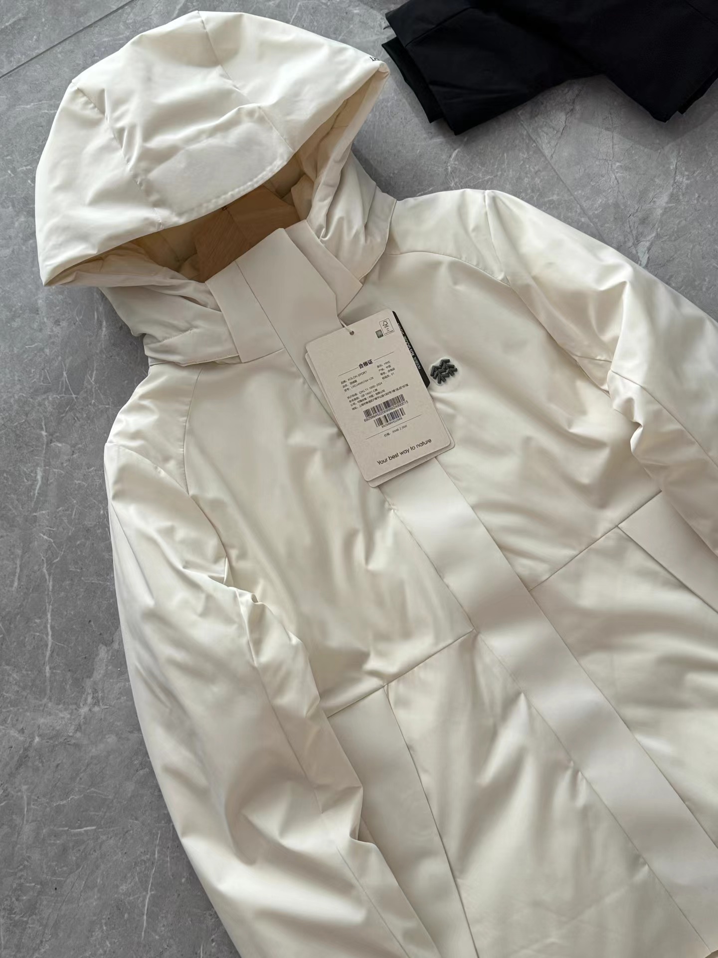 外形是冲锋衣的版型,内里是做了羽绒填充的,整件衣服就是极简时尚的设计,久穿不过时连帽立领款,正肩合身,带有一点自然的收腰效果,上身不会过于宽松,能够恰到好处的彰显女性身材曲线感衣长基本能盖臀,不压身高显腿长,包裹感很暖很蓬松很舒服!就是很有安全感的~能够凸显腰线的羽绒服真的不多见!全身多片式立体拼接剪裁,腋下自然弧度,不经意间刻画身材曲线!关键是包容不紧勒!不影响整体的穿着舒适度!原版的魅力真的是穿一次就忘不了
