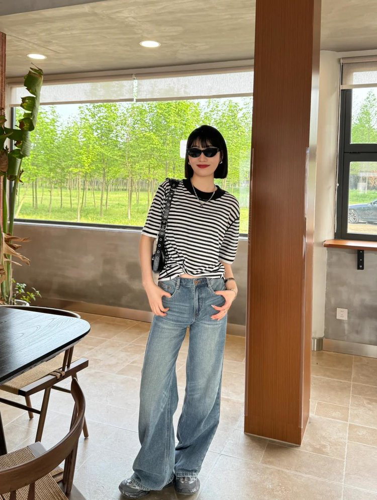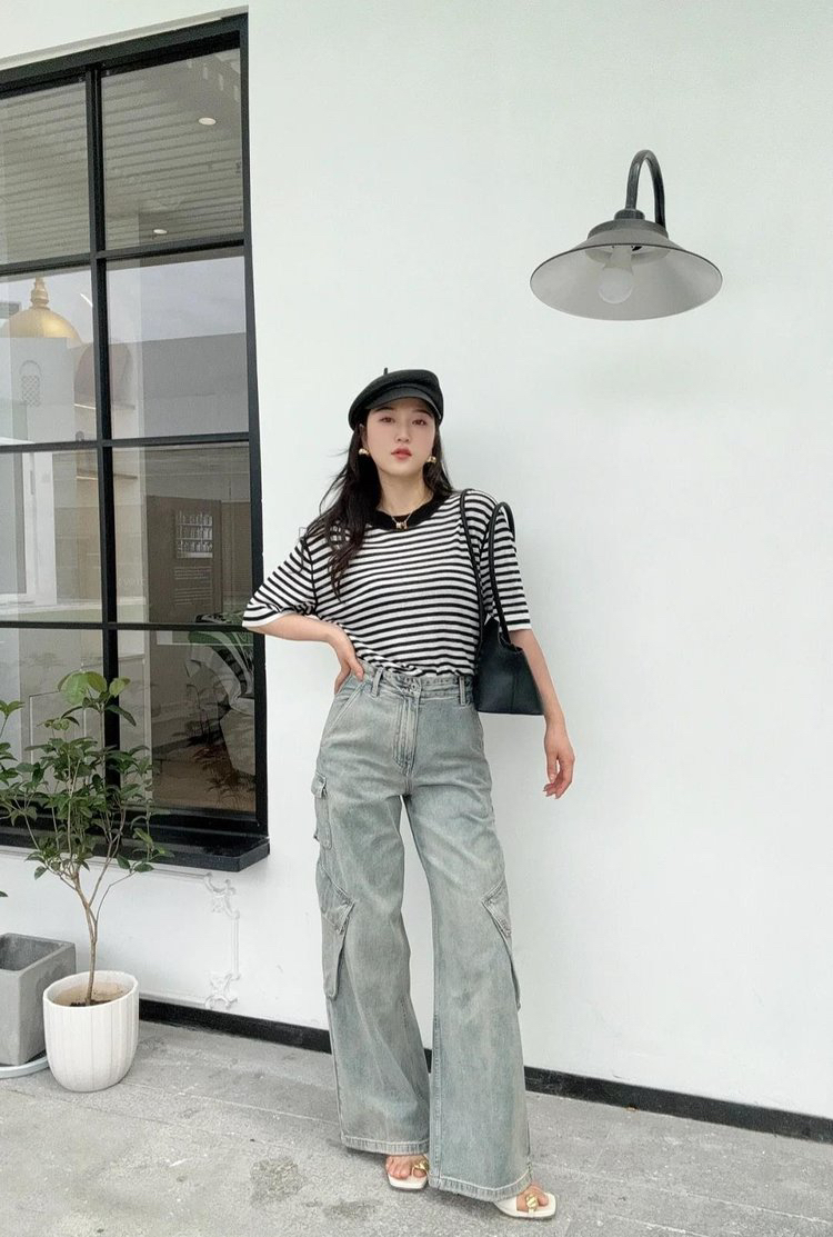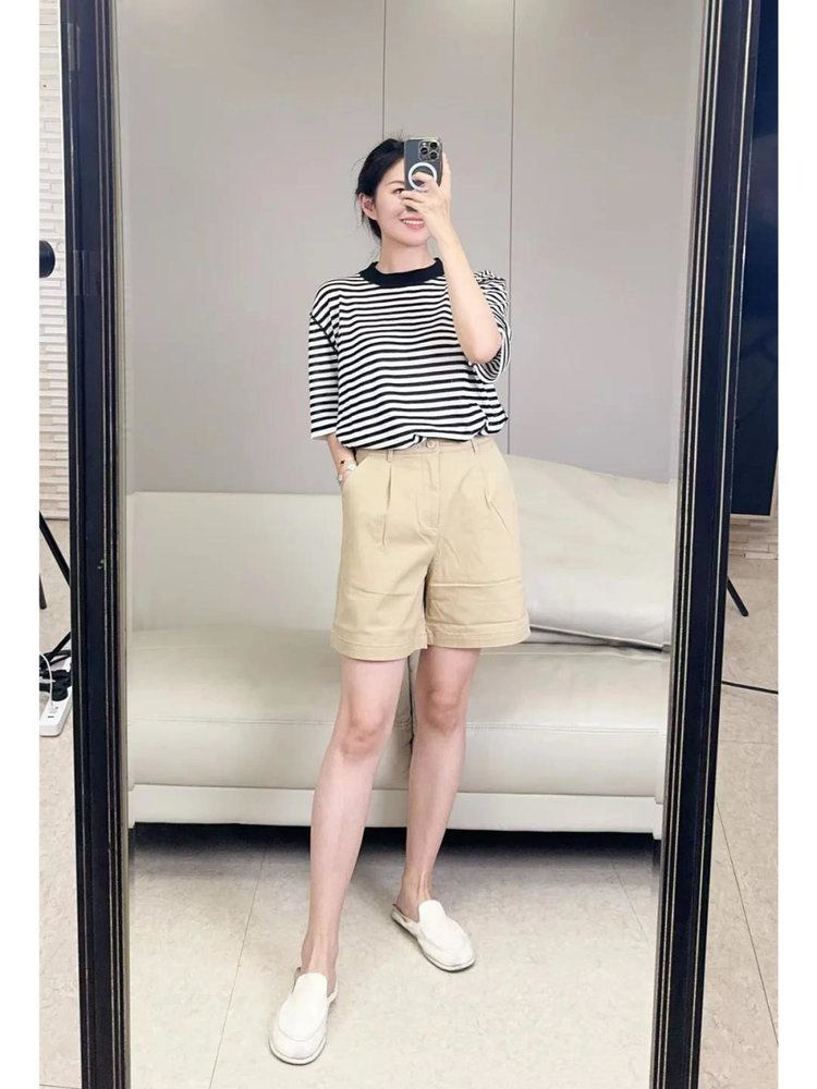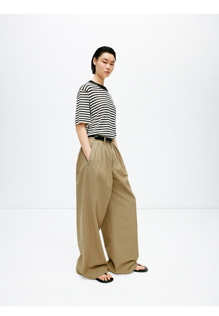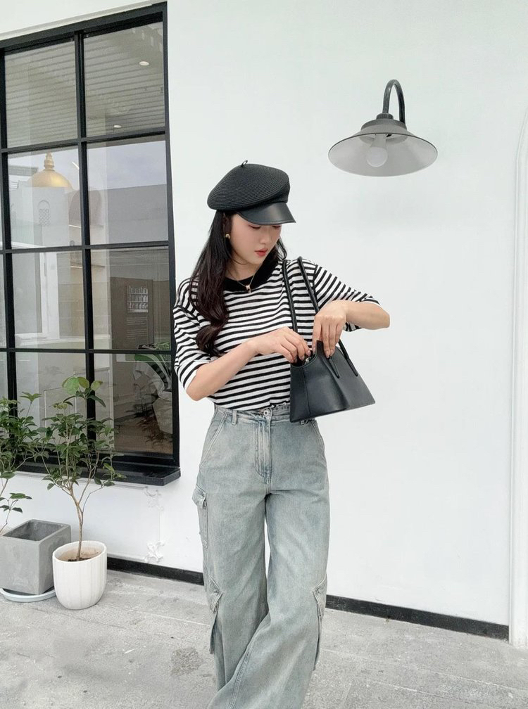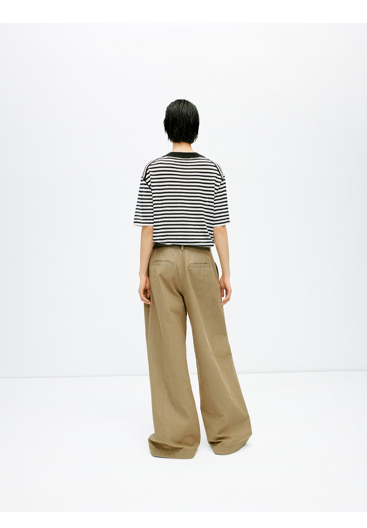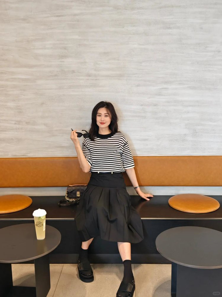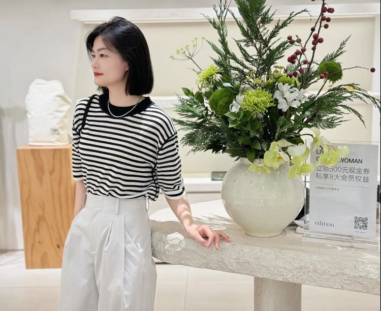 宽松版型针织T恤,既有针织物的柔软,又有T恤的休闲感,经典黑白条纹,简约复古。