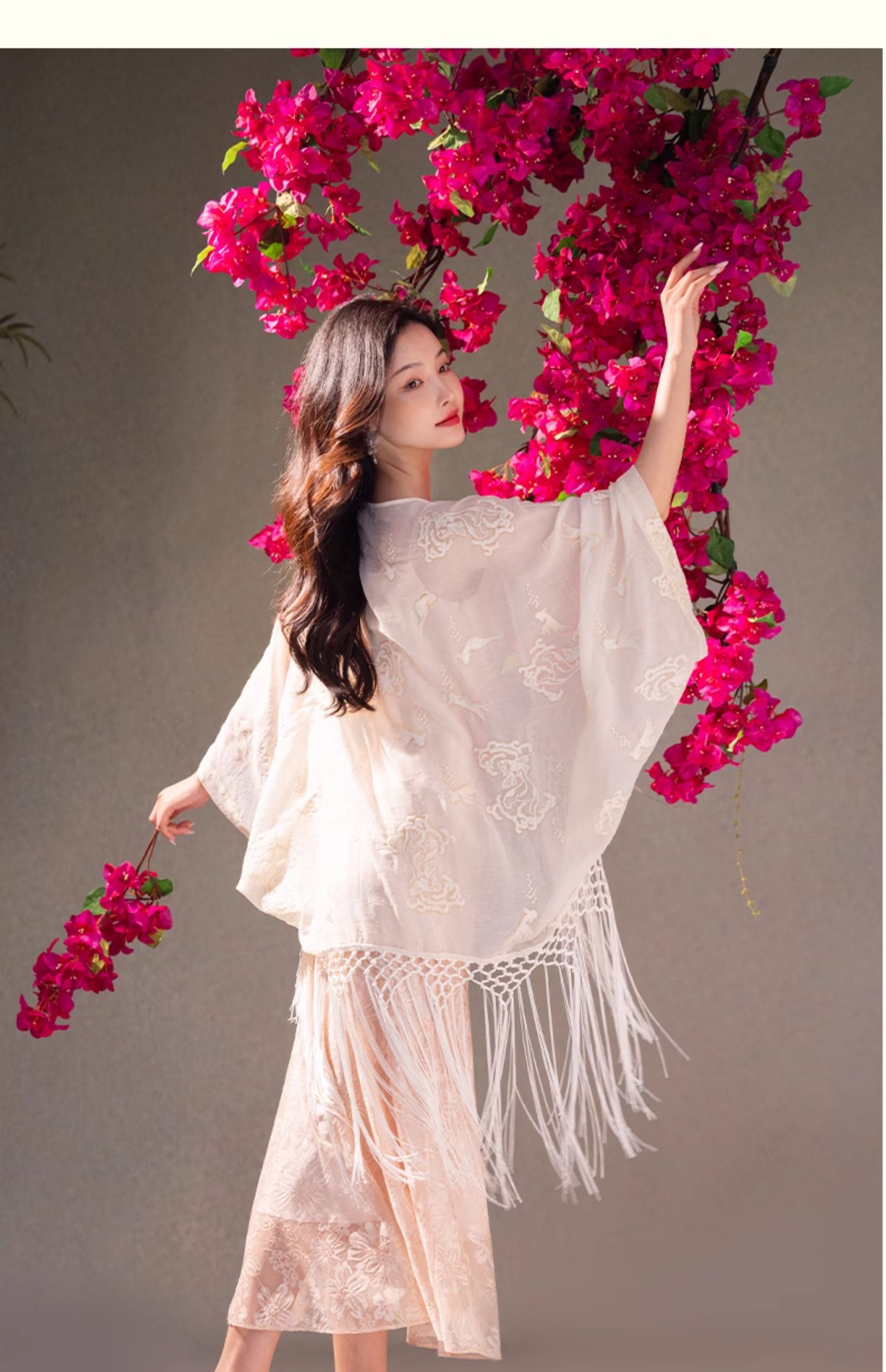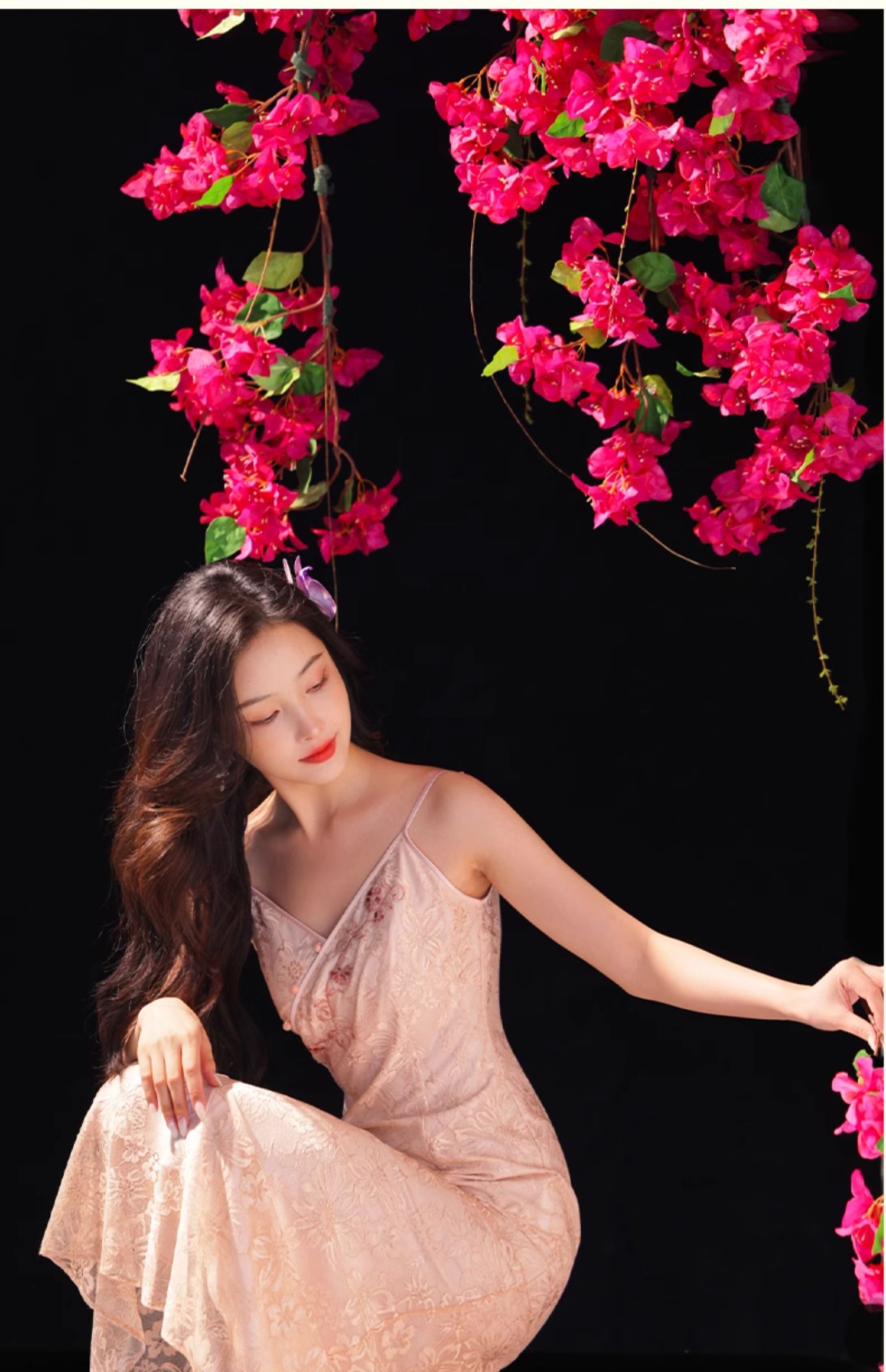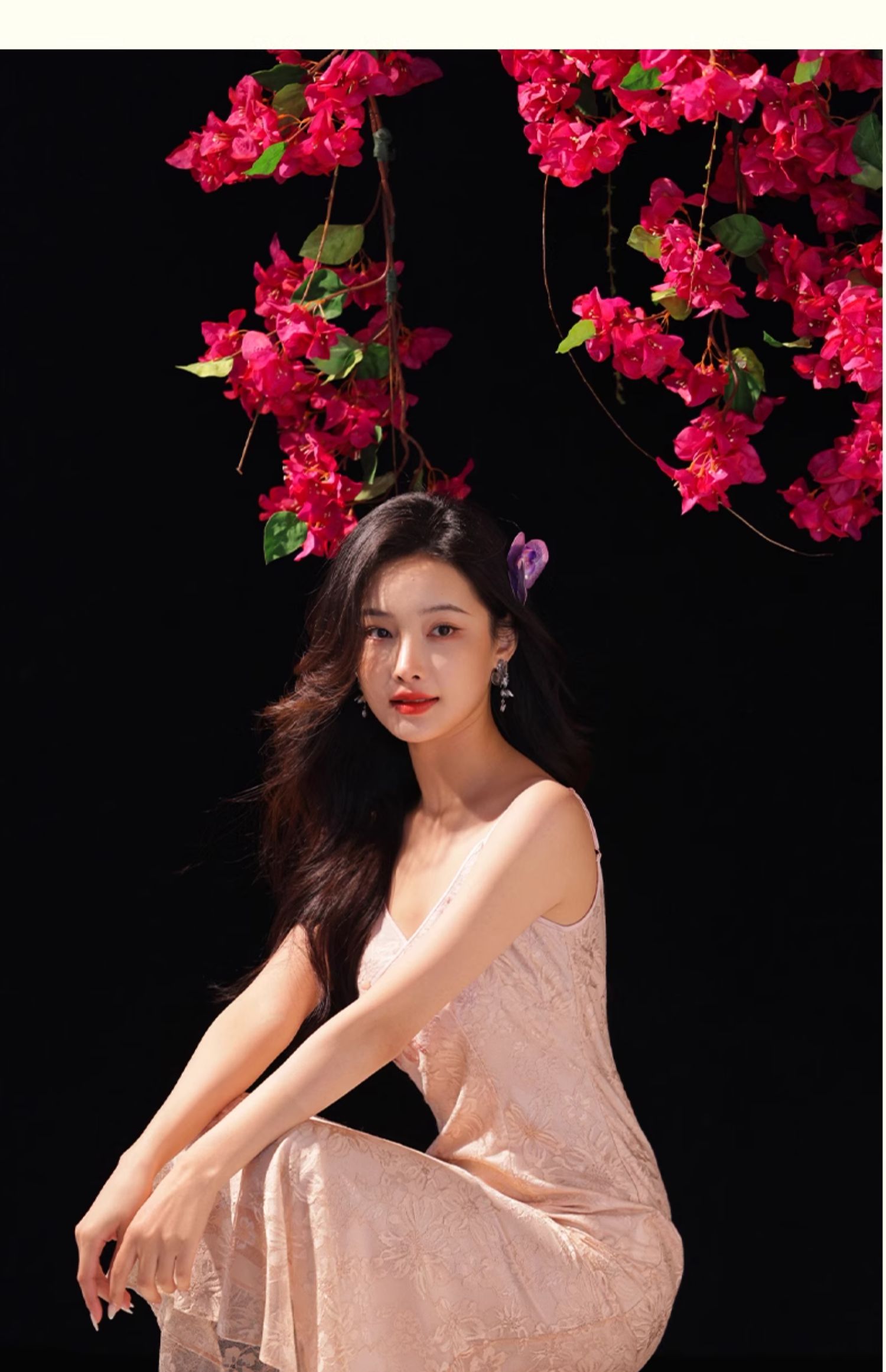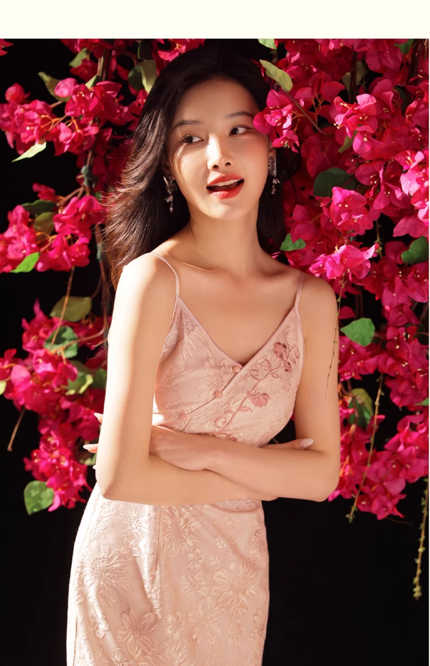 逸红颜妤婉2025夏新款刺绣蕾丝新中式修身显瘦吊带长裙鱼尾连衣裙