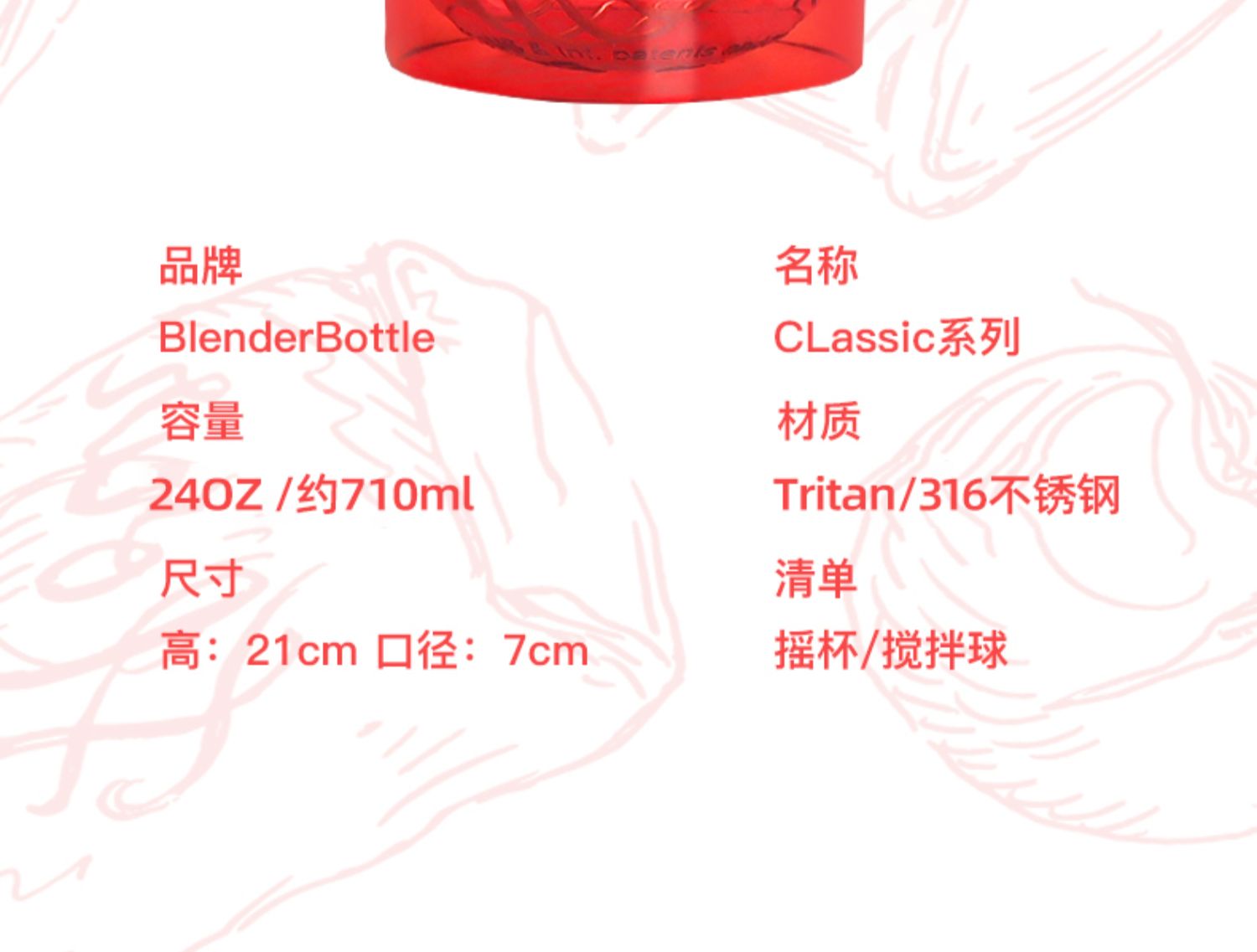 BlenderBottle运动水杯健身杯子 摇摇杯女生蛋白摇粉杯大容量摇杯