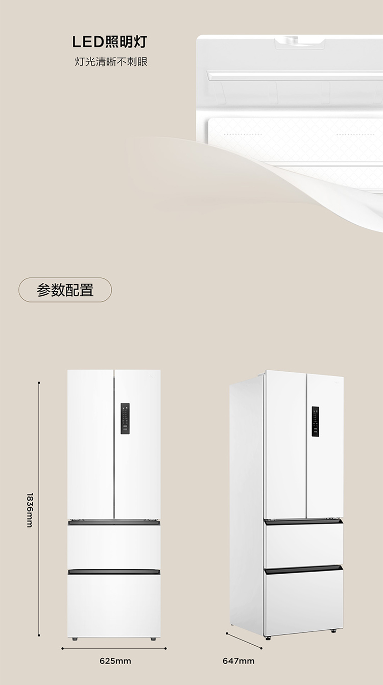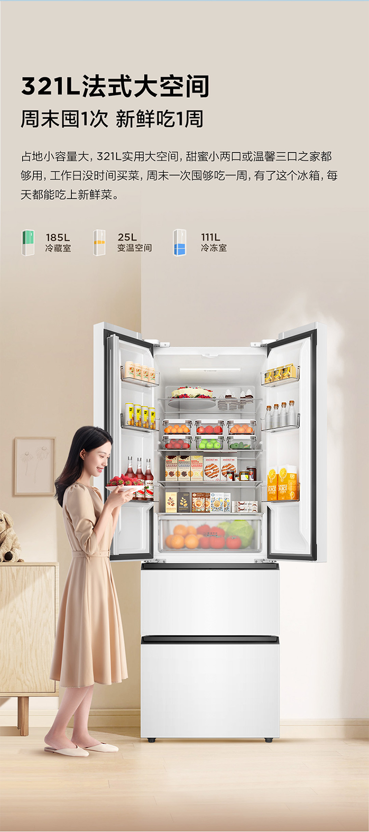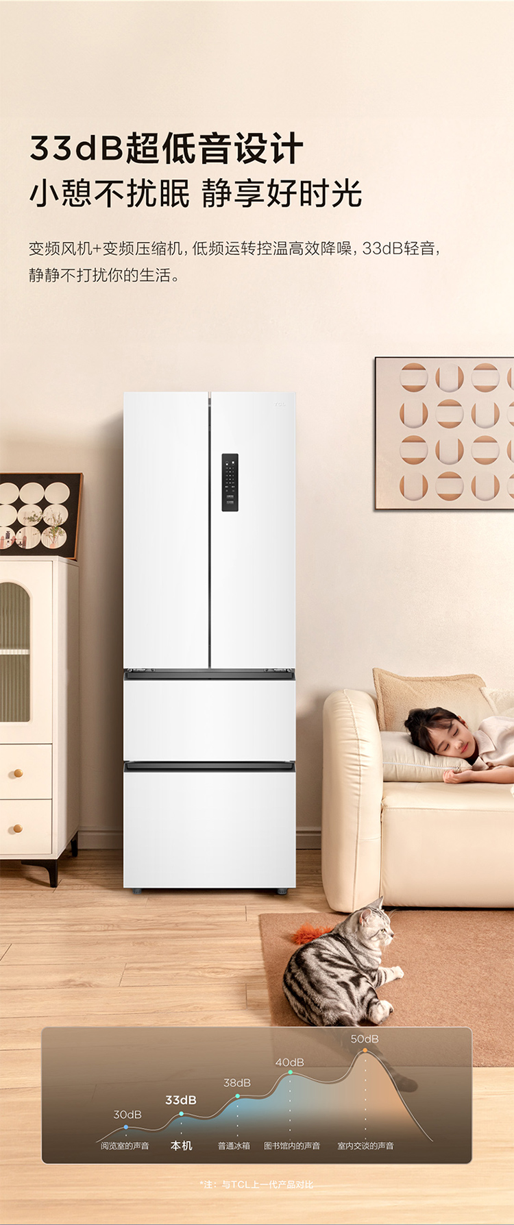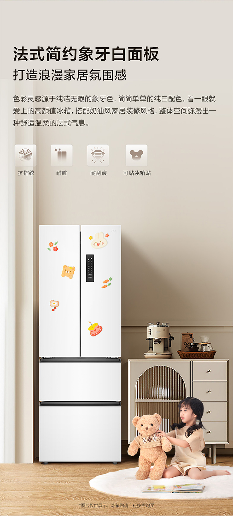TCL 321升法式多门四开门一级能效33分贝低音小户型白色冰箱 R321V5-D(咨询客服送优惠大礼包)