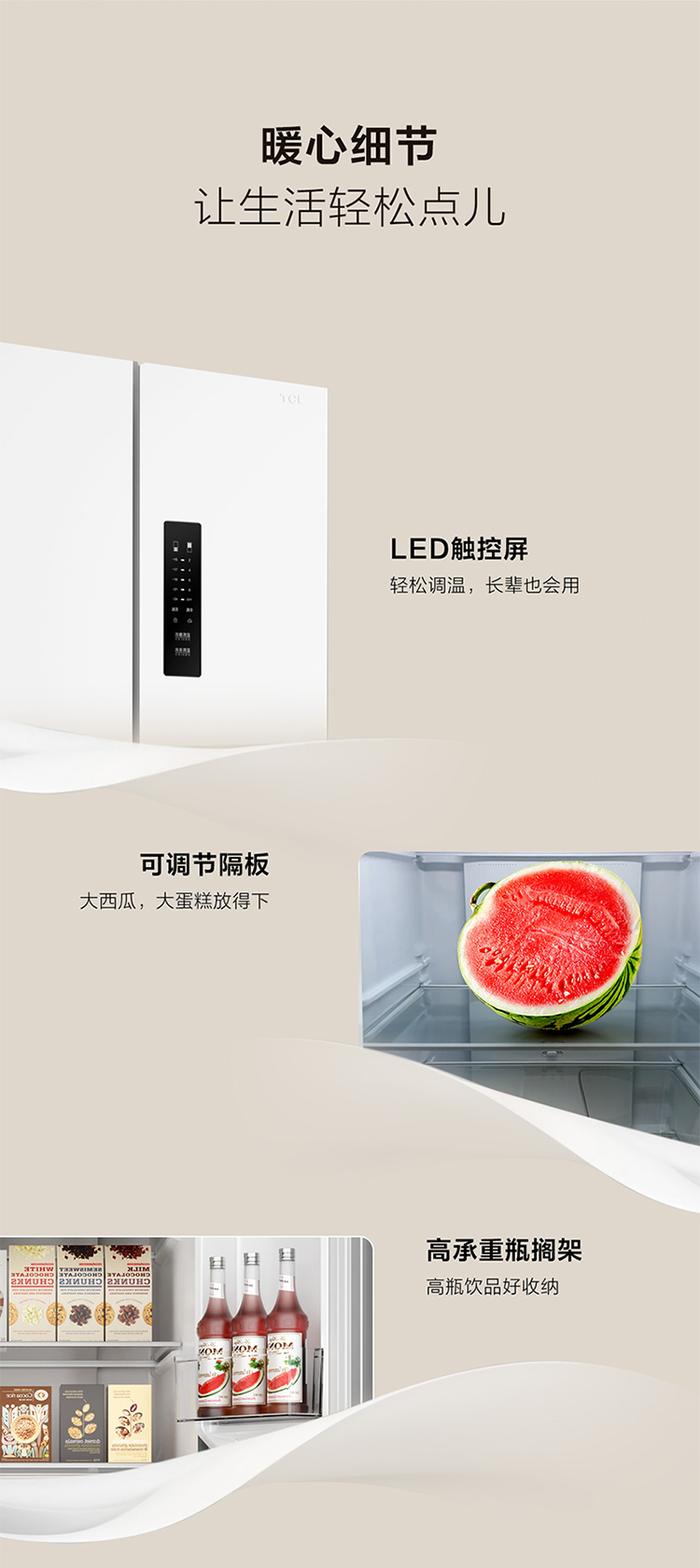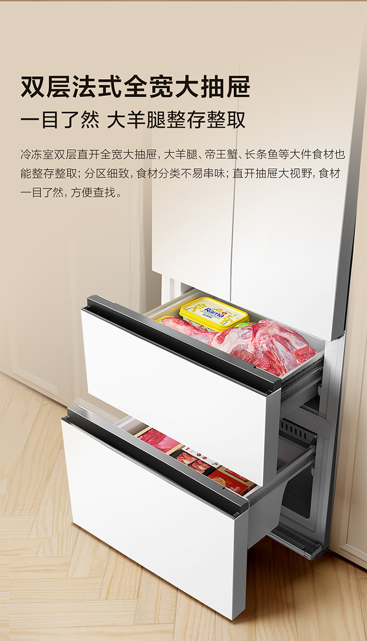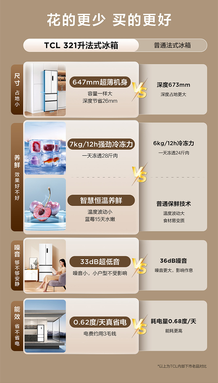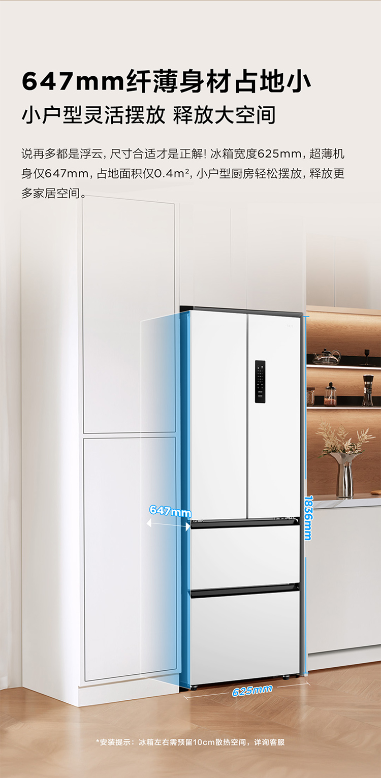 TCL 321升法式多门四开门一级能效33分贝低音小户型白色冰箱 R321V5-D(咨询客服送优惠大礼包)