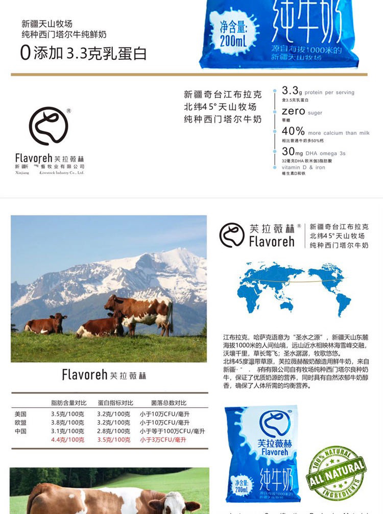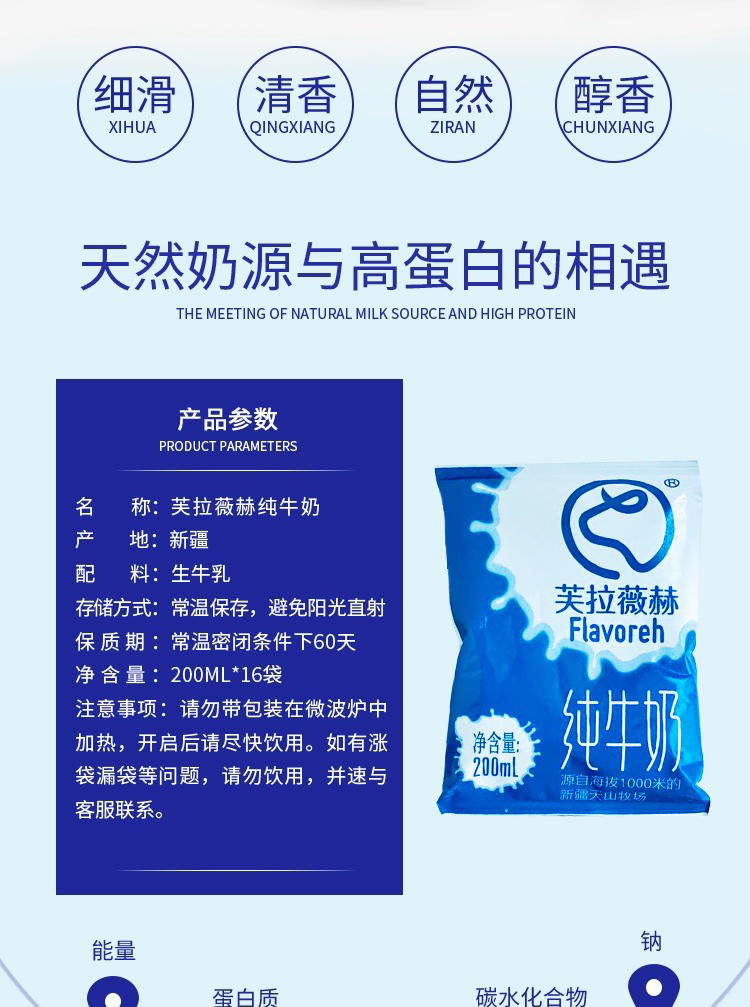 芙拉薇赫牛奶,更高乳蛋白,200毫升*16袋/盒装,发普通快递