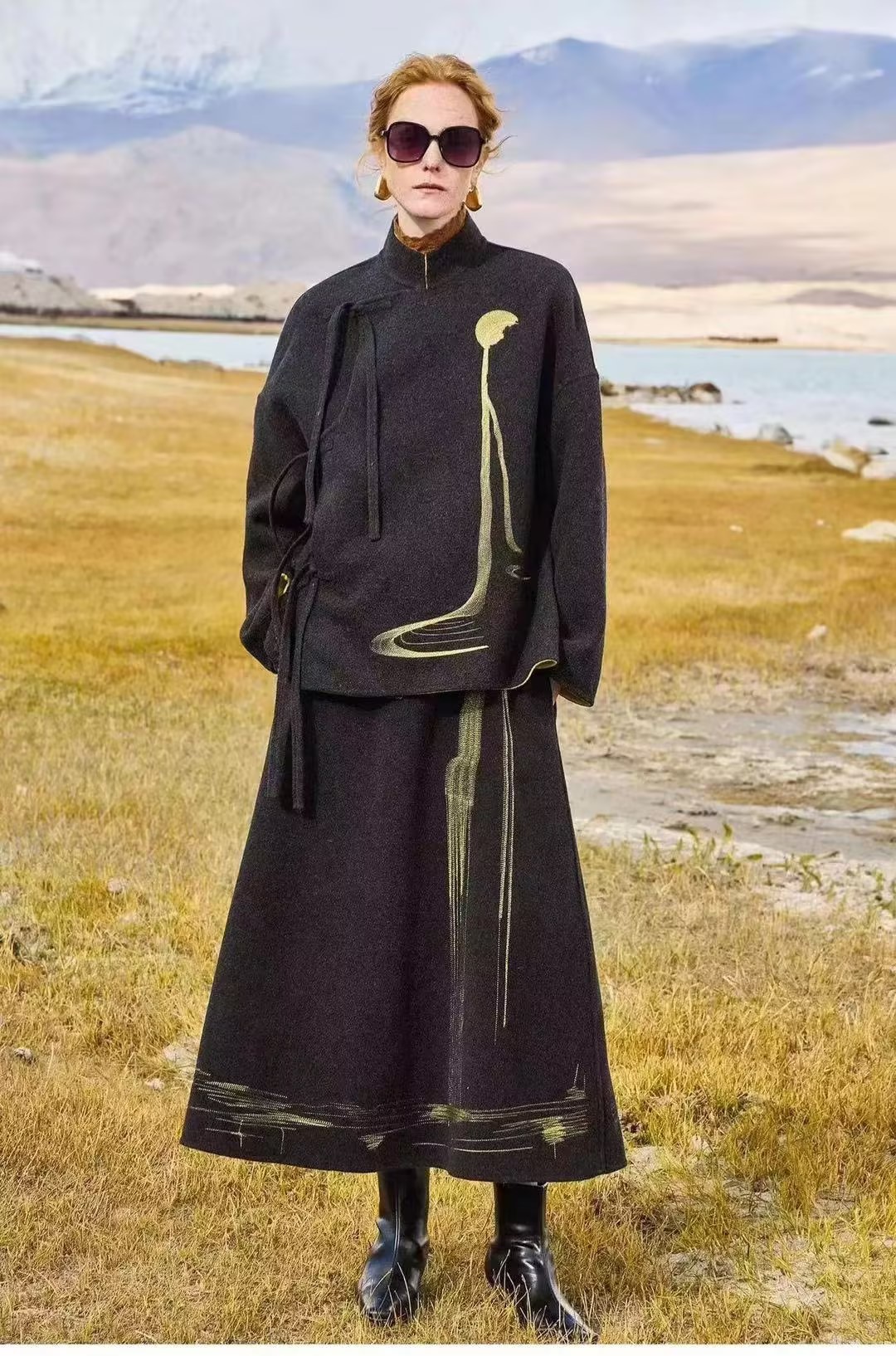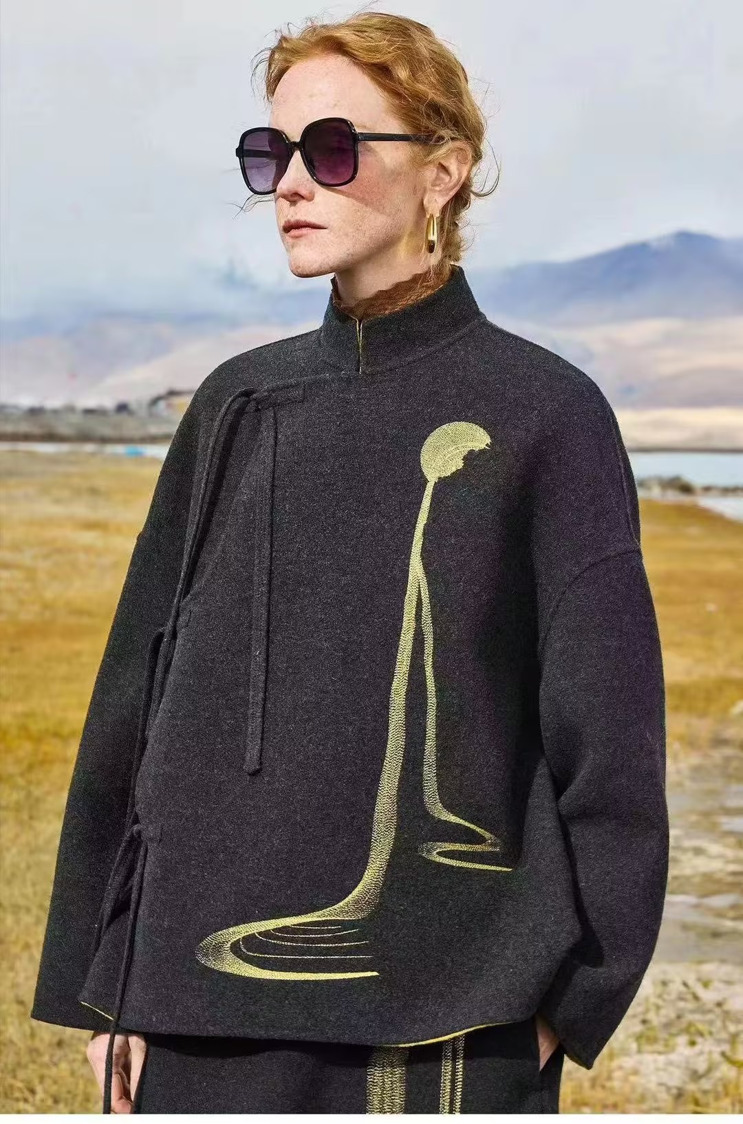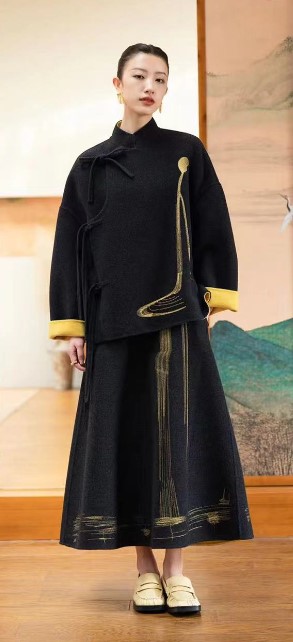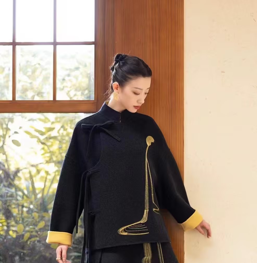 HJ3A68_漆黑色_新中式上衣_四季_国风优雅盘扣刺绣宽松显瘦气质外套_高级女装_BERNIEELEN 伯妮斯茵