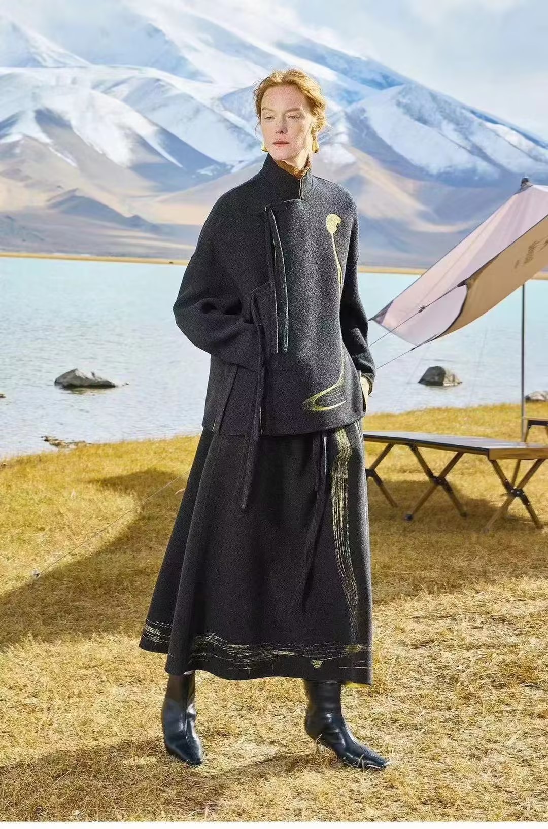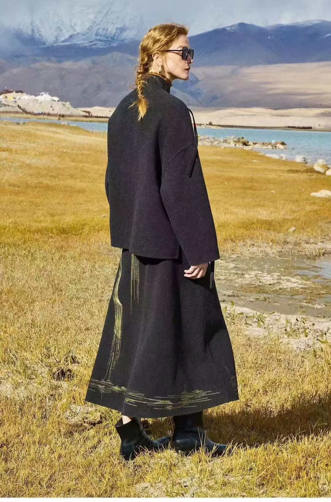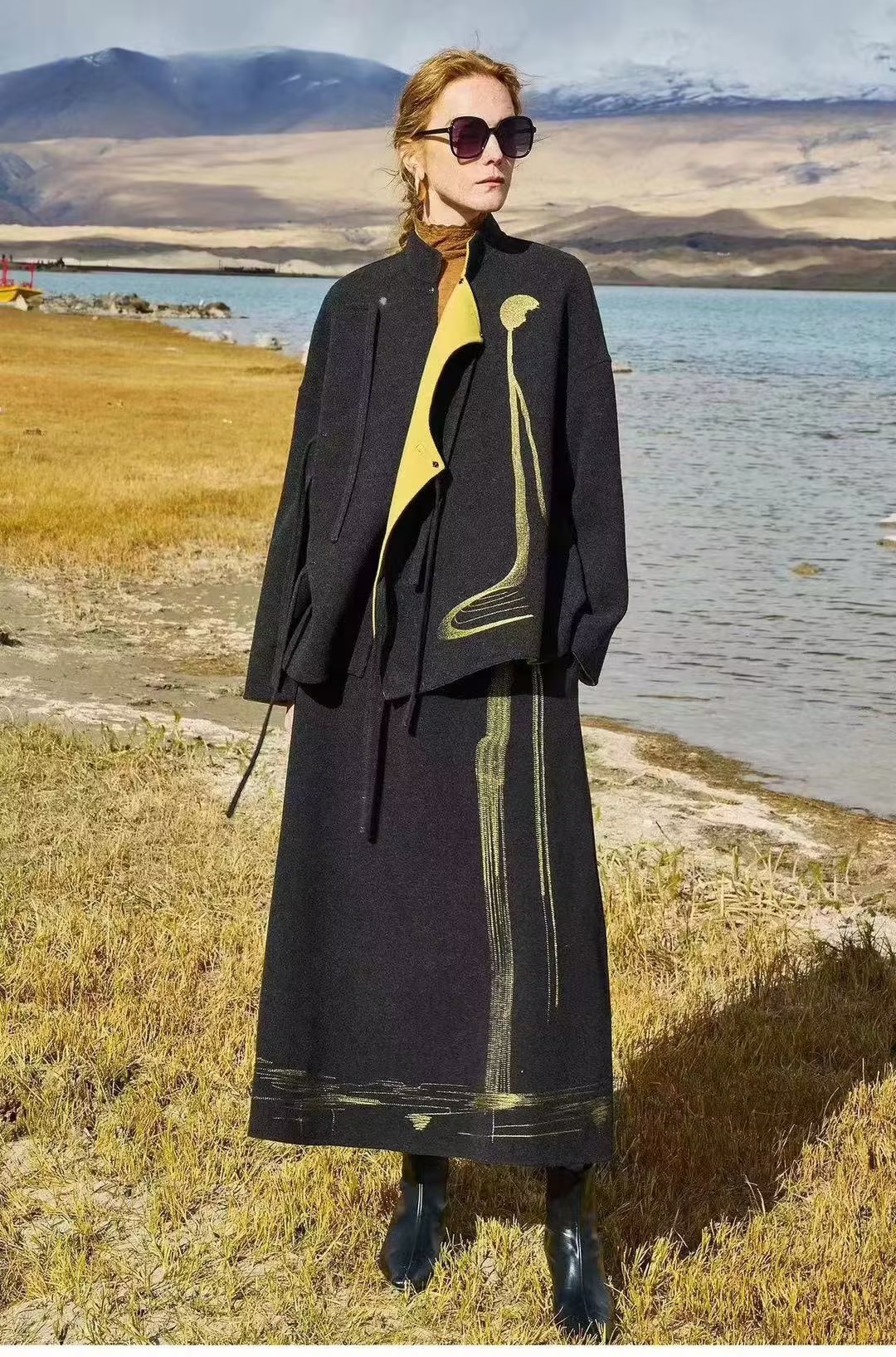 HJ3A68_漆黑色_新中式上衣_四季_国风优雅盘扣刺绣宽松显瘦气质外套_高级女装_BERNIEELEN 伯妮斯茵