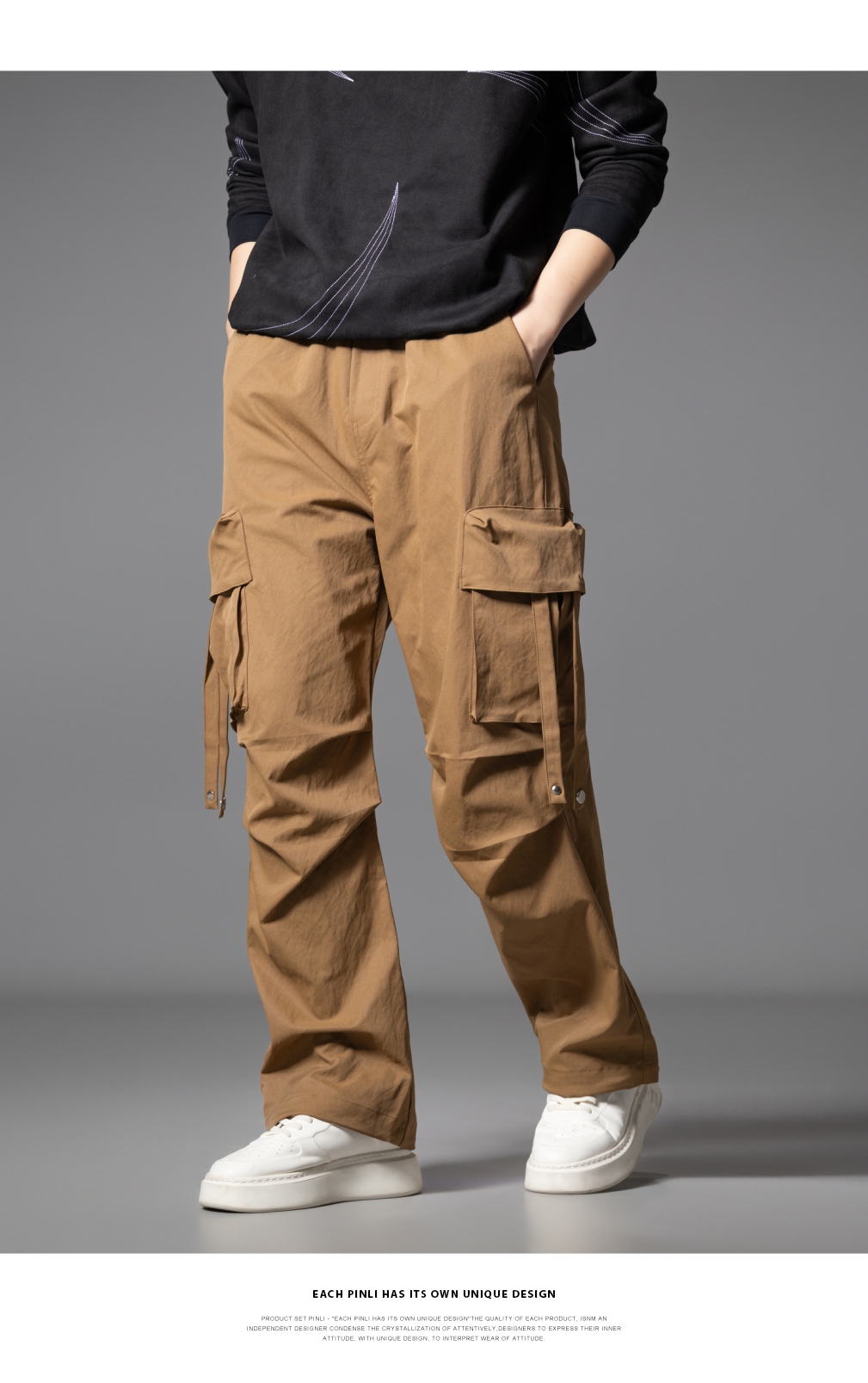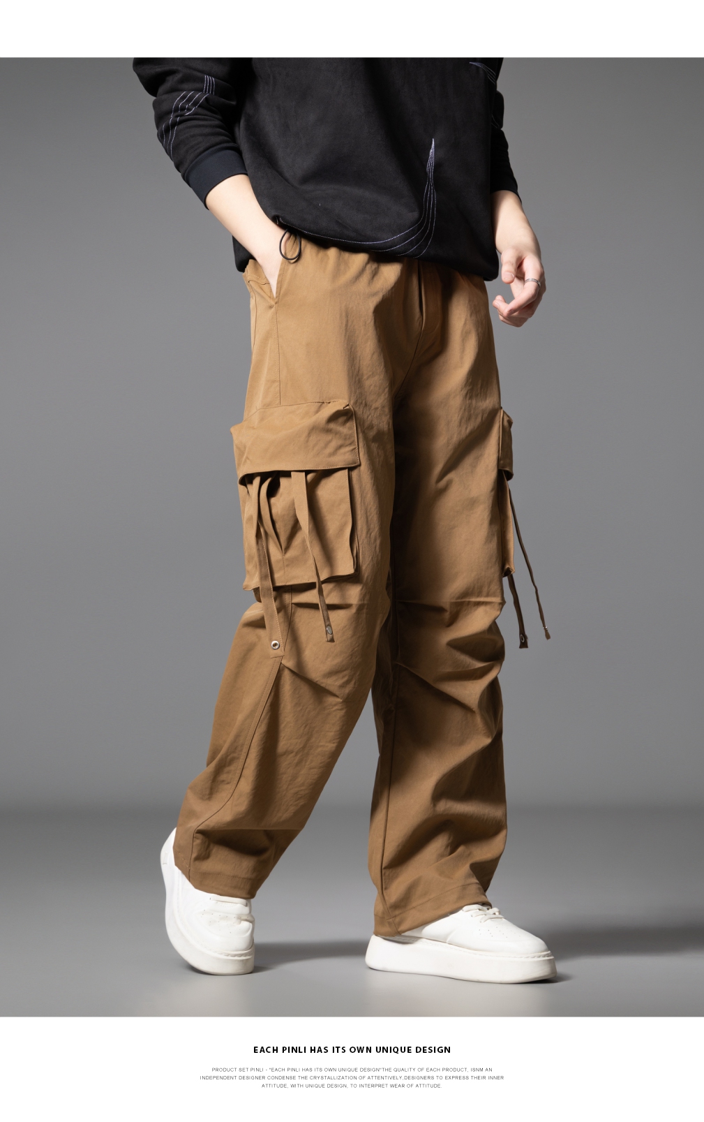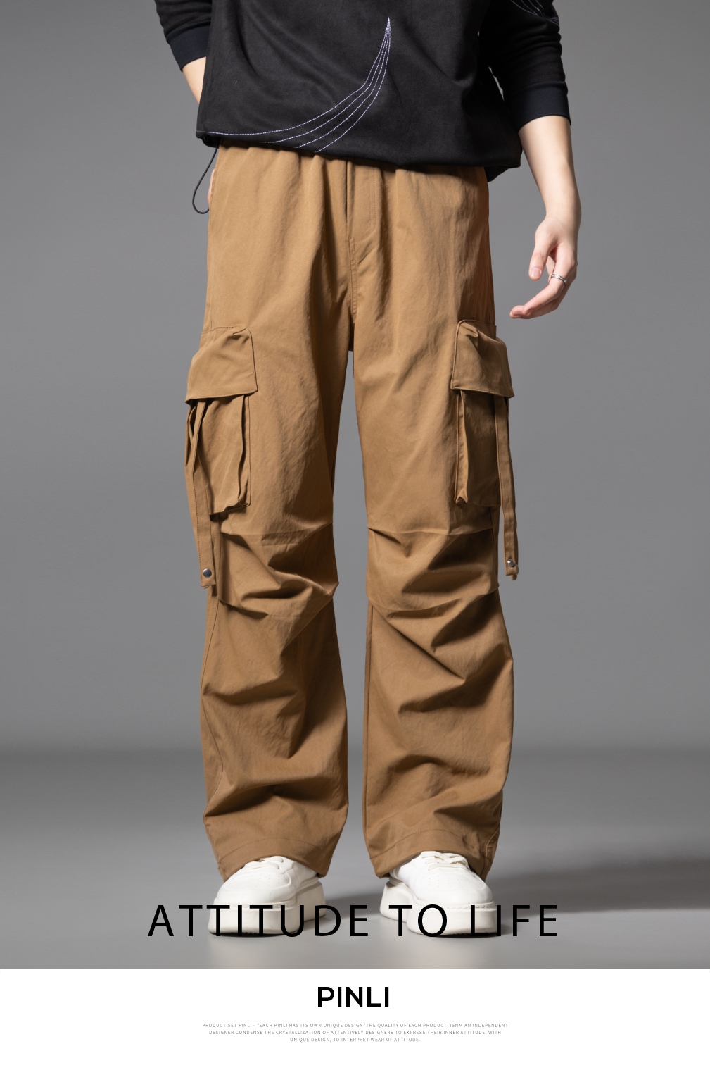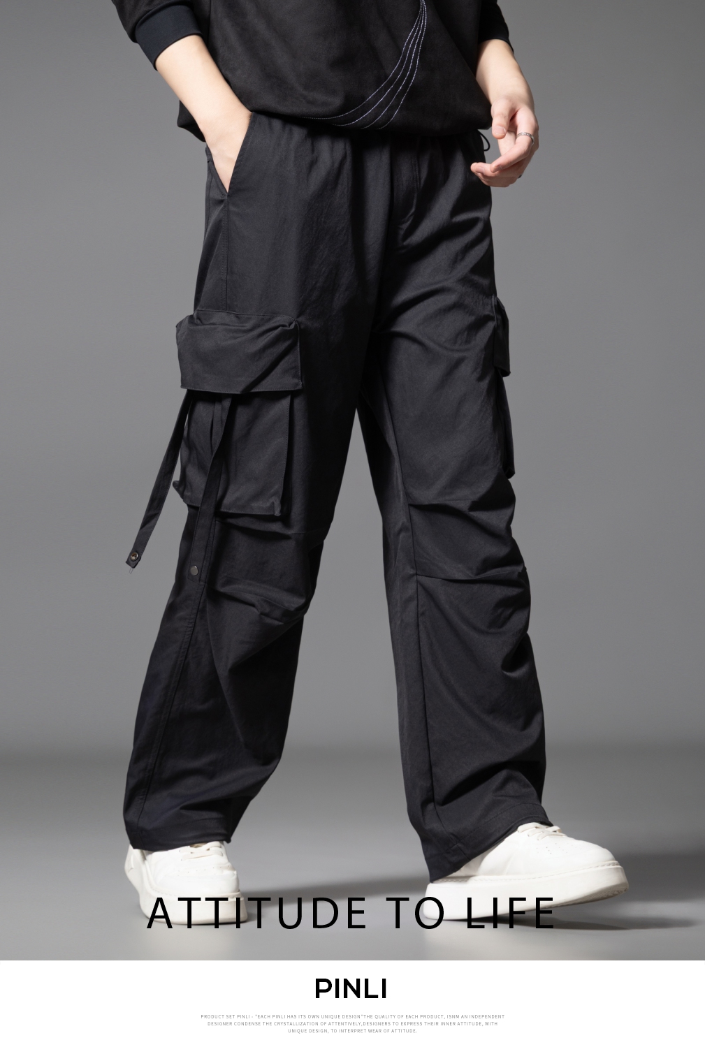 PINLI品立2025秋季新款男士多口袋工装裤潮牌宽松直筒休闲长裤子GD253117021