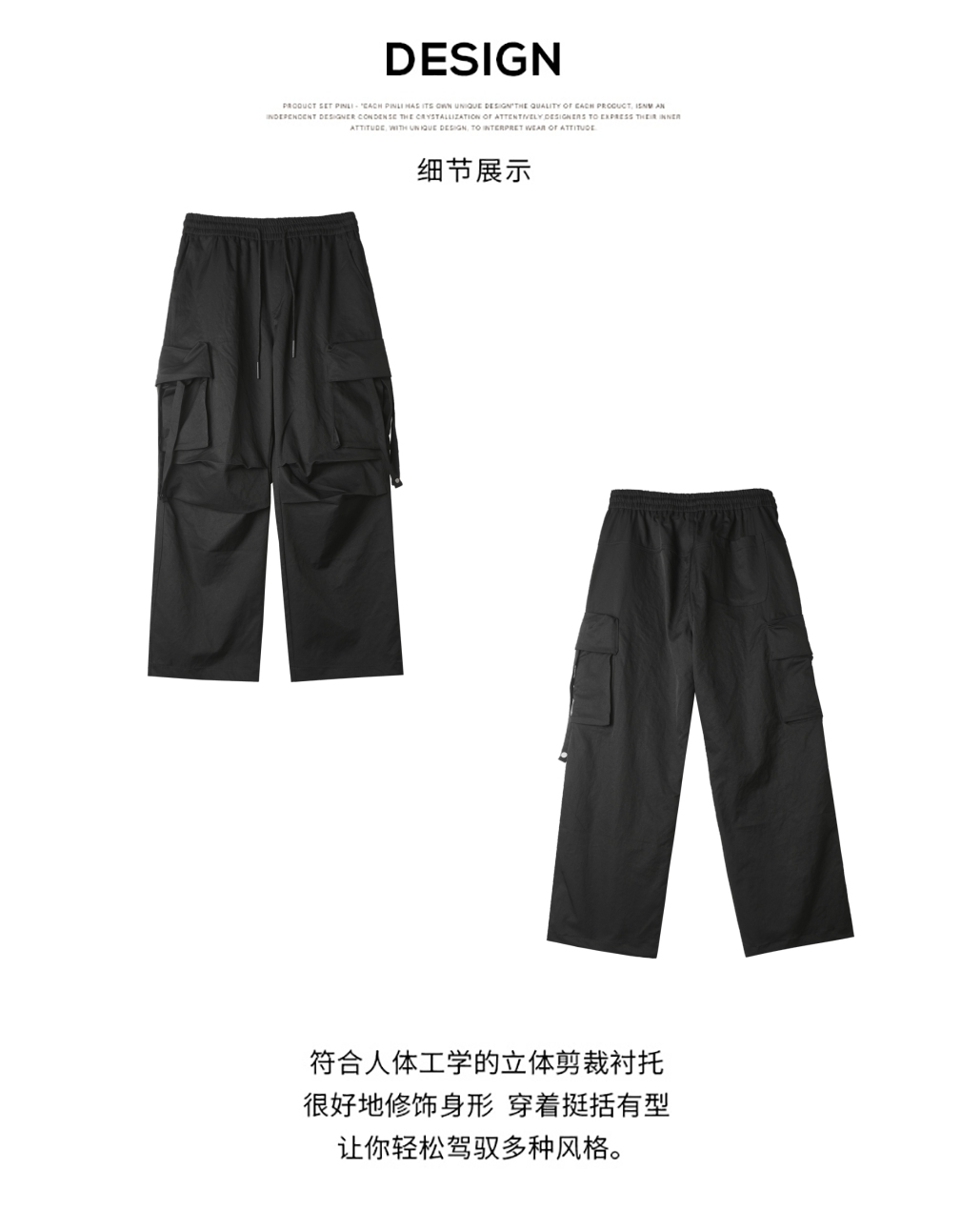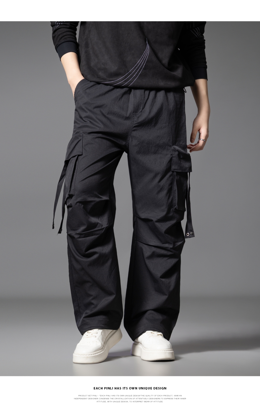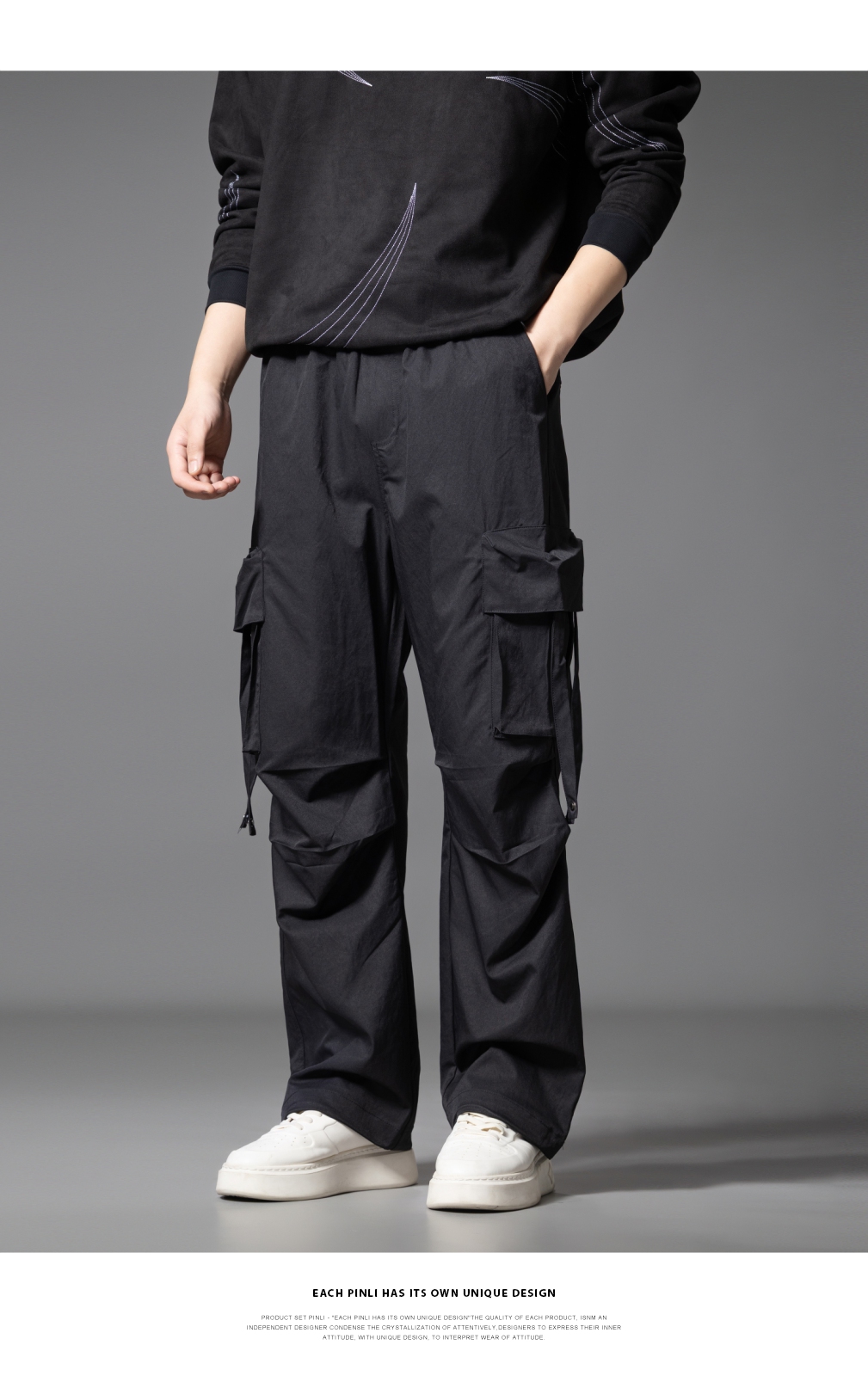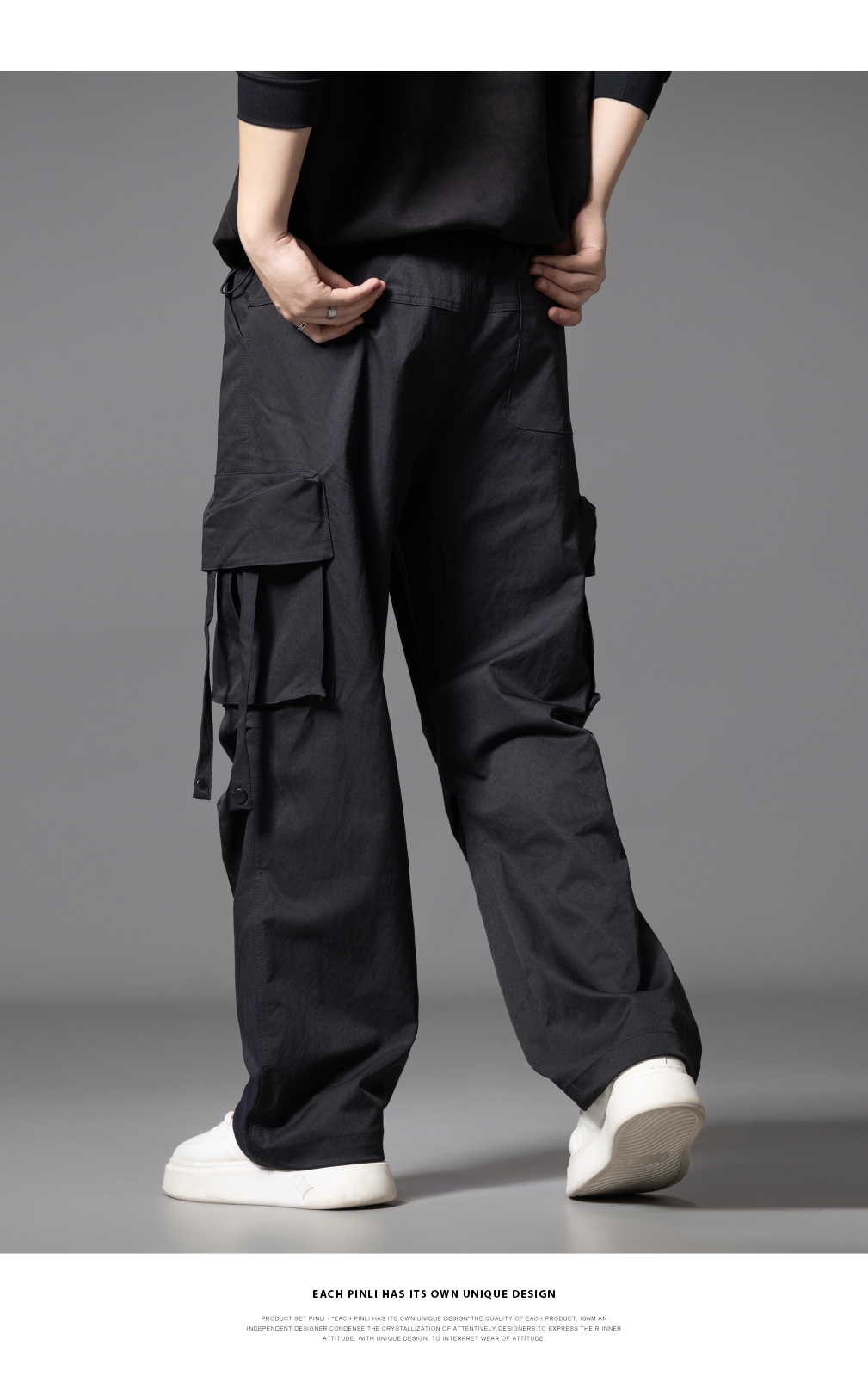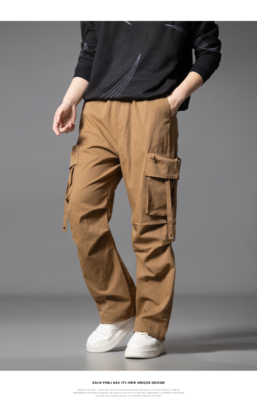 PINLI品立2025秋季新款男士多口袋工装裤潮牌宽松直筒休闲长裤子GD253117021
