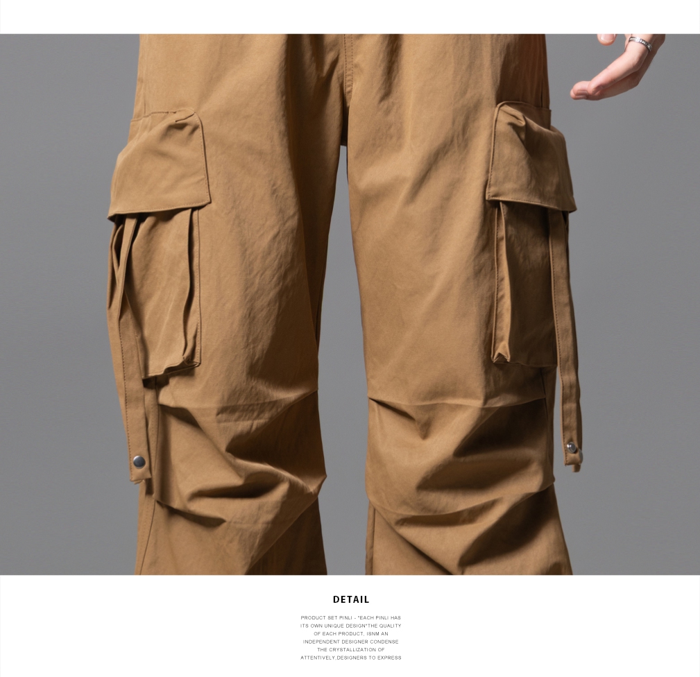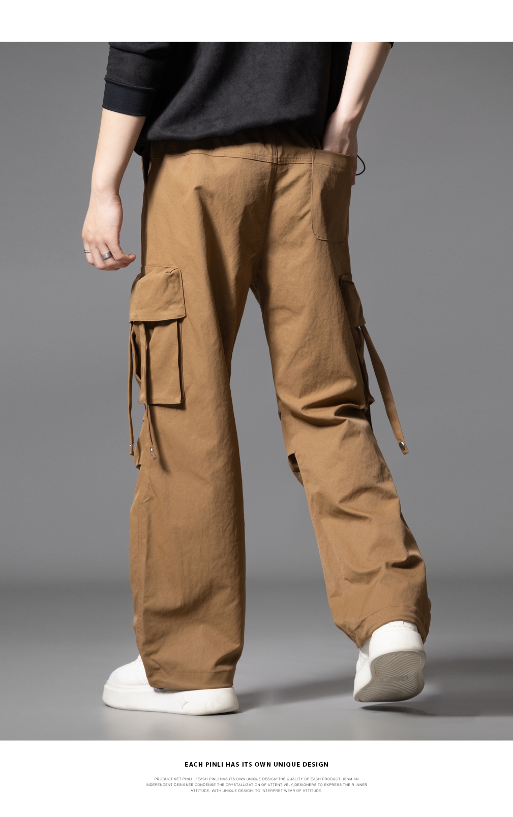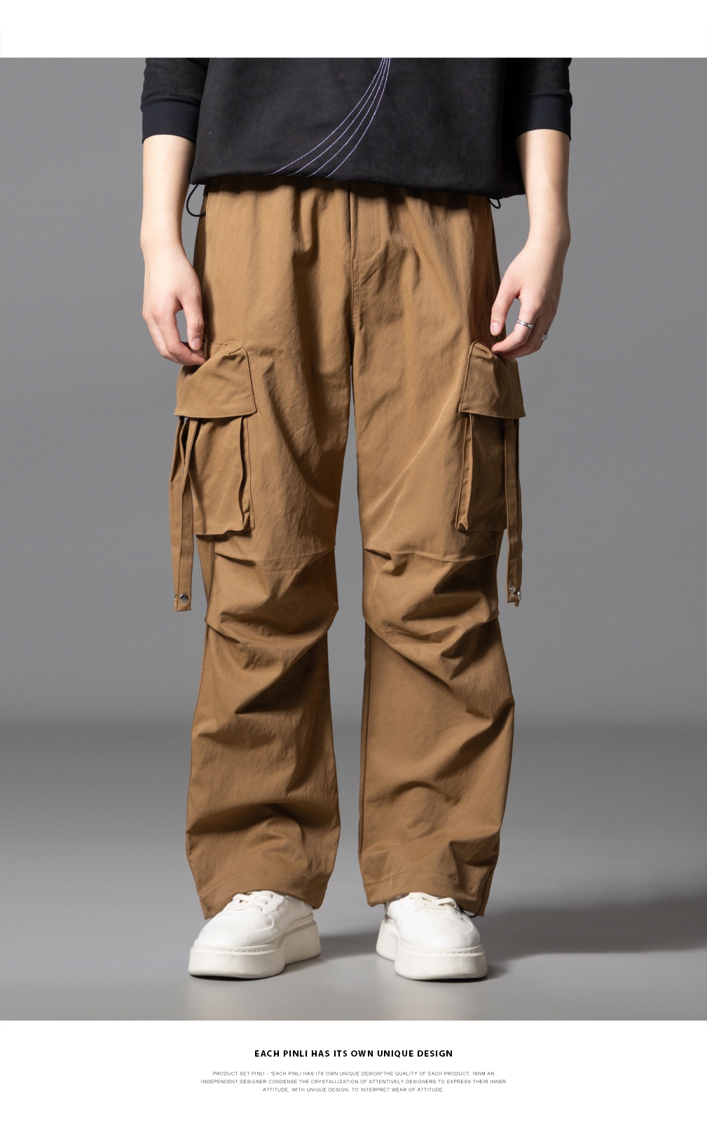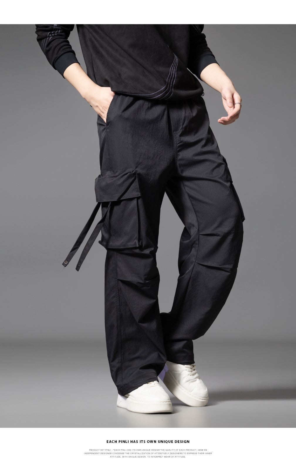 PINLI品立2025秋季新款男士多口袋工装裤潮牌宽松直筒休闲长裤子GD253117021