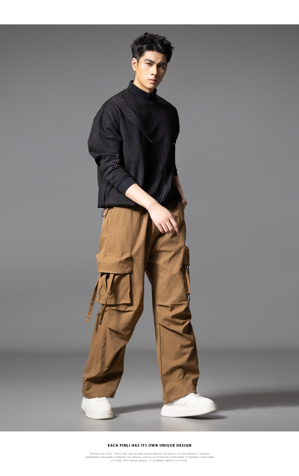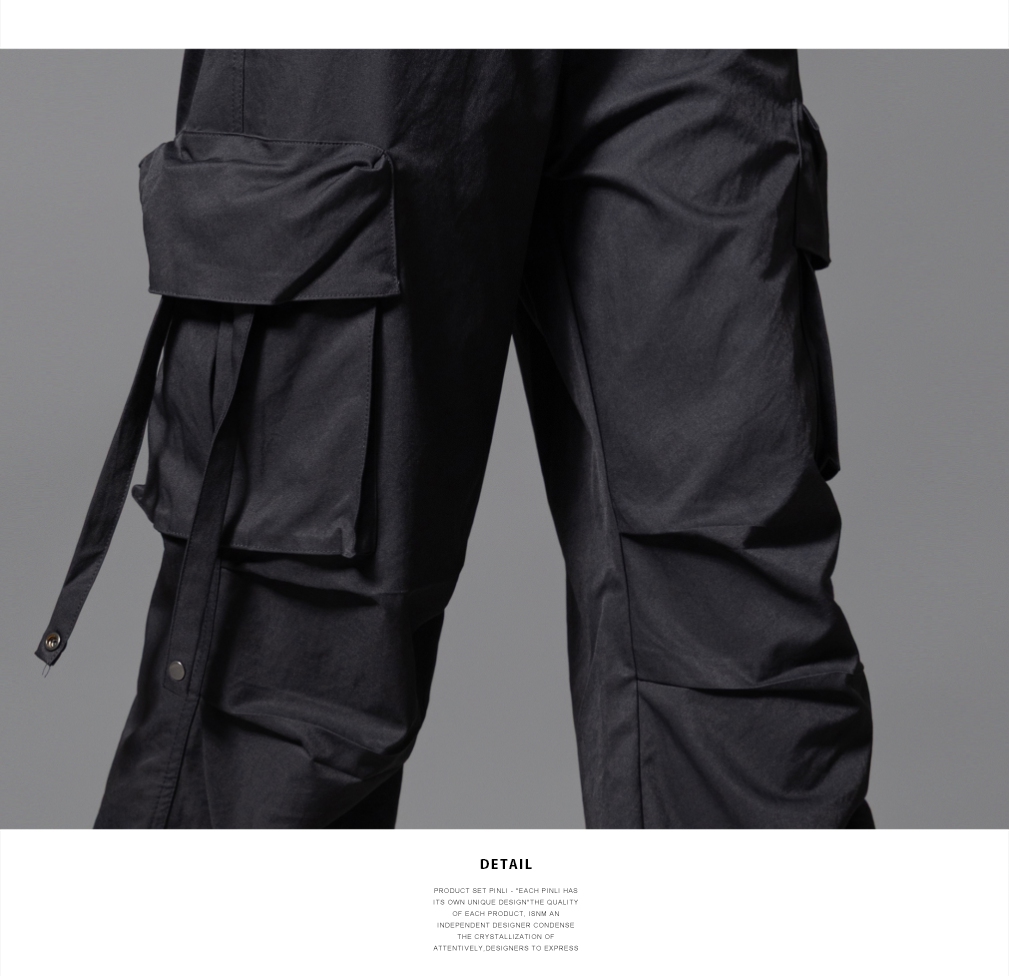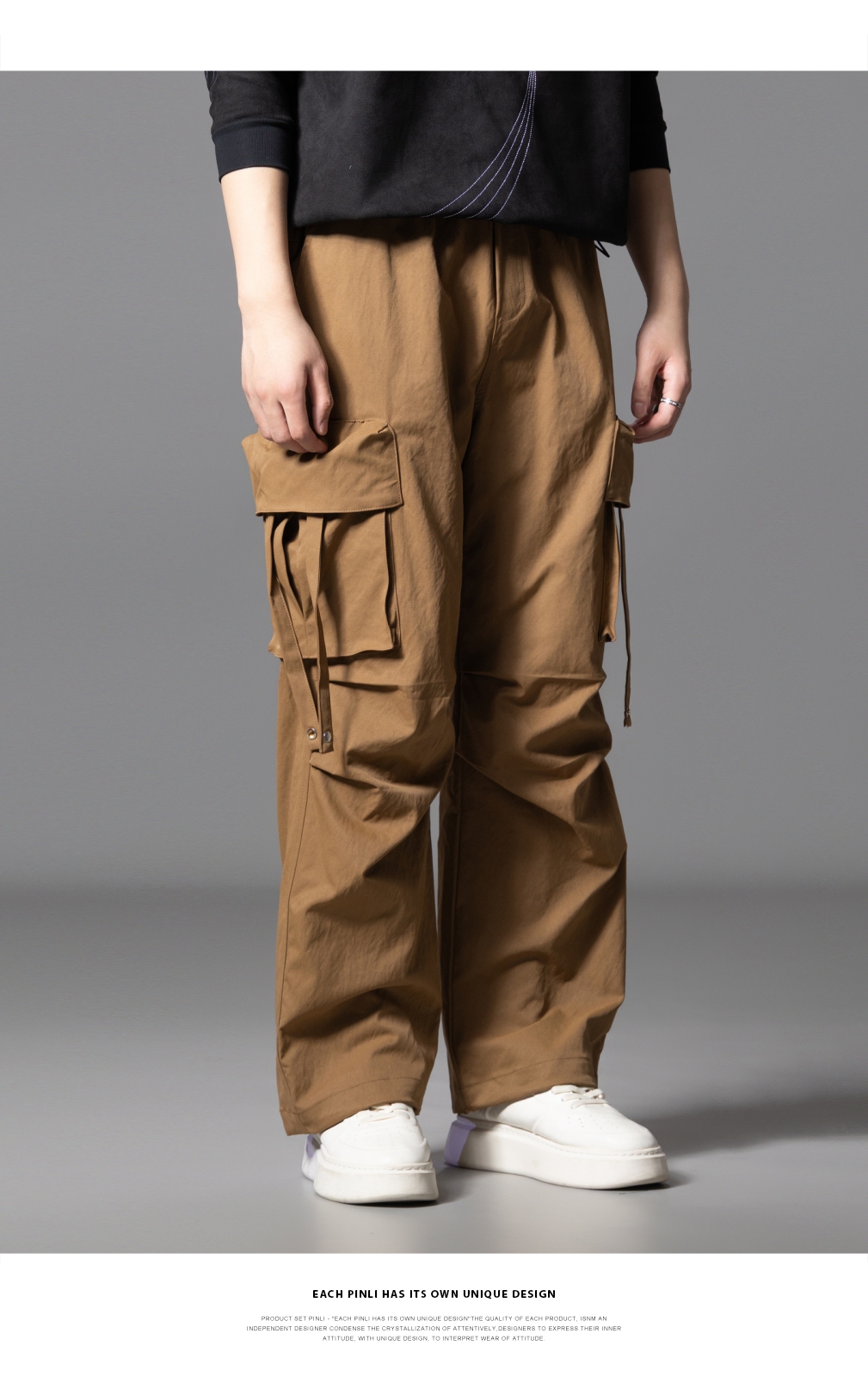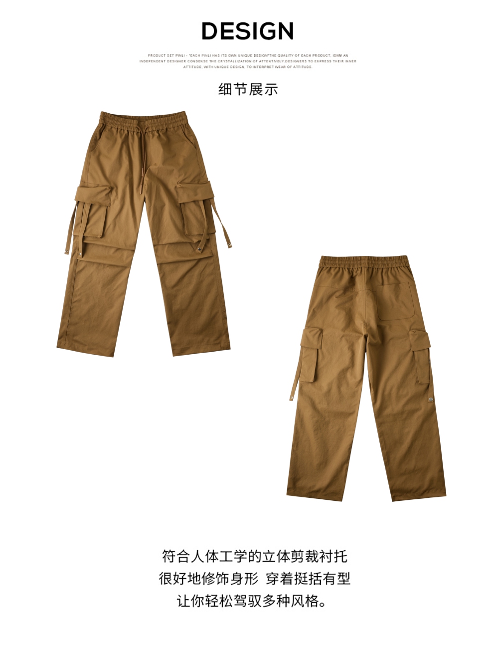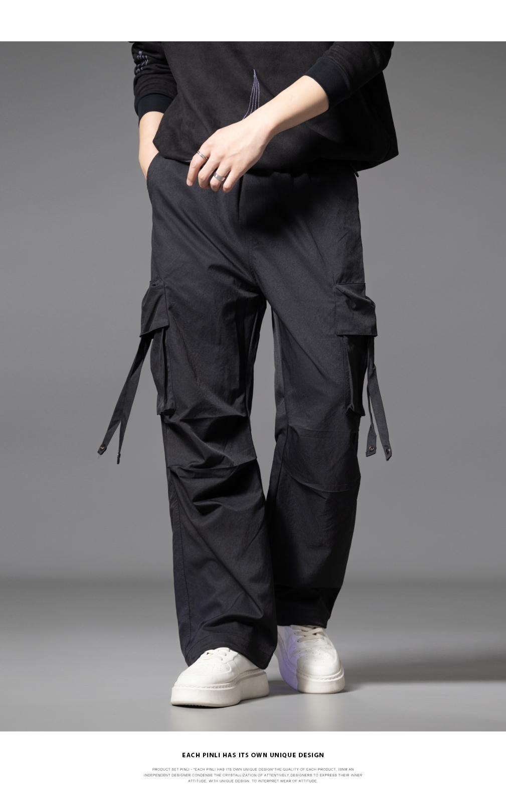 PINLI品立2025秋季新款男士多口袋工装裤潮牌宽松直筒休闲长裤子GD253117021