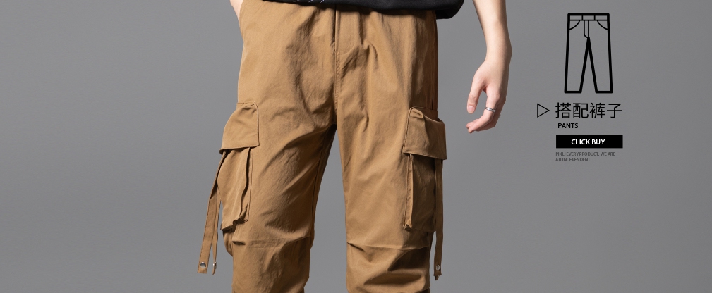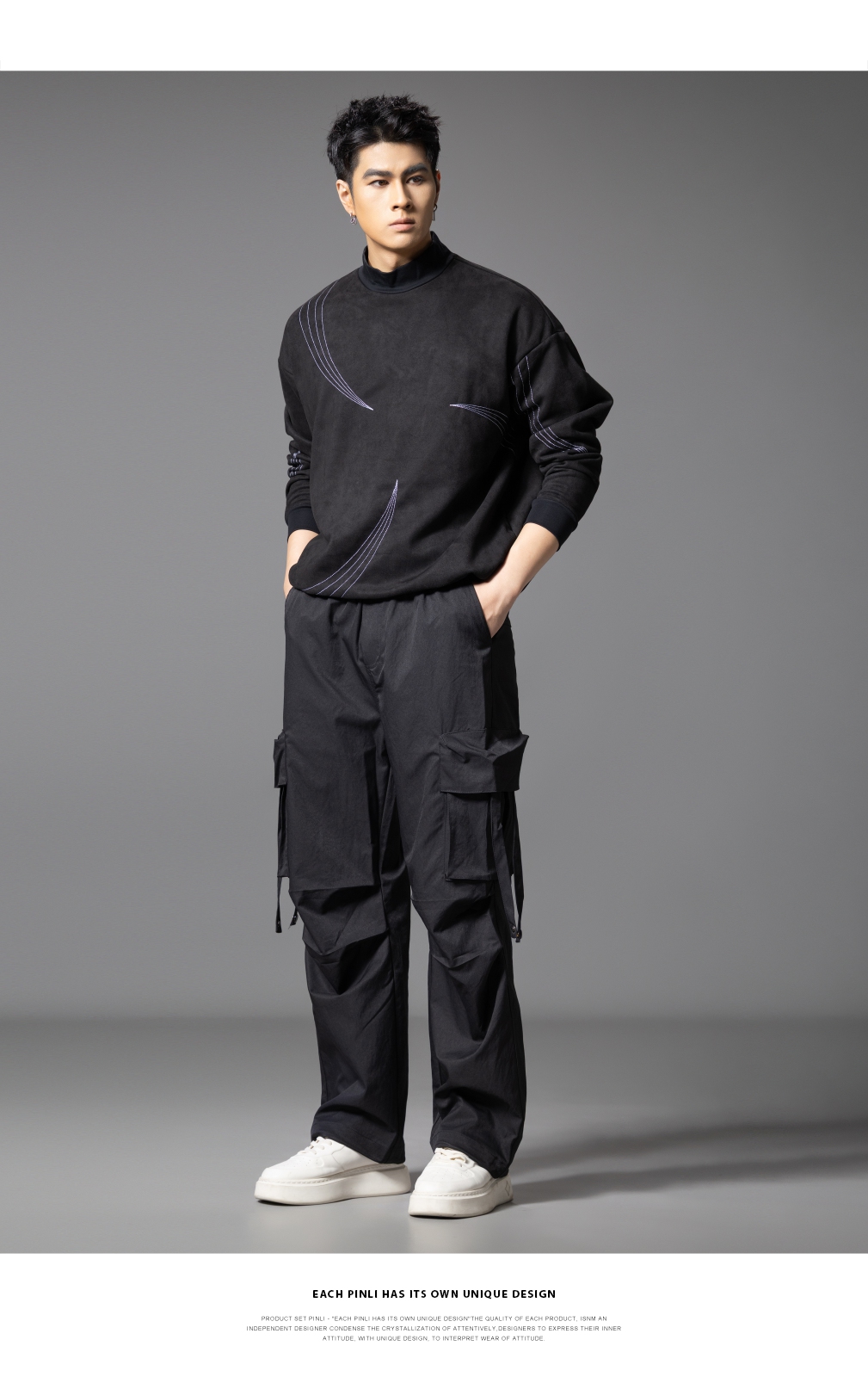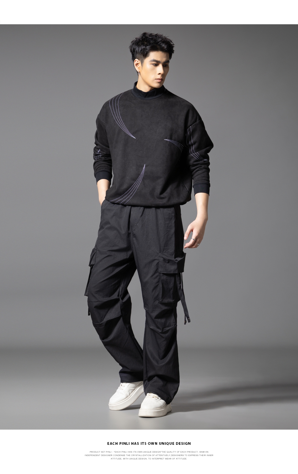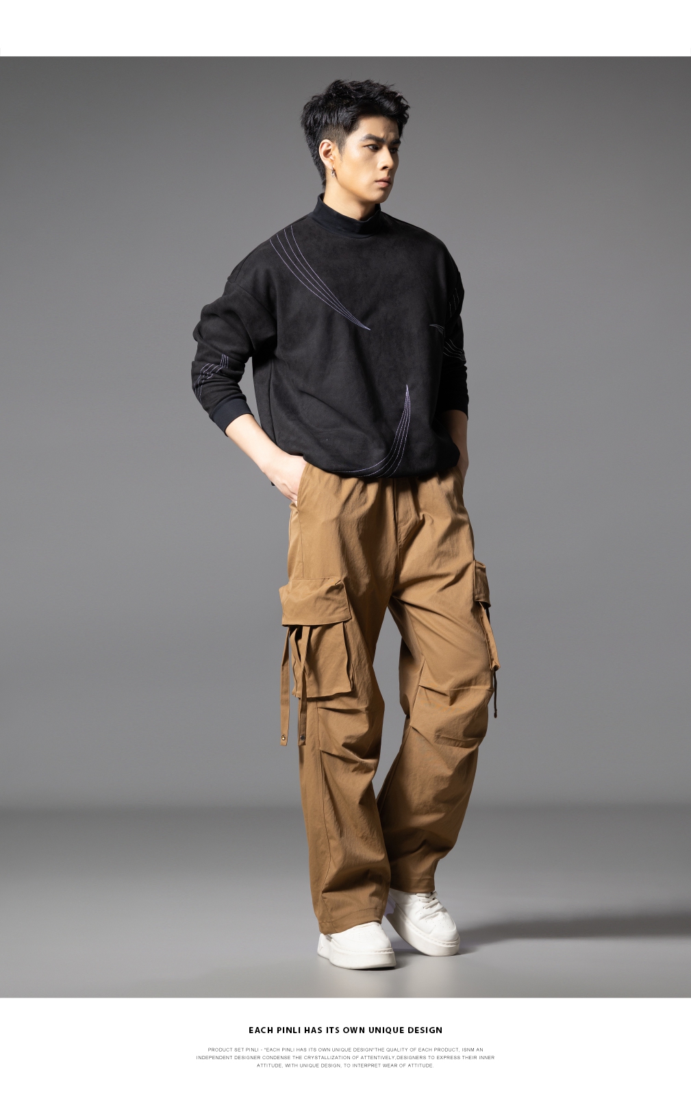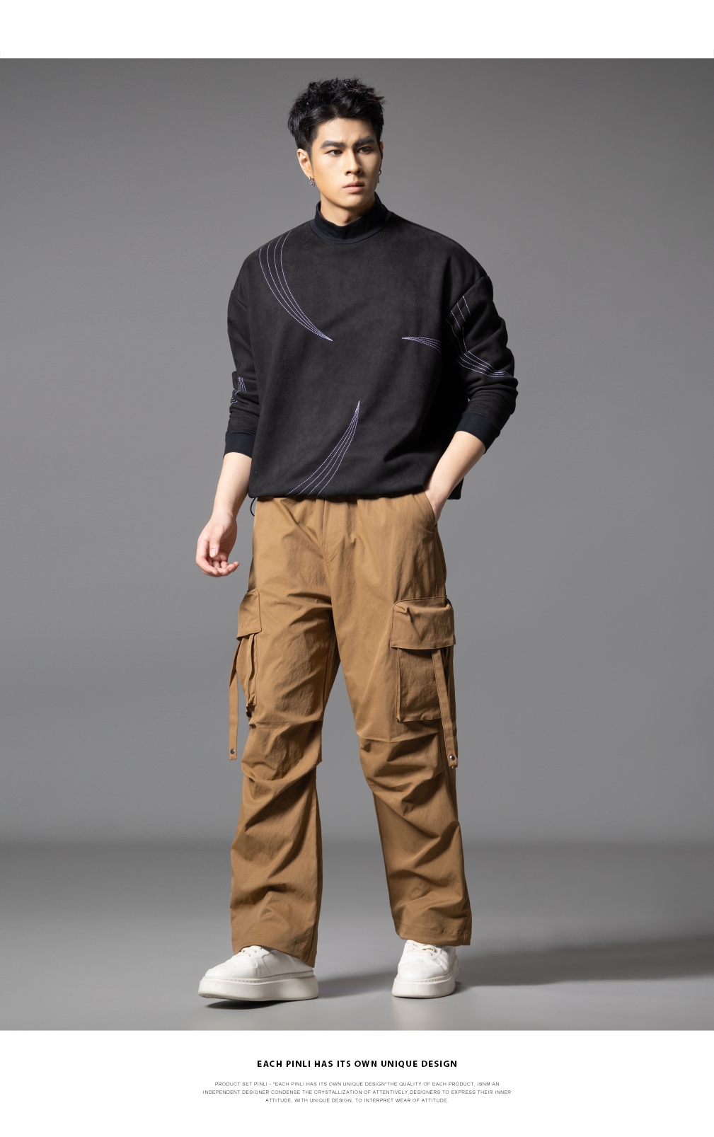 PINLI品立2025秋季新款男士多口袋工装裤潮牌宽松直筒休闲长裤子GD253117021