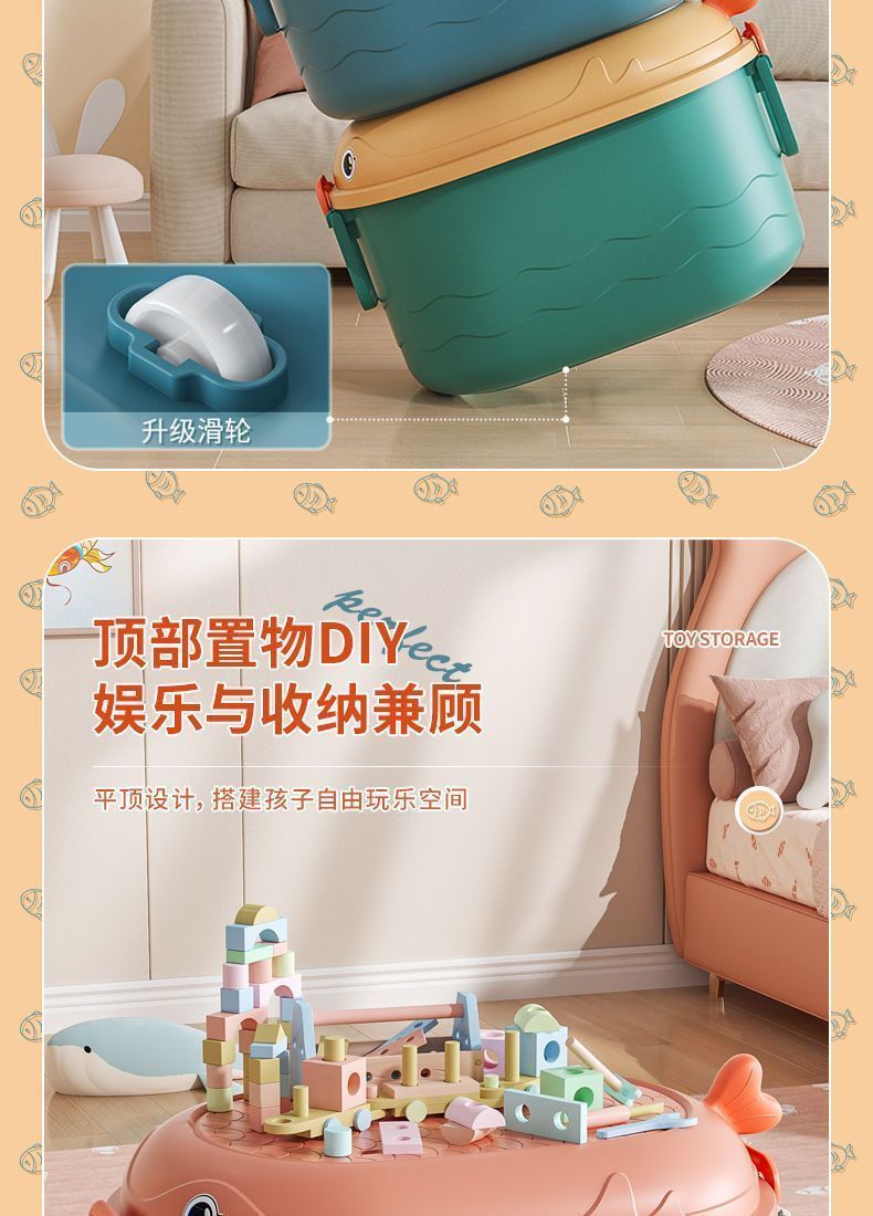 儿童玩具收纳箱大容量带轮家用卡通整理箱宝宝衣服零食积木收纳盒