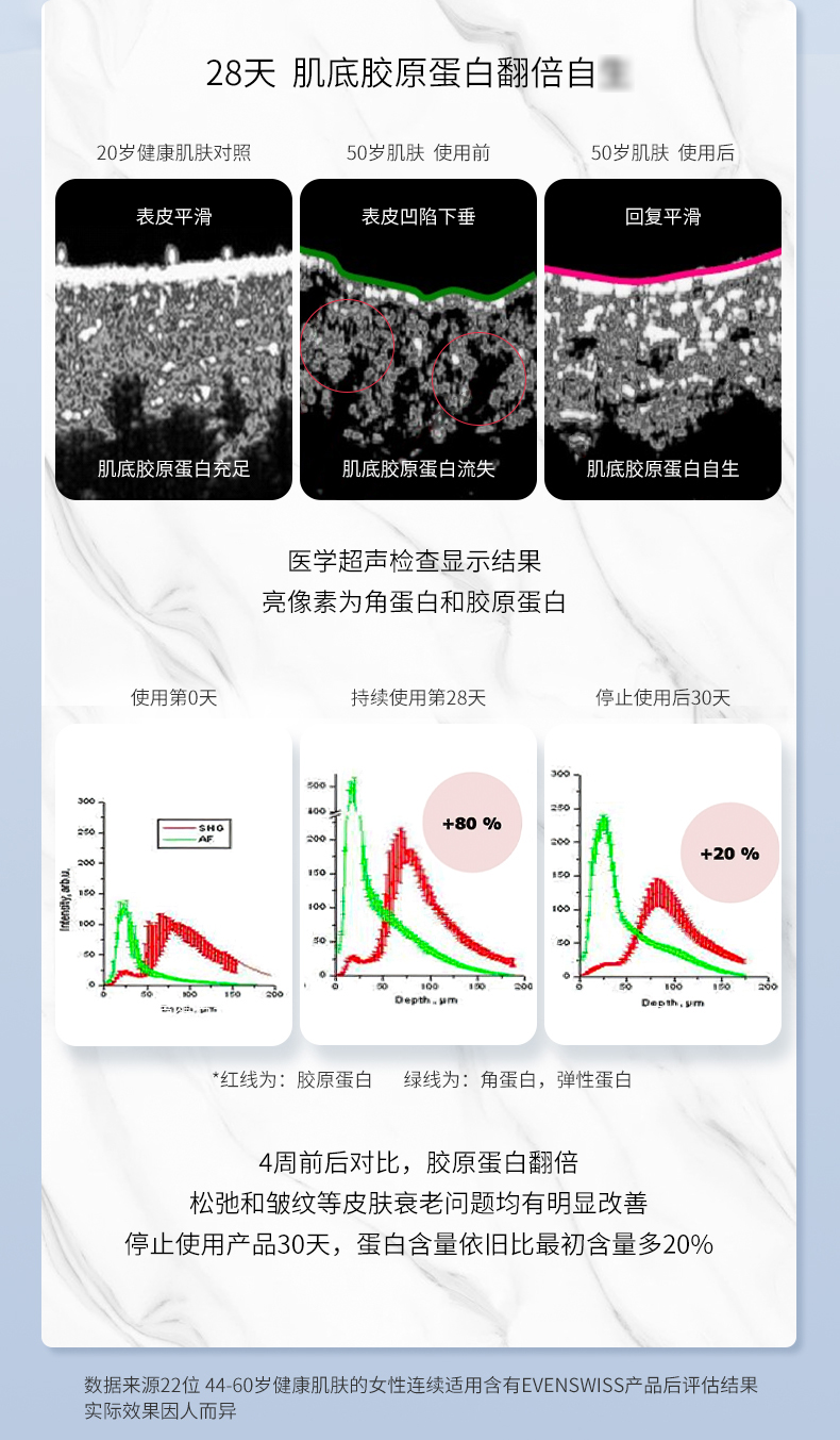 主要成分:专利信号因子Dermatopoietin®、摩洛哥坚果植物细胞、大豆异黄酮、橙皮苷甲基查尔酮、沙棘油、多重胜肽等