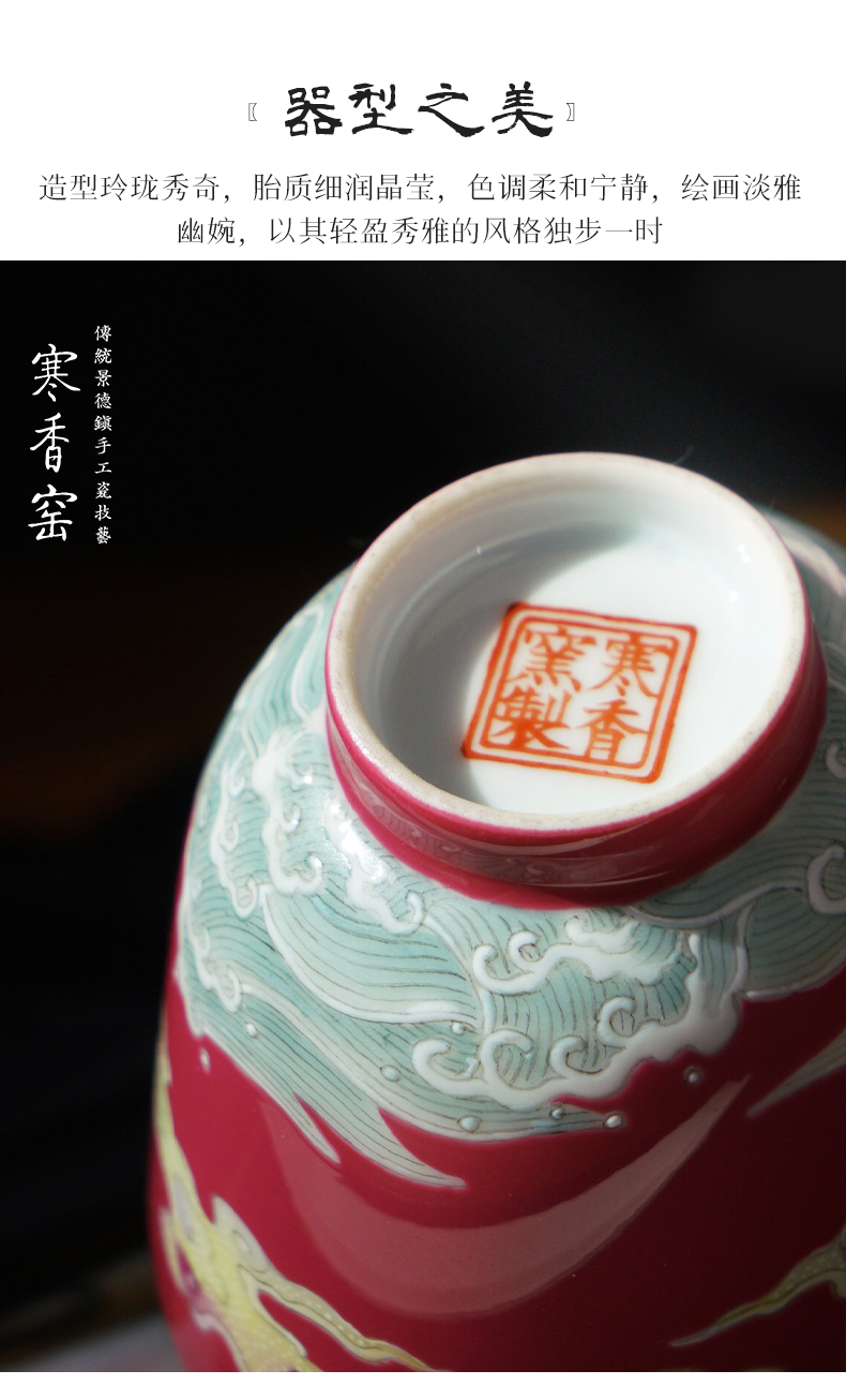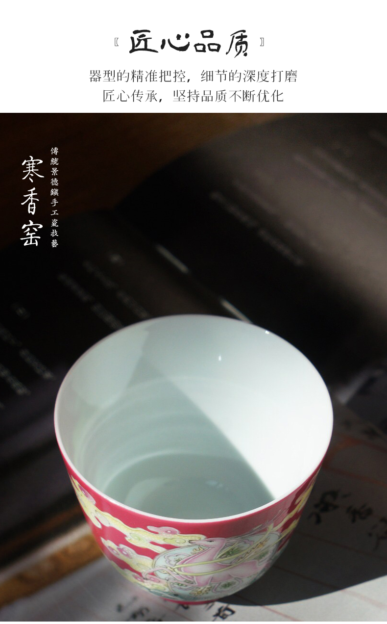 寒香慕古釉里红双勾莲压手杯(下单前请先咨询客服)