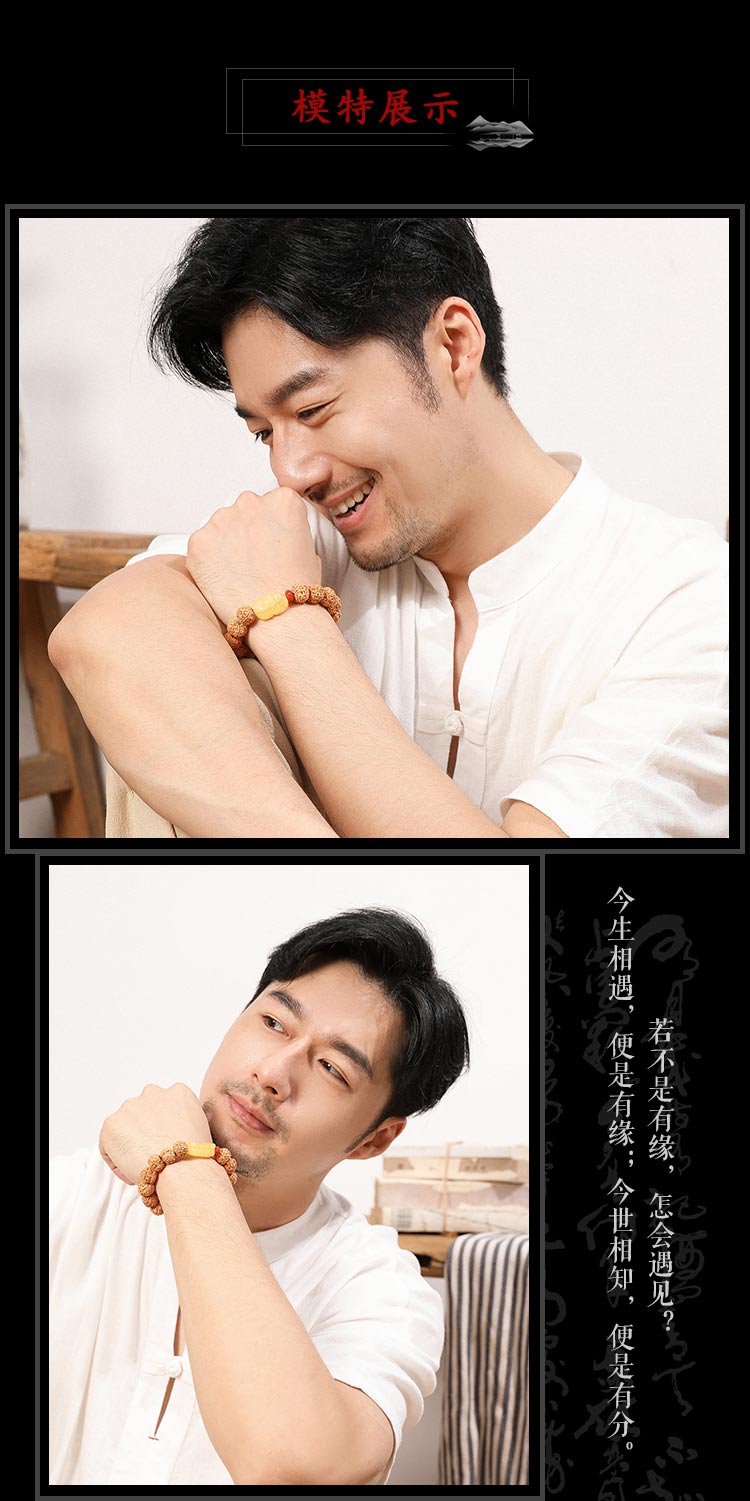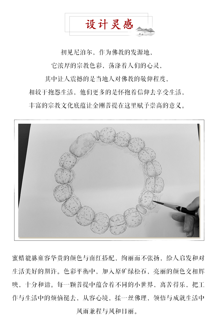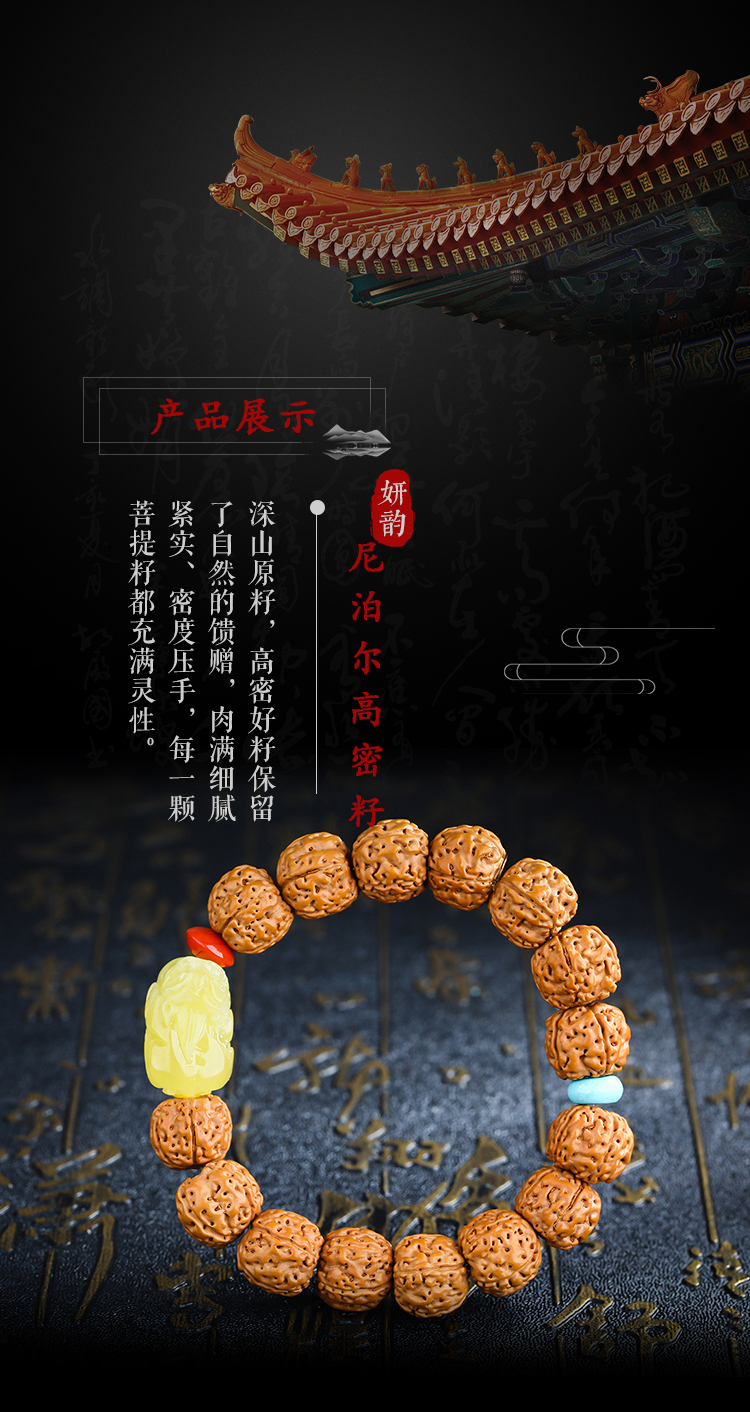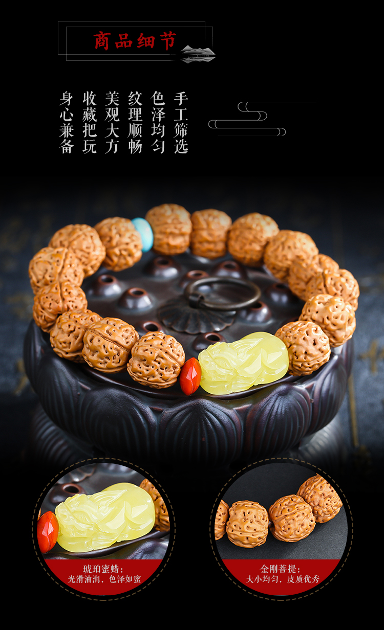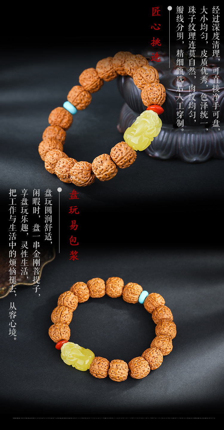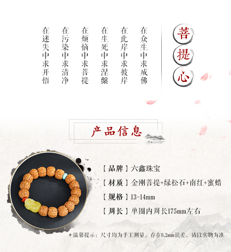 六鑫珠宝 尼泊尔五瓣爆肉双龙纹大金刚菩提手串 金刚菩提+绿松石+蜜蜡+南红 13-14mm