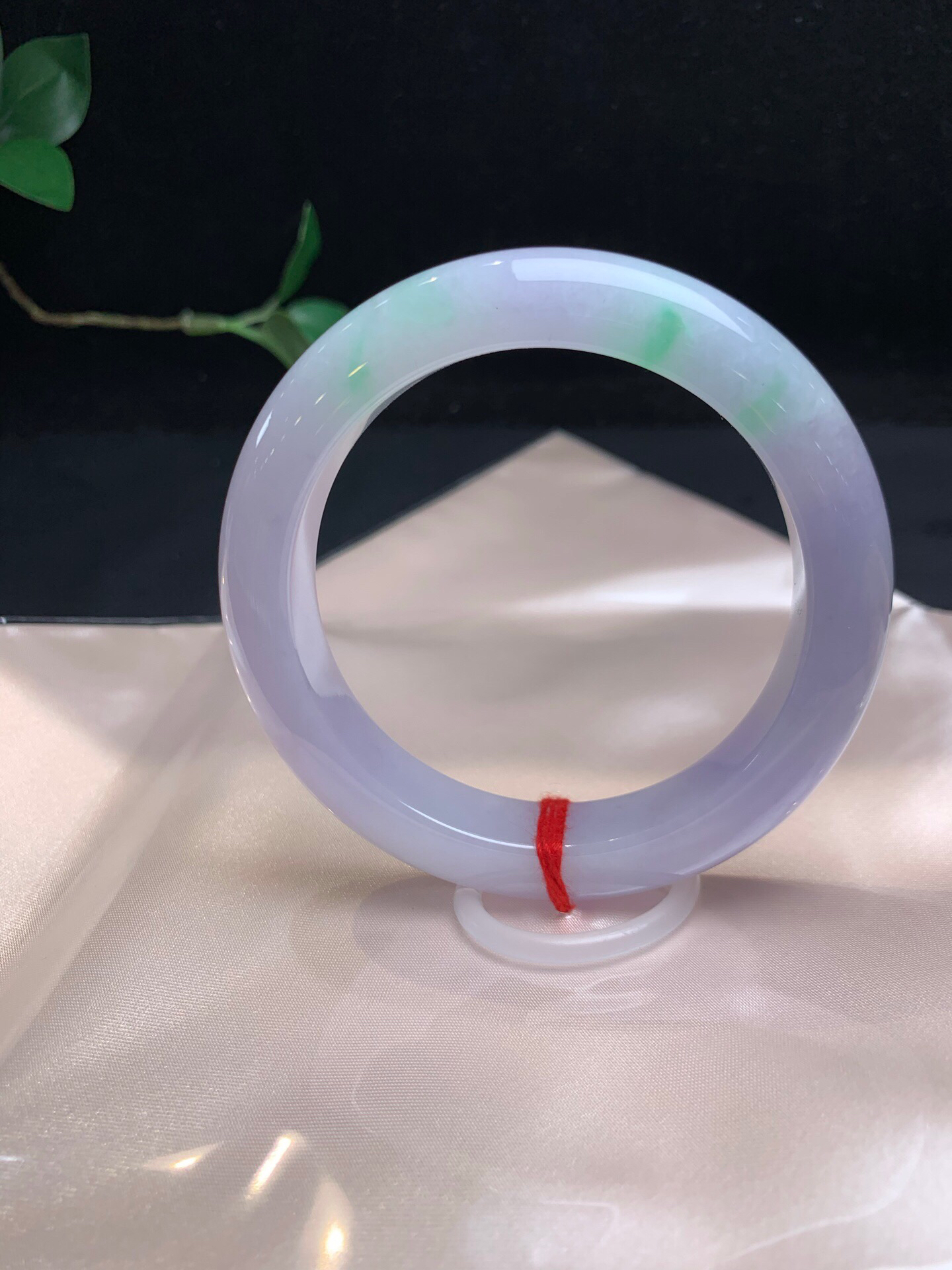 620461,58.8春彩手镯 ,12.7-9mm,淡紫罗兰底色 一截飘清新绿底,清新干净,底妆很细腻,完美的,超值价💰76500 #优石客珠宝#香玉荟萃