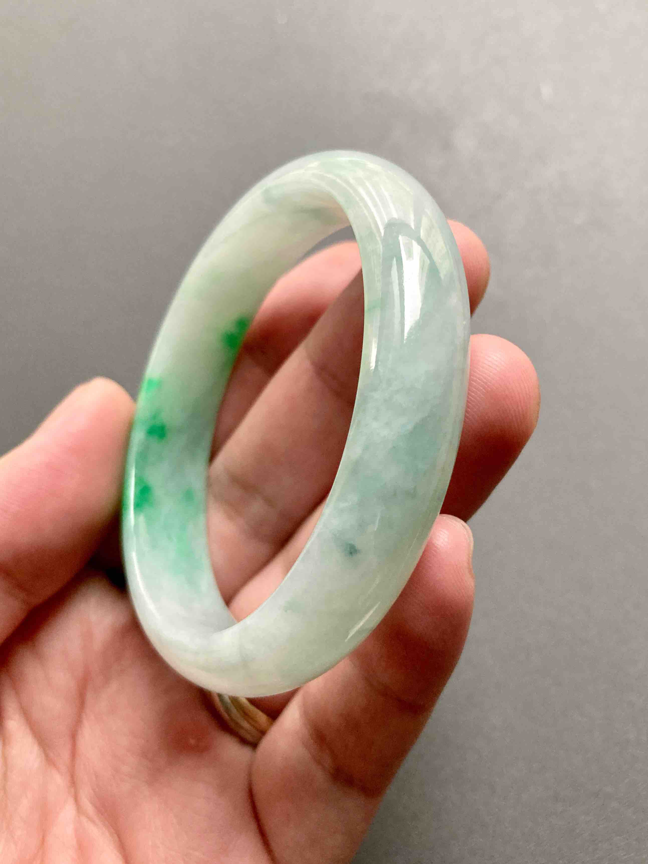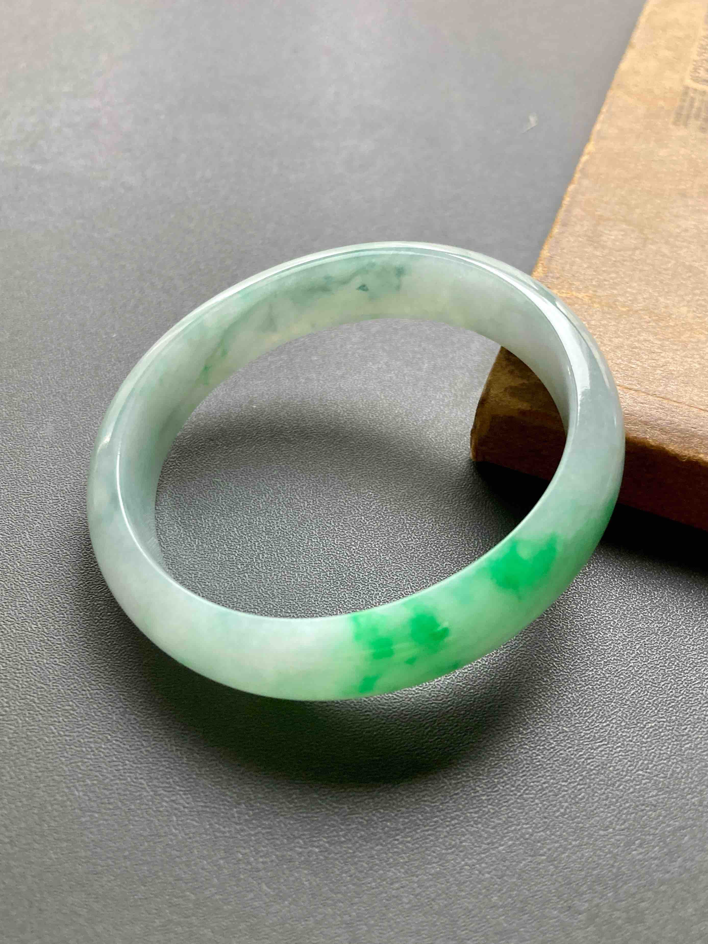 颜色这么好的贵妃镯,太漂亮了,糯冰种飘阳绿,色标级,艳丽无比,椭圆镯型,对应手寸51到52可以戴,小手有福,这么绿的镯子不好找,无纹无裂,有些正常的棉线,看不懂的别拍,价格非常划算,强烈推荐